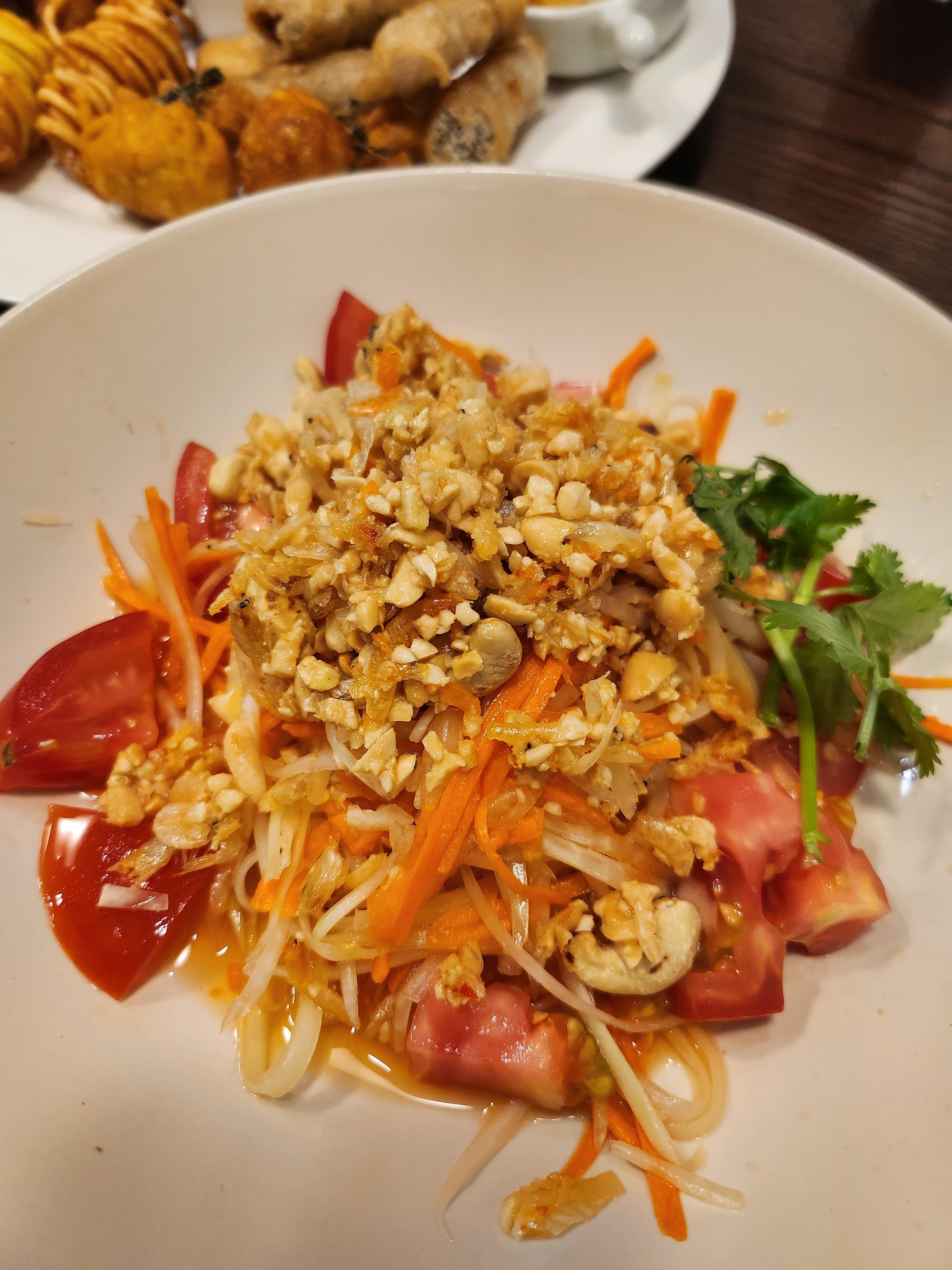 차례로 수제 짜조와 모듬 애피타이저입니다. 사진엔 없지만 팟타이도 맛있어요. 김준현의 맛팁처럼 절임 양파가 나오면 해선장과 핫소스를 1:1 비율로 무쳐 쌀국수와 겻들여 먹으면 정말 맛있습니다. 쪼기 사진에도 멀리 찍혀있죠? 그냥 가타부타 미사여구 붙일 필요없이 그냥 맛있어요.