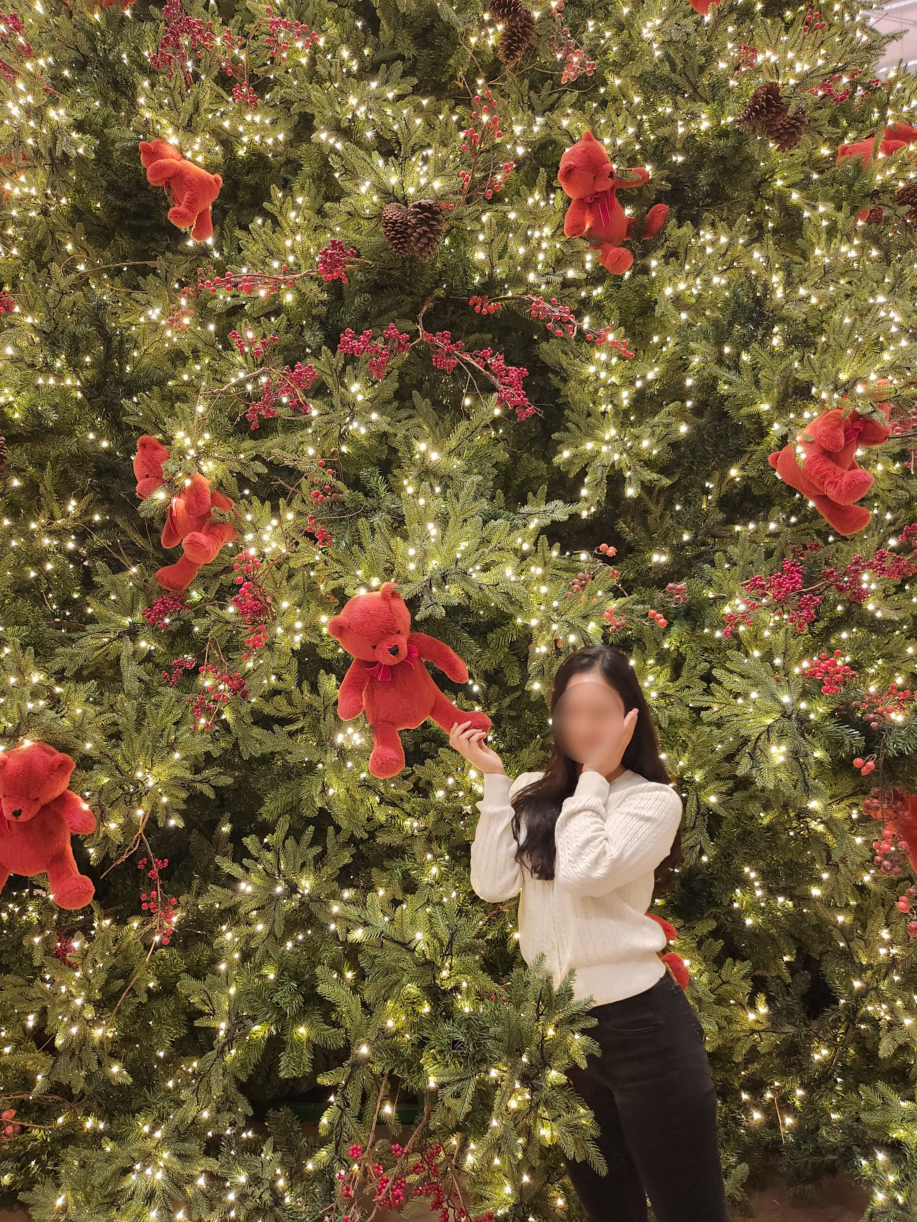 그리고 이건, 바로 옆에 붙어있는 더현대 크리스마스 트리 사진입니다. (분발해라, IFC) 음... 이 날 야근 중이었는데 너무 억울하고 집에 못간다는 사실이 한이 맺혀서 백화점 퇴점시간 맞춰서 한번 가봤어요. 사람이 정말 많고 예쁘더라구요. 마음이 칠렐레팔렐레하는 것이. 더현대가 올해는 테디베어를 데려올지, 다른 친구를 데려올지 모르겠네요.