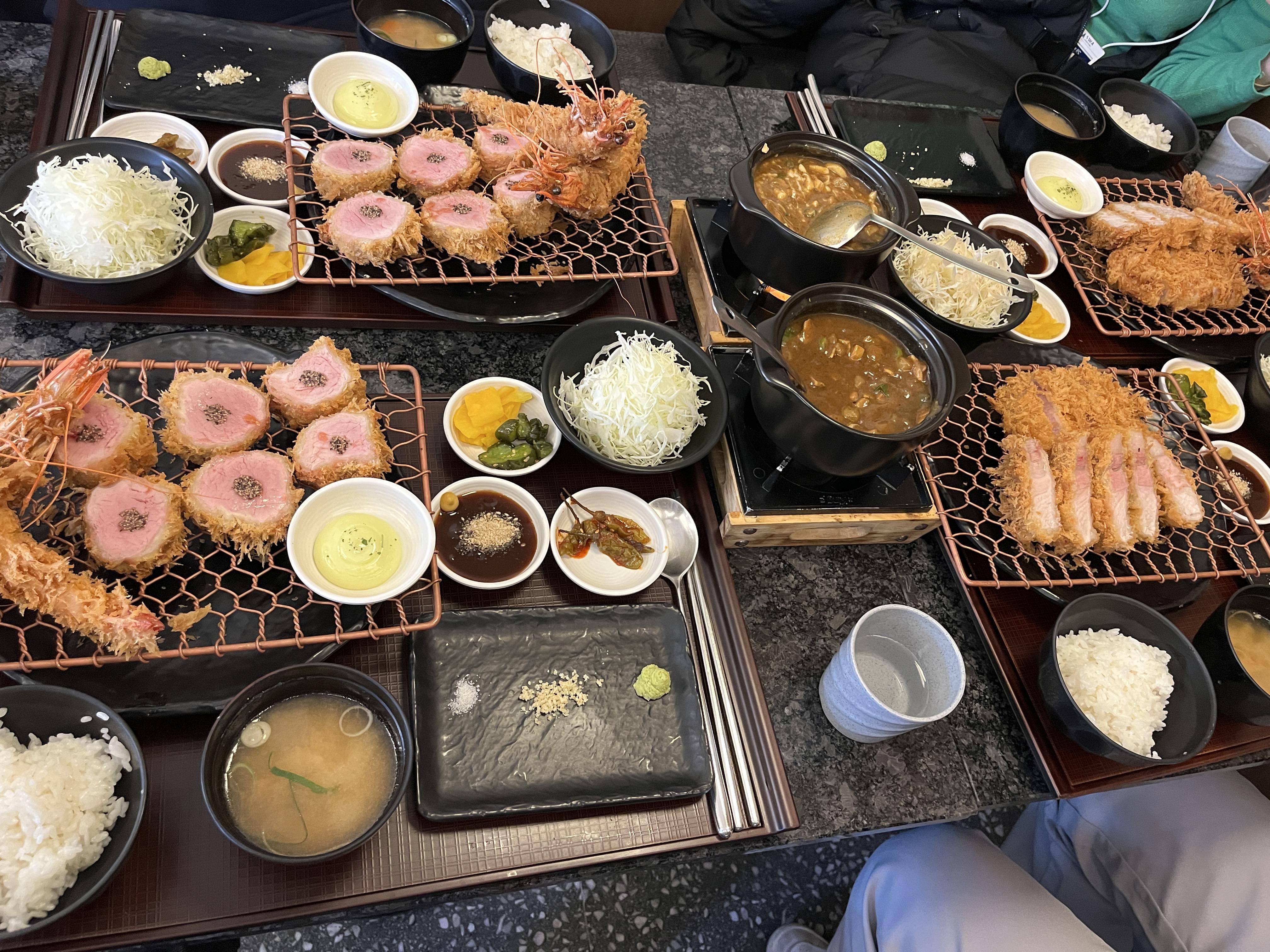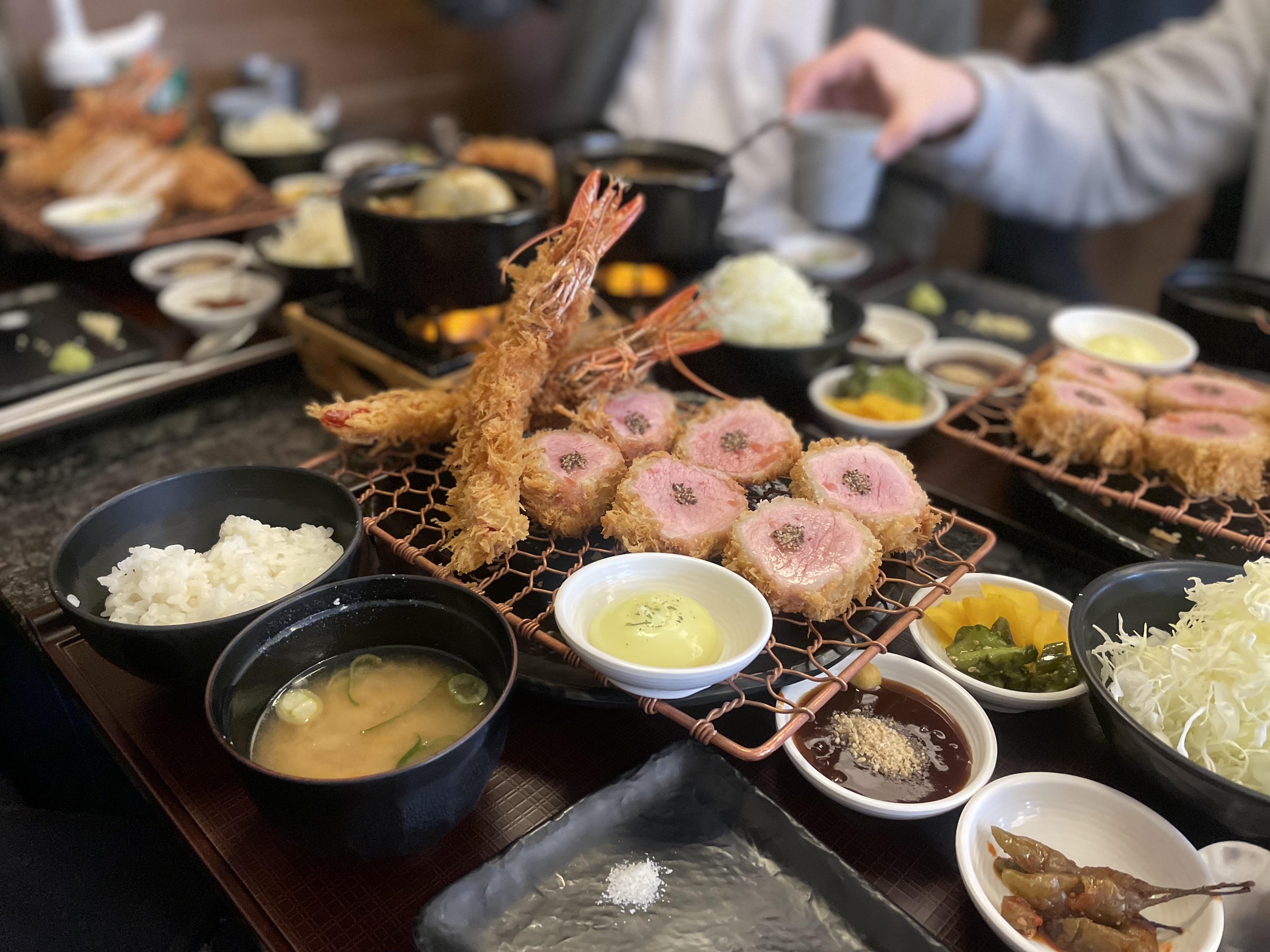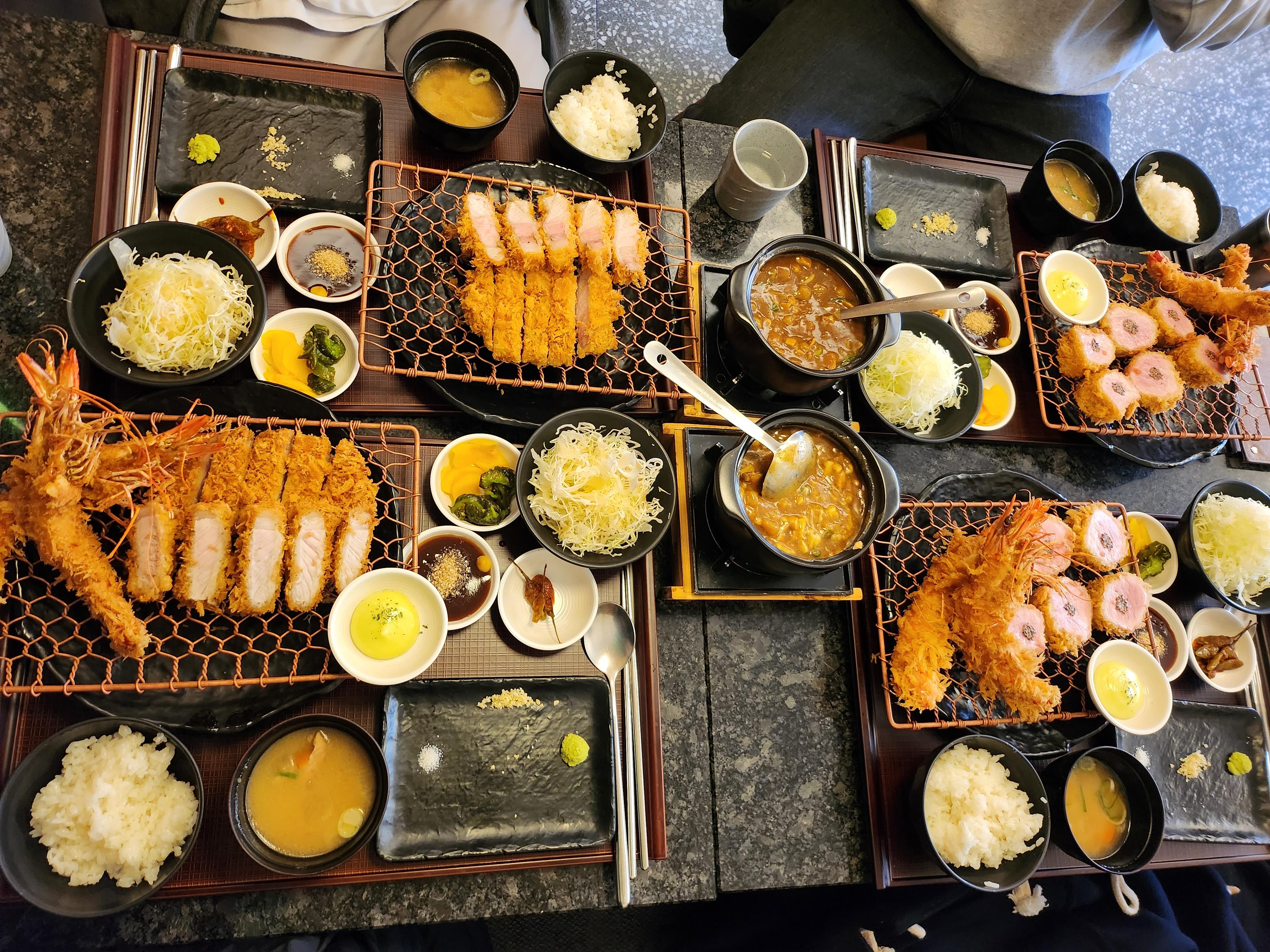 곧이어 서빙된 새우+안심 돈카츠 세트. 너어무 맛있어 보이죠? 많은 분들이 등심과 안심을 취향에 따라 고르시는 것 같더라구요. 골고루 주문이 들어가는 걸 보니 안심이라고 가장 먼저 소진되거나, 등심이라고 흔한 건 아닌 것 같았습니다. 각각 나눠서 먹어보니 안심도, 등심도, 나름의 매력이 있어서 한번씩 맛보길 추천.