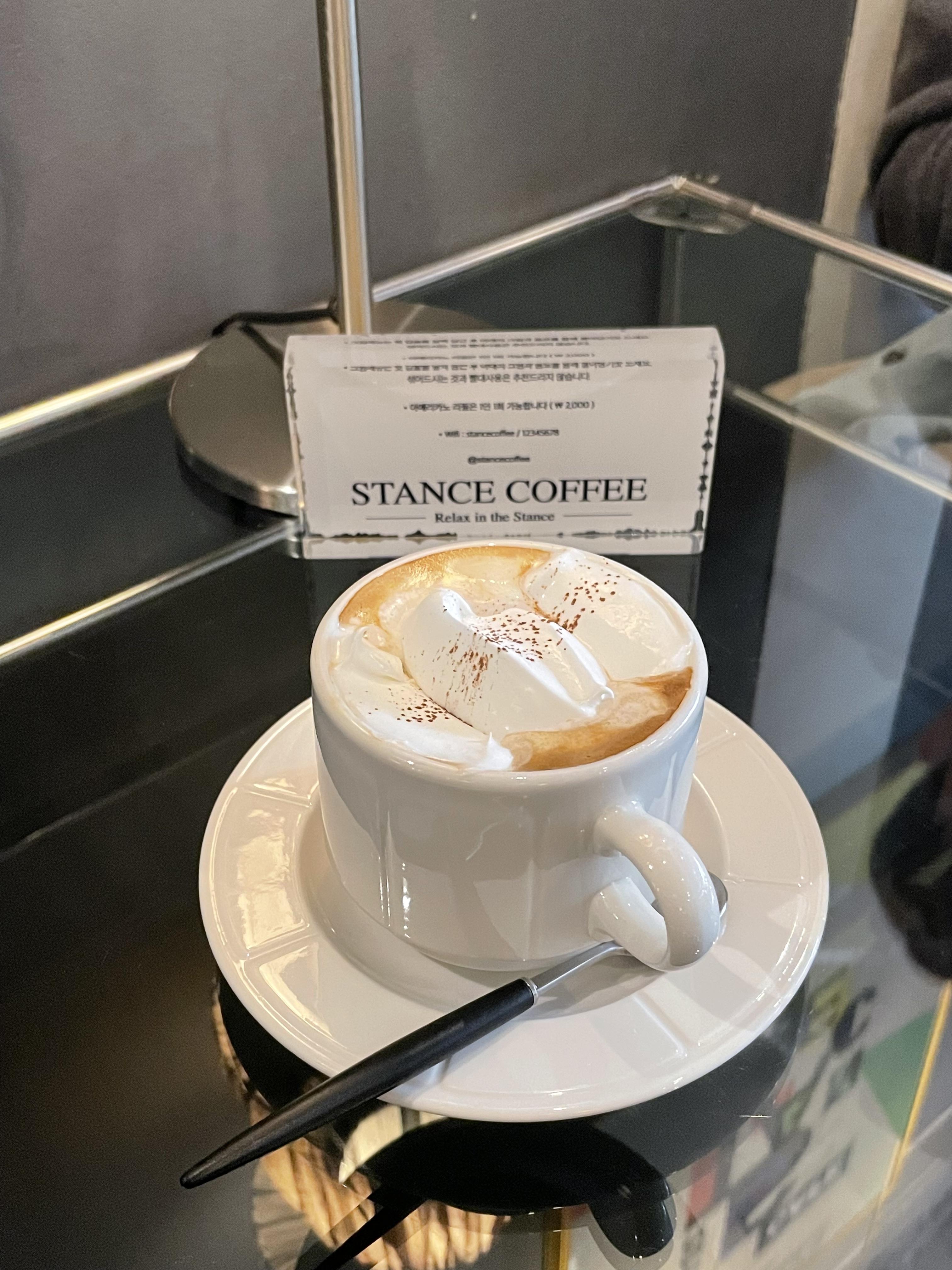배가 터지게 먹고 '나 이거 깨끗하게 먹었는데, 이거 더 먹을래?'하며 조금씩 더 먹였더니 배가 찢어질 것 같다며 고통을 호소하는 직원 등장. 가볍게 무시하고 스탠스 커피로 갑니다. 홍대까지 왔는데 스탠스 커피 안가면 너무 아쉽잖아요ㅠ 매장 내부는 아주 협소하지만 아인슈페너에 한번 입을 대면 동공이 확장되는 극강의 맛까지 경험한 후... 집에가서 낮잠이나 때렸으면 좋겠지만 회사로 돌아가야 하기에, 어깨가 축 쳐진 채로 사무실로 복귀했다는 후일담.