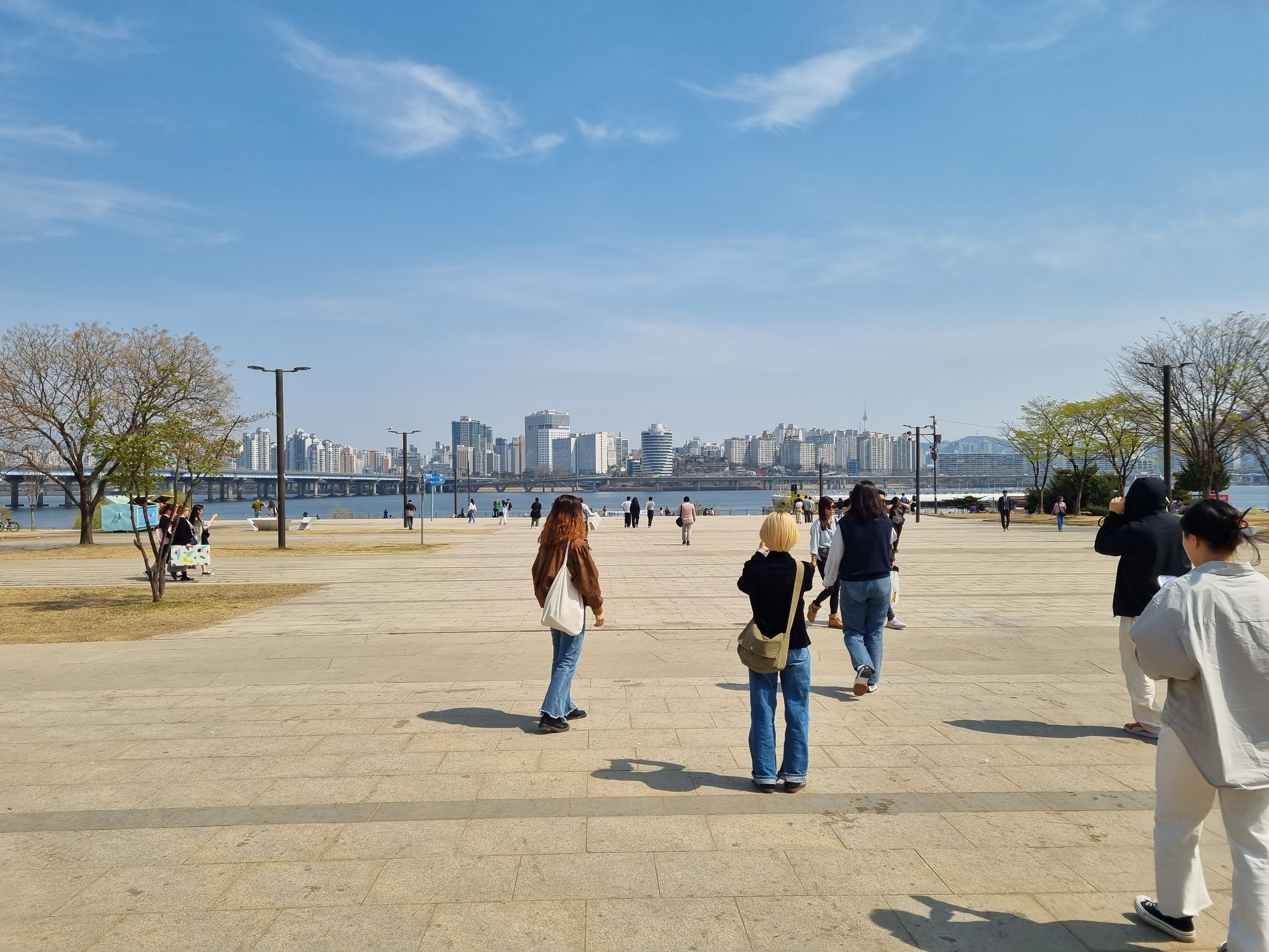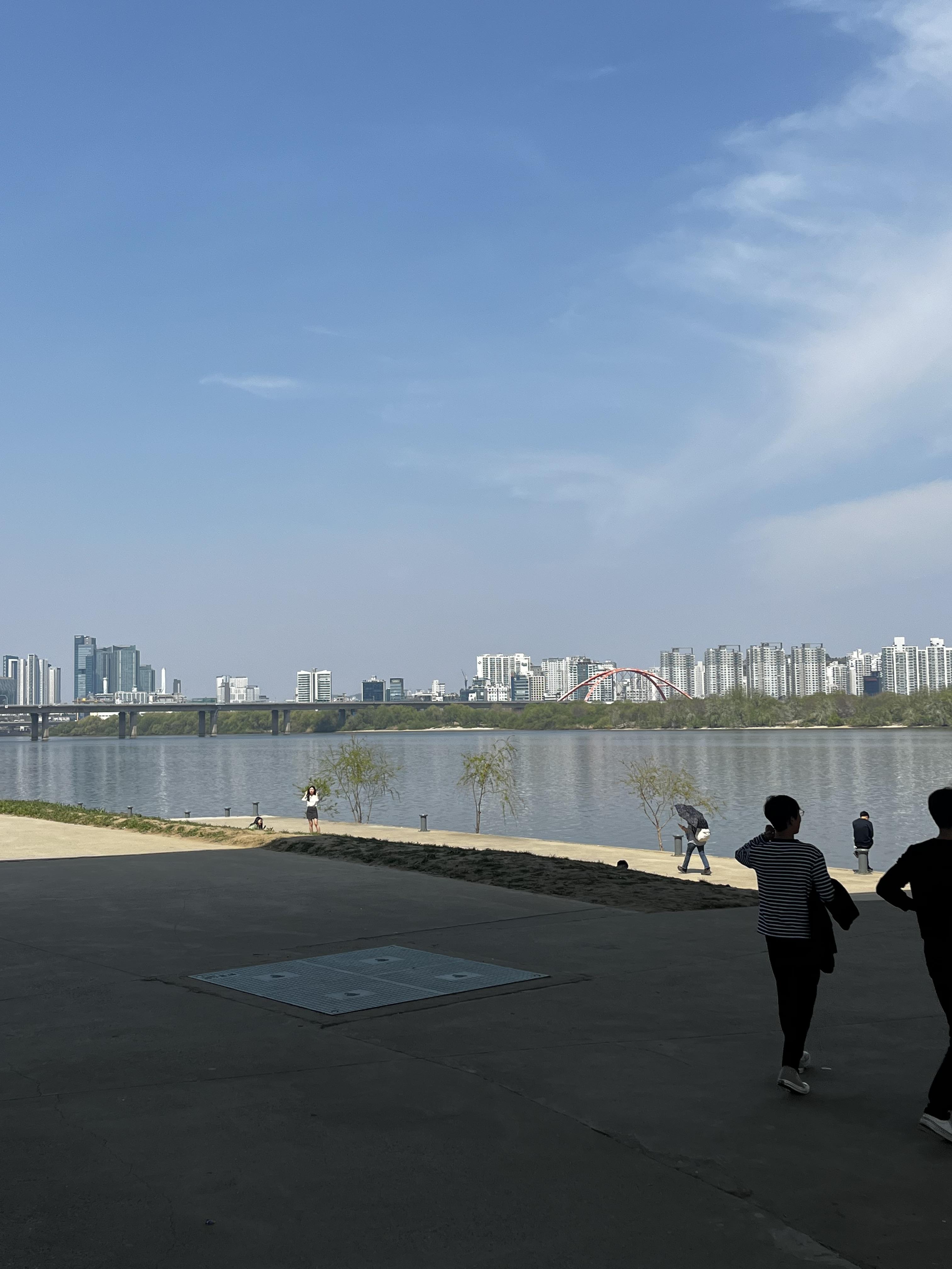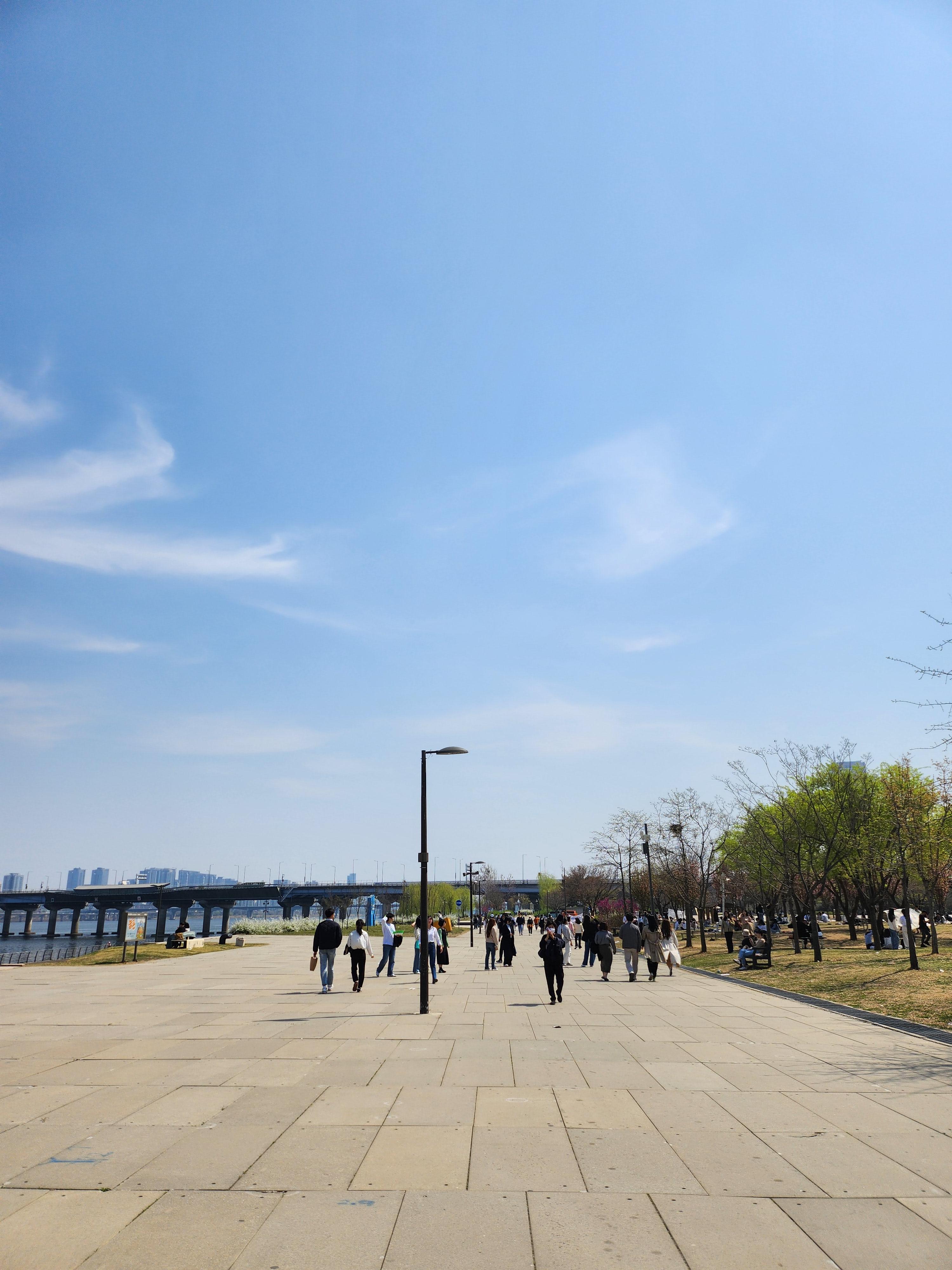 IFC에서 더현대 쪽으로, LG트윈타워를 지나 여의도한강공원으로 쭉 걸어갑니다. 이상기온 때문인지, 다음 날 비 소식이 있어서인지 벚꽃 사이사이로 초록 새순이 드문드문 보였어요. 일단 저희는 점심시간 활용해서 움직인거라 배달음식을 받기 위해 여의나루역 쪽으로 걸어갑니다. 날씨도 좋고 기분도 좋고 아무튼 이래저래 좋았던거야.