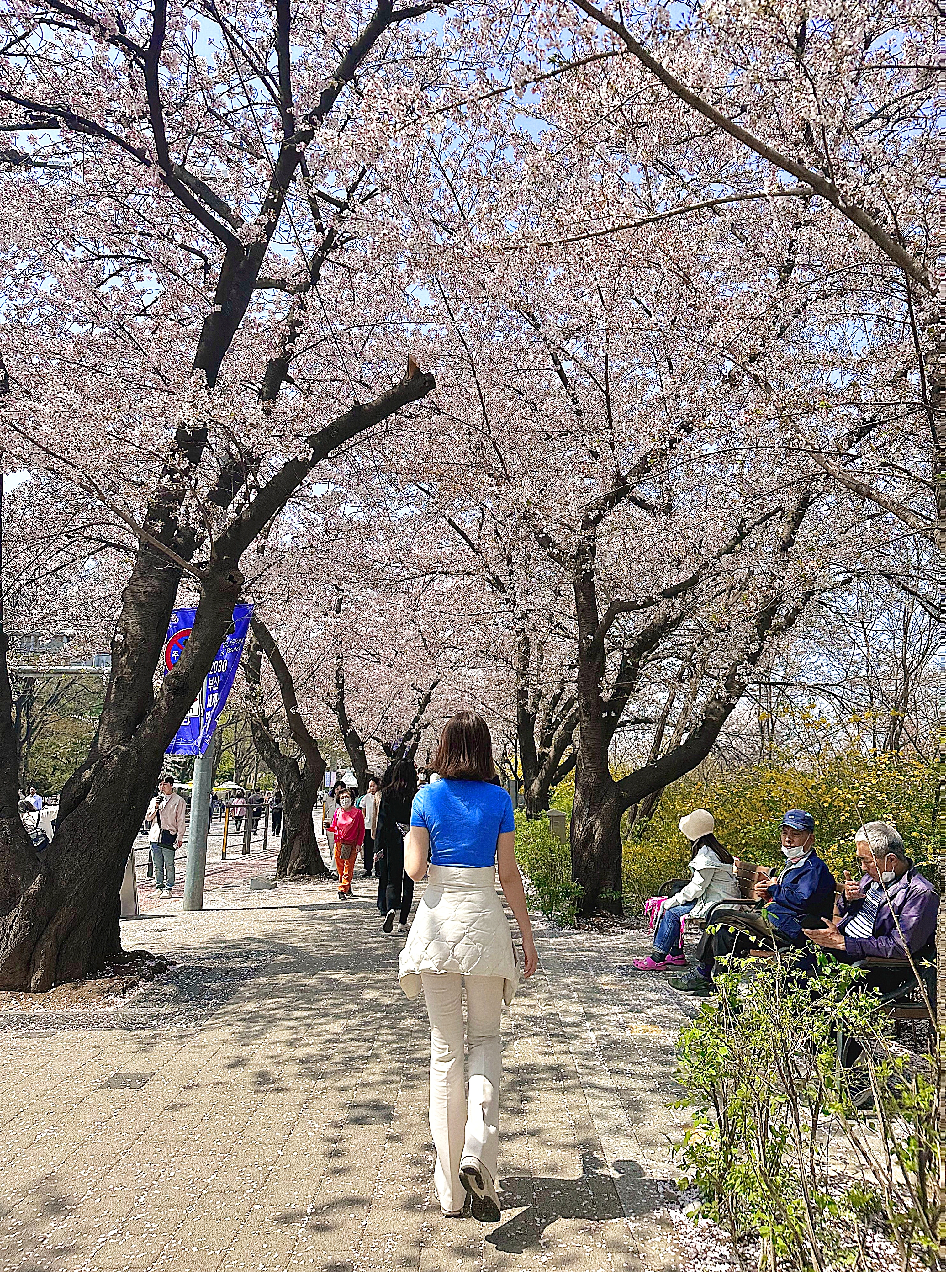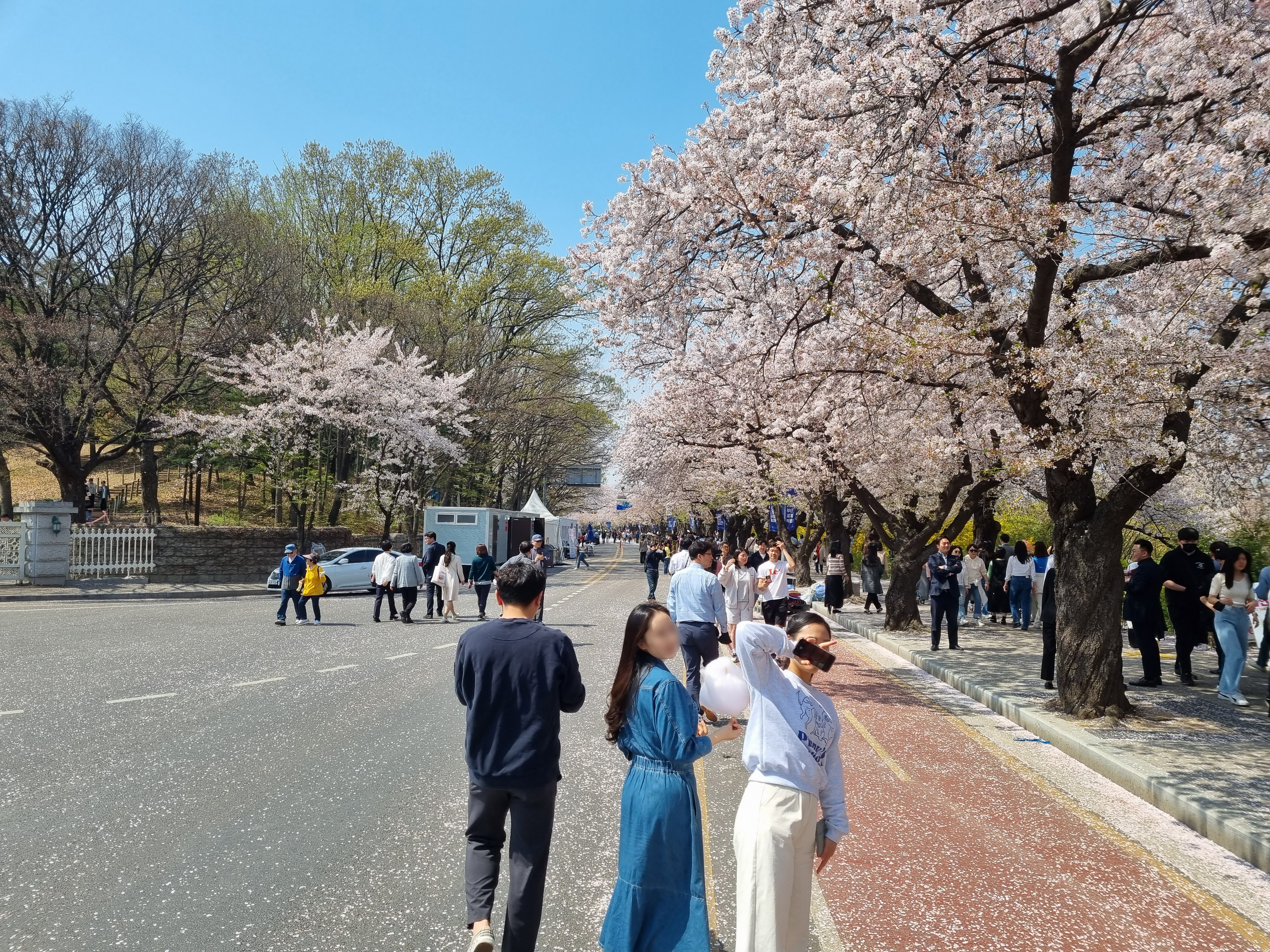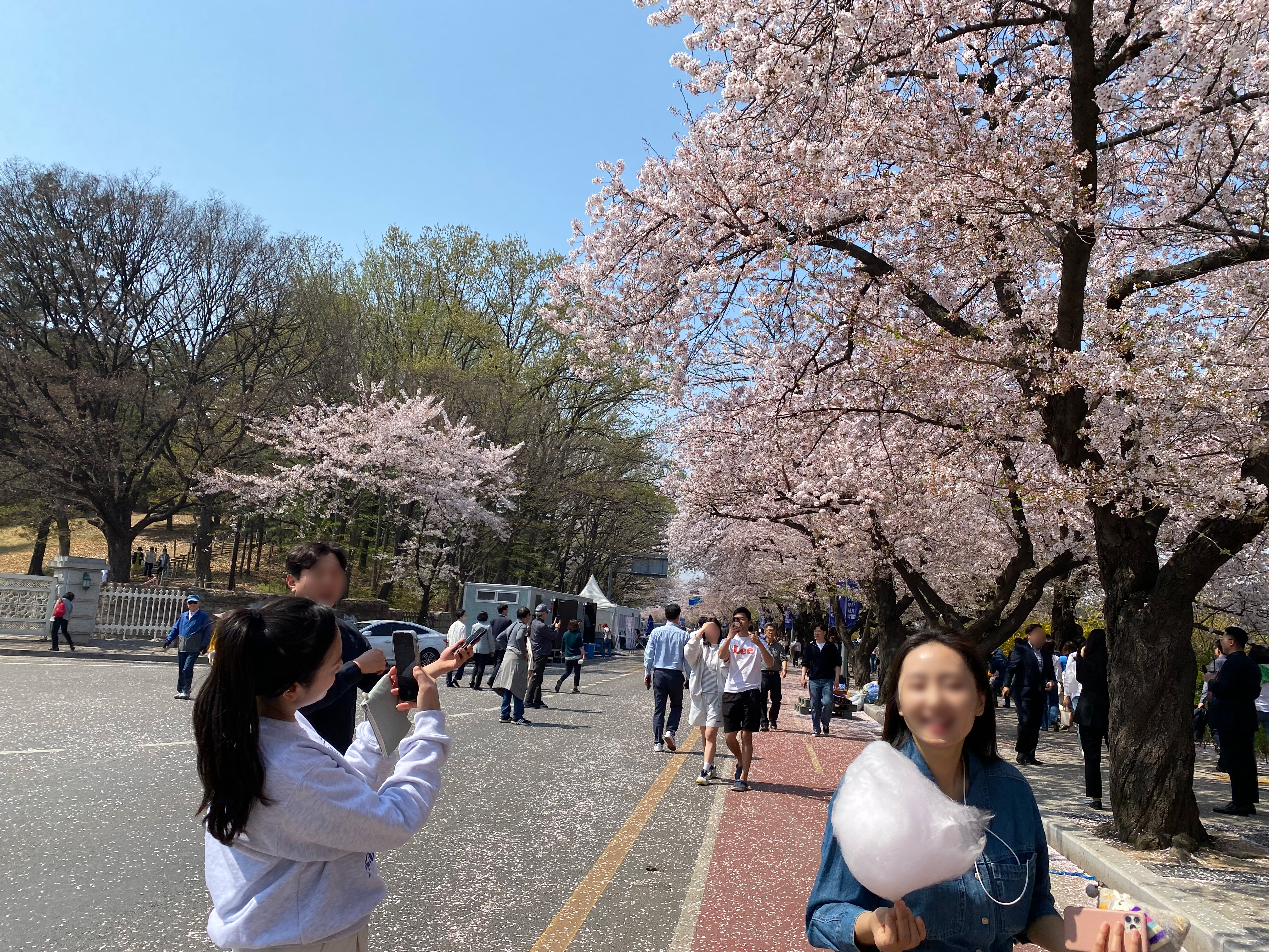 흐드러지게 핀 벚꽃 사이로 사람을 헤치고 천천히 산책해봅니다. 평소엔 차가 다니는 길이지만 도로를 통제해둬서 인파가 많아도 요리조리 다니기 편했어요. 사람 많은데 딱 질색인 저도 진해 군항제에 왔다는 마음가짐으로 하염없이 걸어봅니다.
