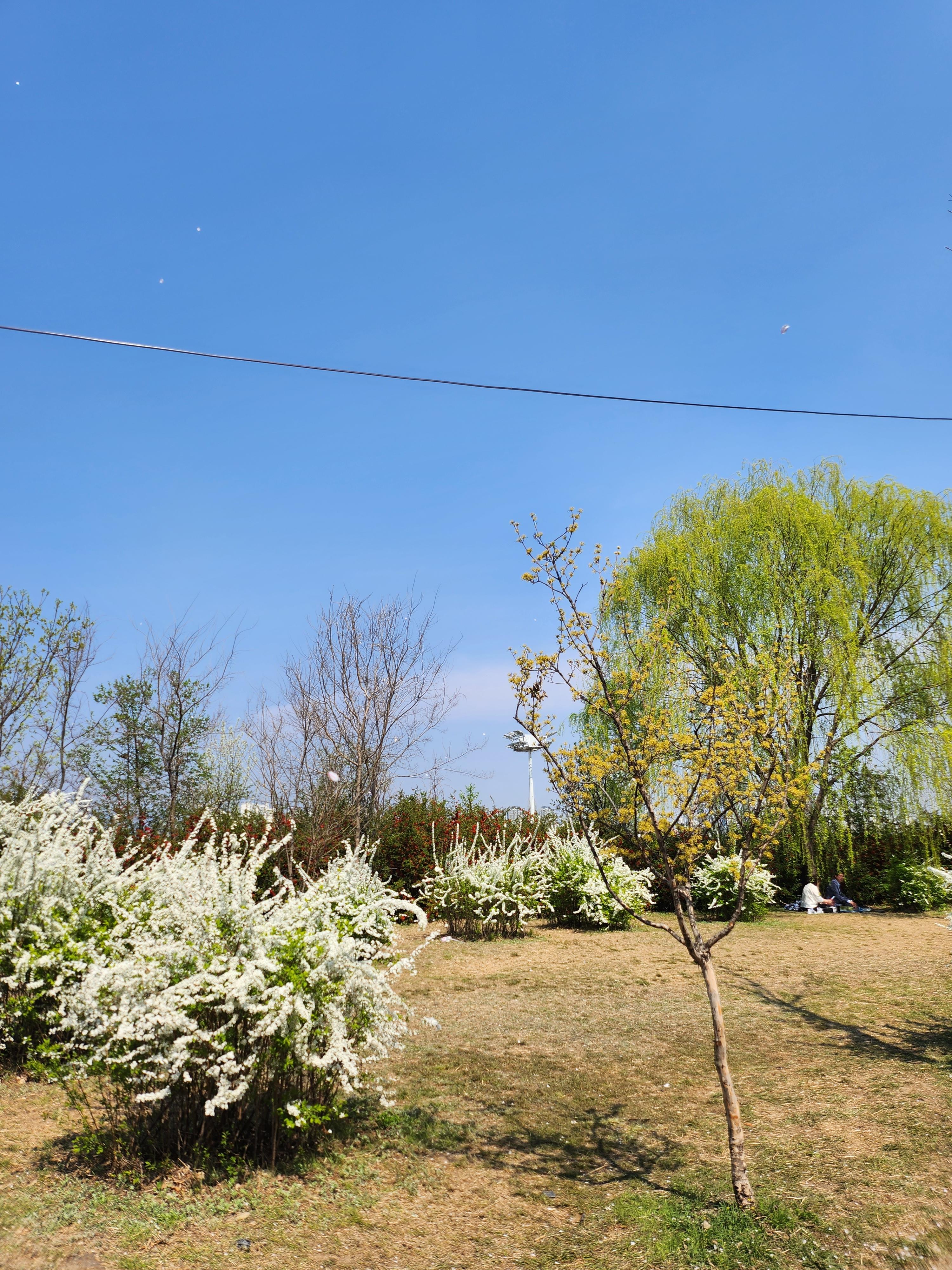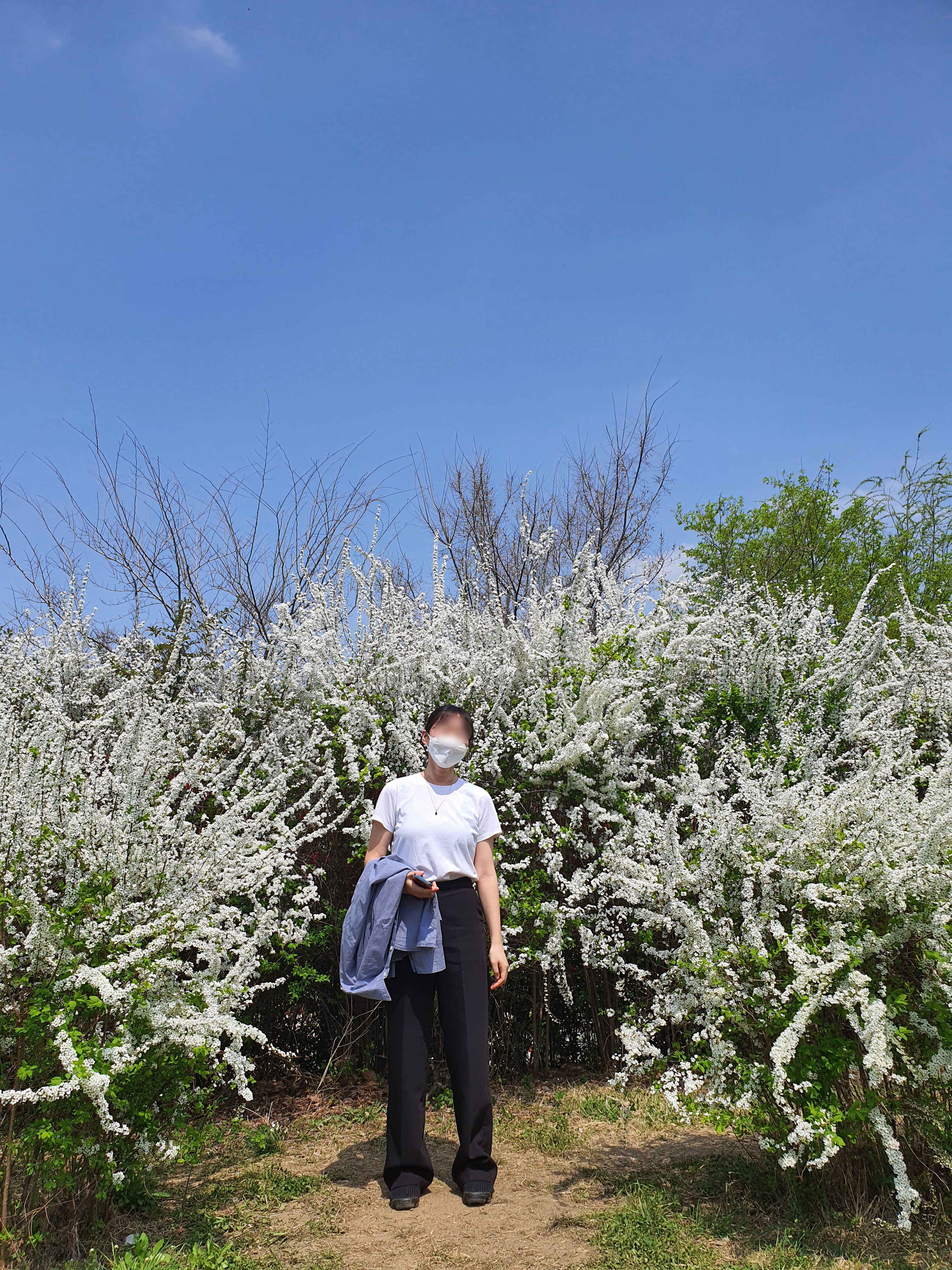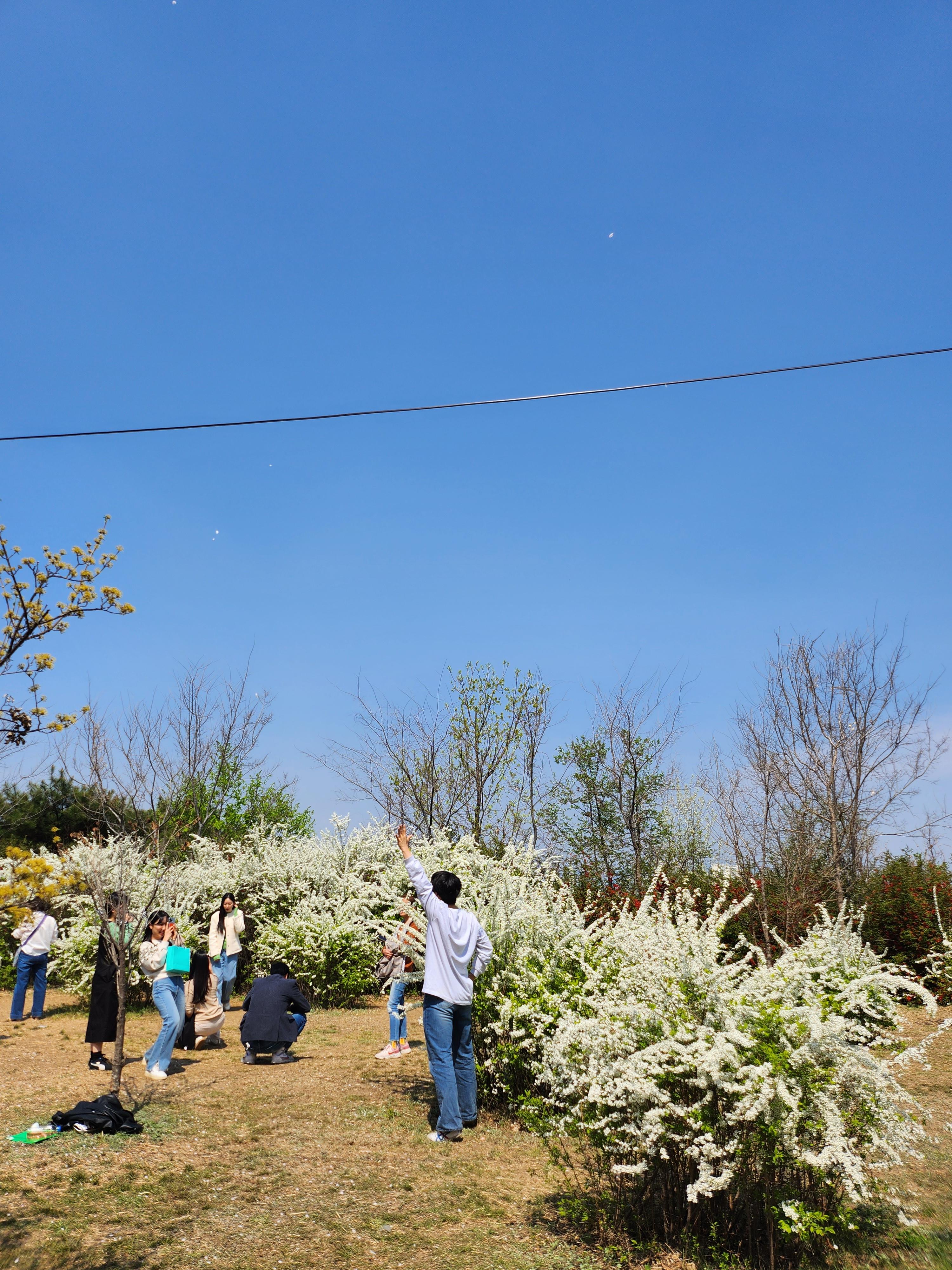윤중로 산책길에는 벚꽃만큼이나 각양각색의 꽃들이 흐드러지게 펴있답니다. 저 나무 이름이 아마 조팝나무. 이쁜 외향과 달리 조금 격한 이름, 발음 조심하세요. 하늘도 파아랗고 꽃도 분홍분홍, 하얗하얗, 노랑노랑으로 펴있으니 진짜 봄이네요.