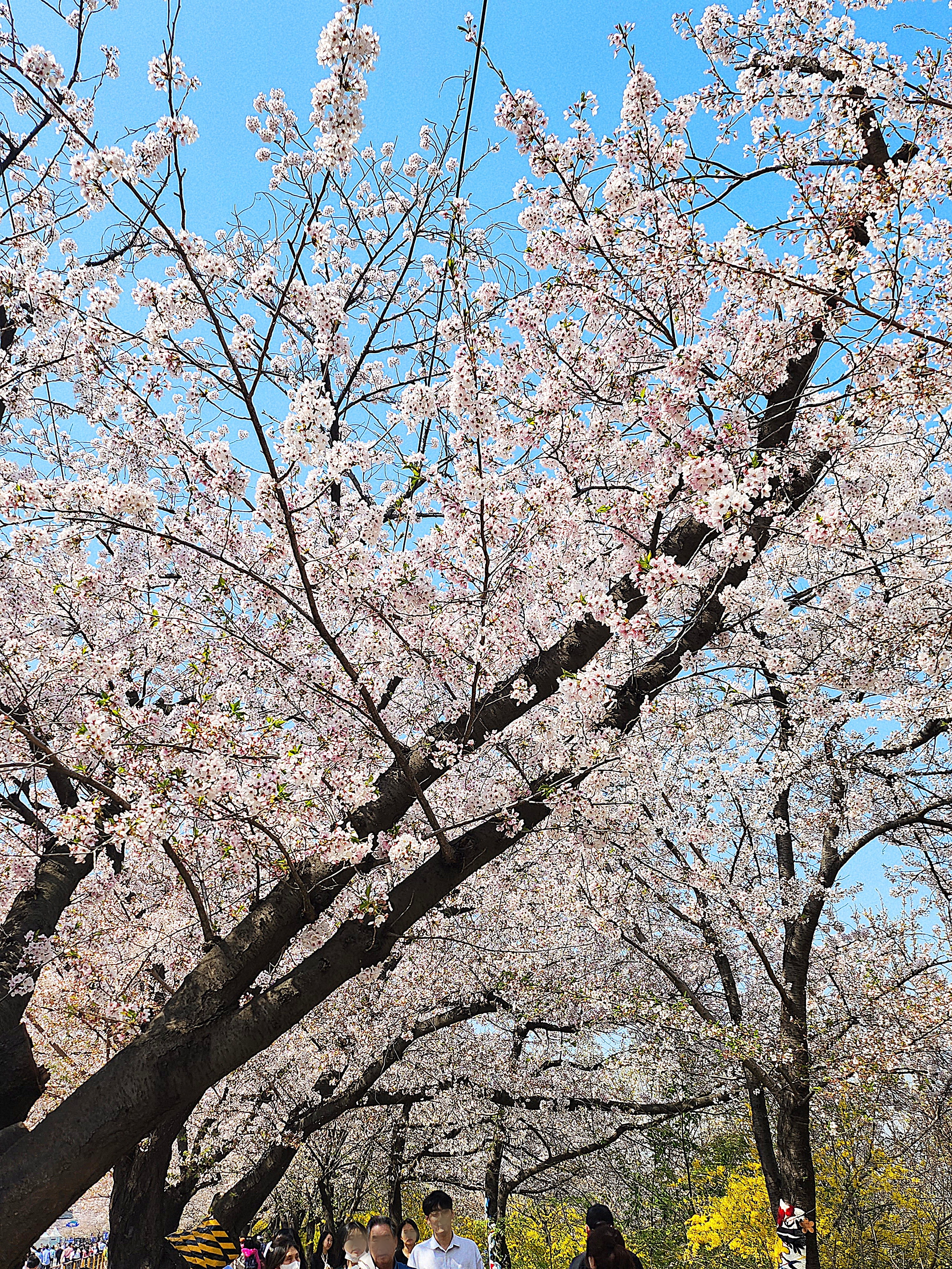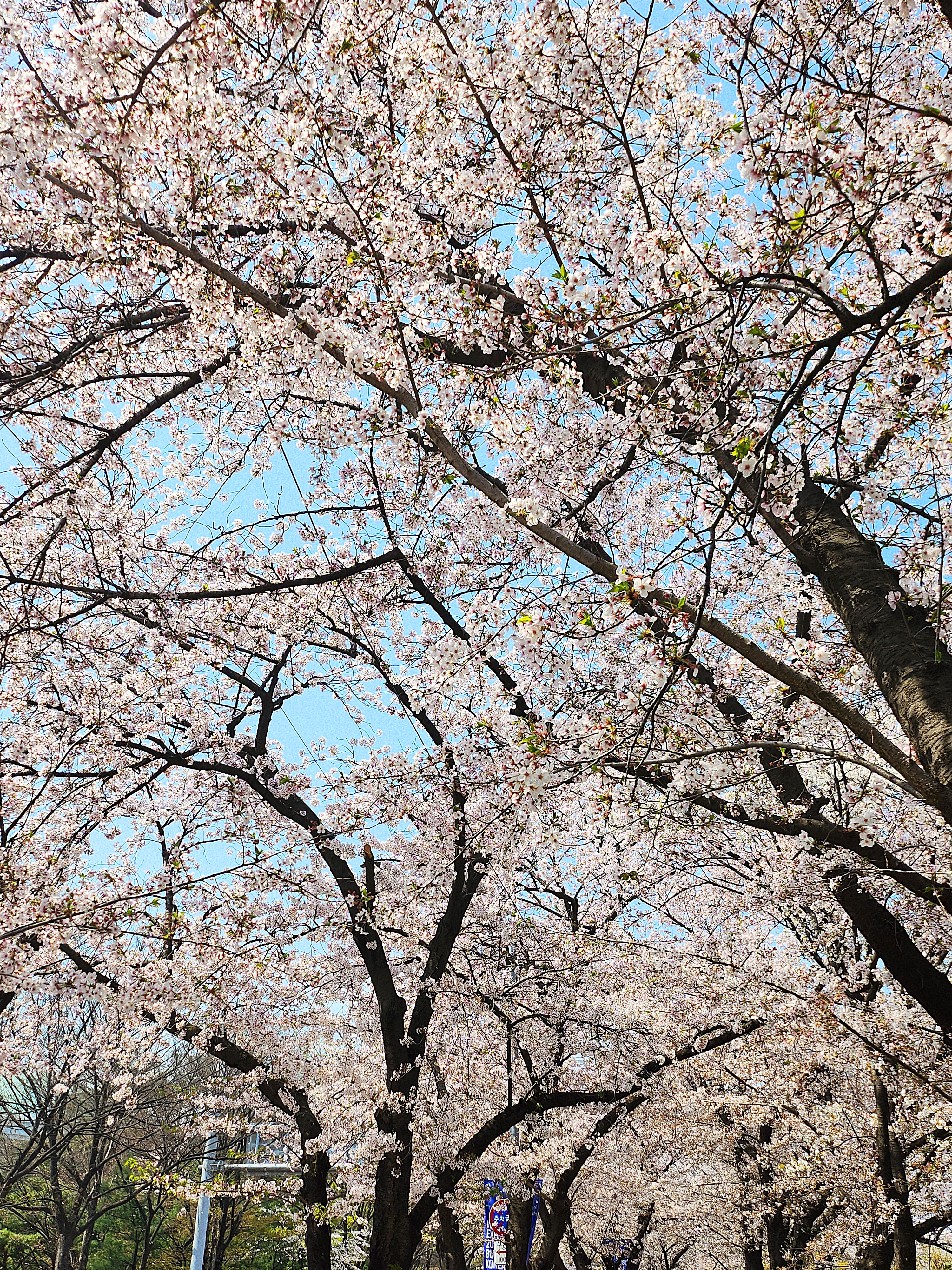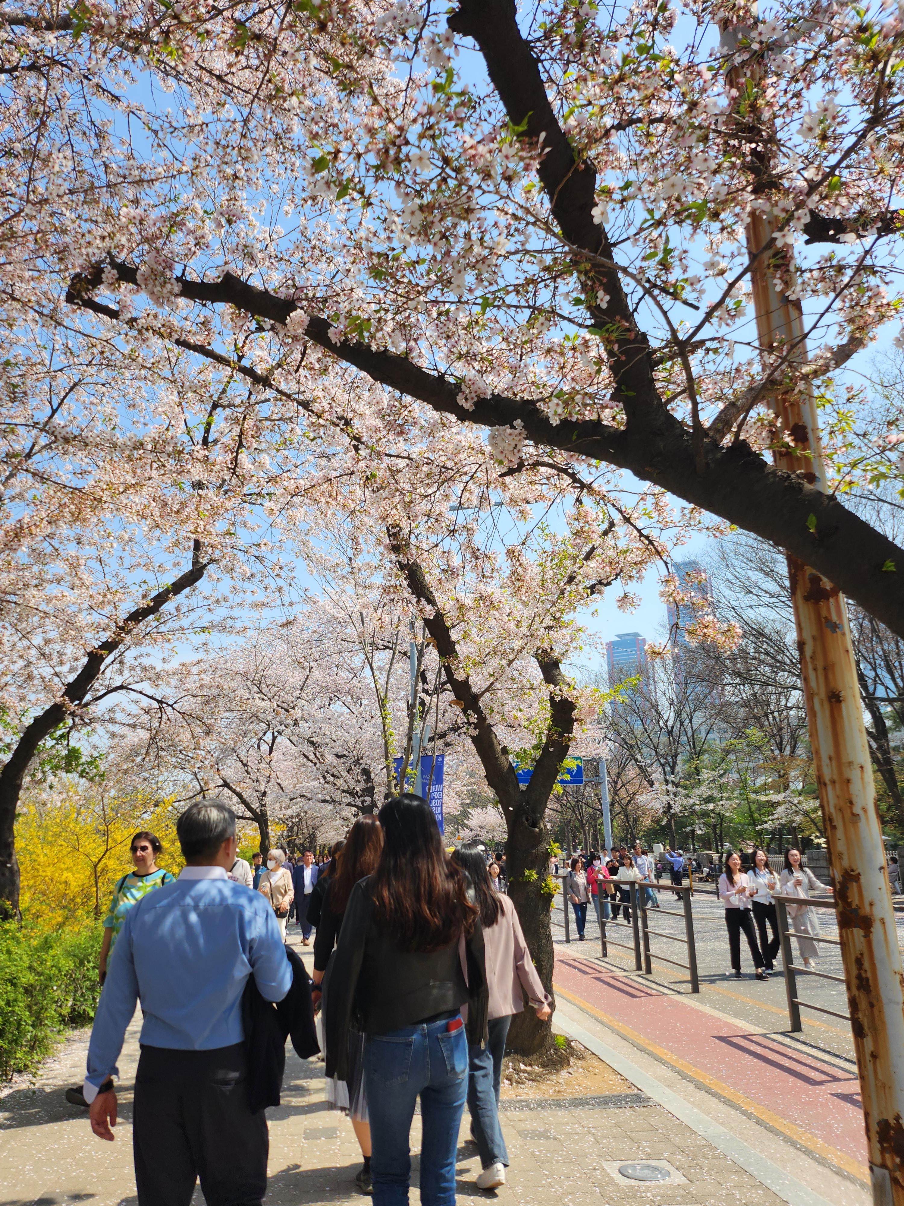 윤중로 교통통제 구간이자 벚꽃축제 출입로 입성. 저 꽃잎을 다 세면 오조 오억개 정도 되려나요? 안그래도 짧은 봄날 단 일주일 정도만 즐길 수 있는 벚꽃이 만개한 풍경.
