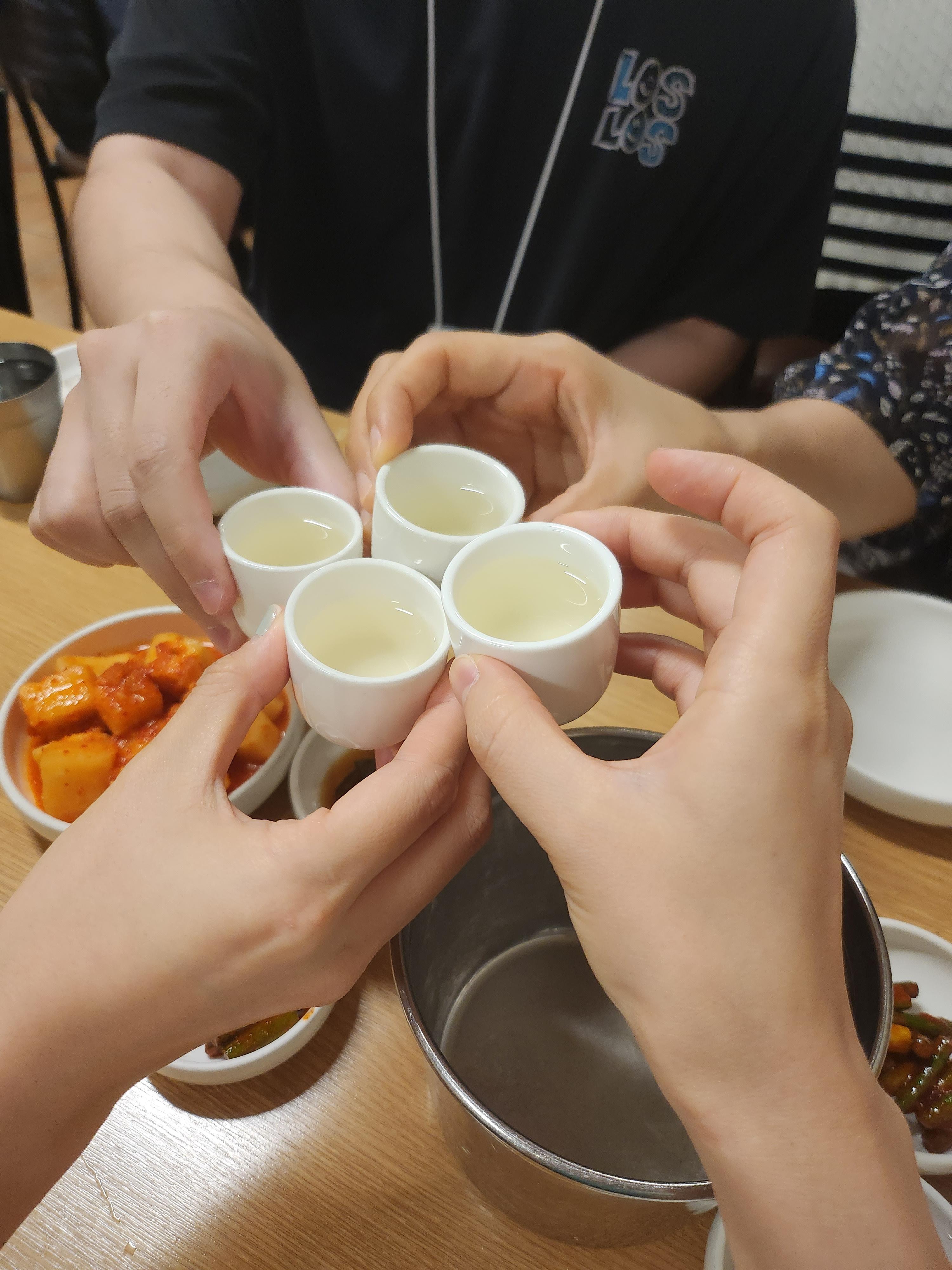 음... 약간 맛이 간 용암 같은 이미지구먼. 단체로 왔지만 모두 다같이 붙어 앉지는 못해서, 각 1메뉴로 삼계탕을 하나씩 주문하고 부추전이나 계란말이를 주문할 요량이었는데 이 날 워낙 바쁘고 대목이어서인지 서브 메뉴 주문은 안받는다고 하시더라구요... 으앙... 그래서 그냥 인삼주 한 잔씩 원샷하고 삼계탕만 코 박고 먹기로 했습니다.