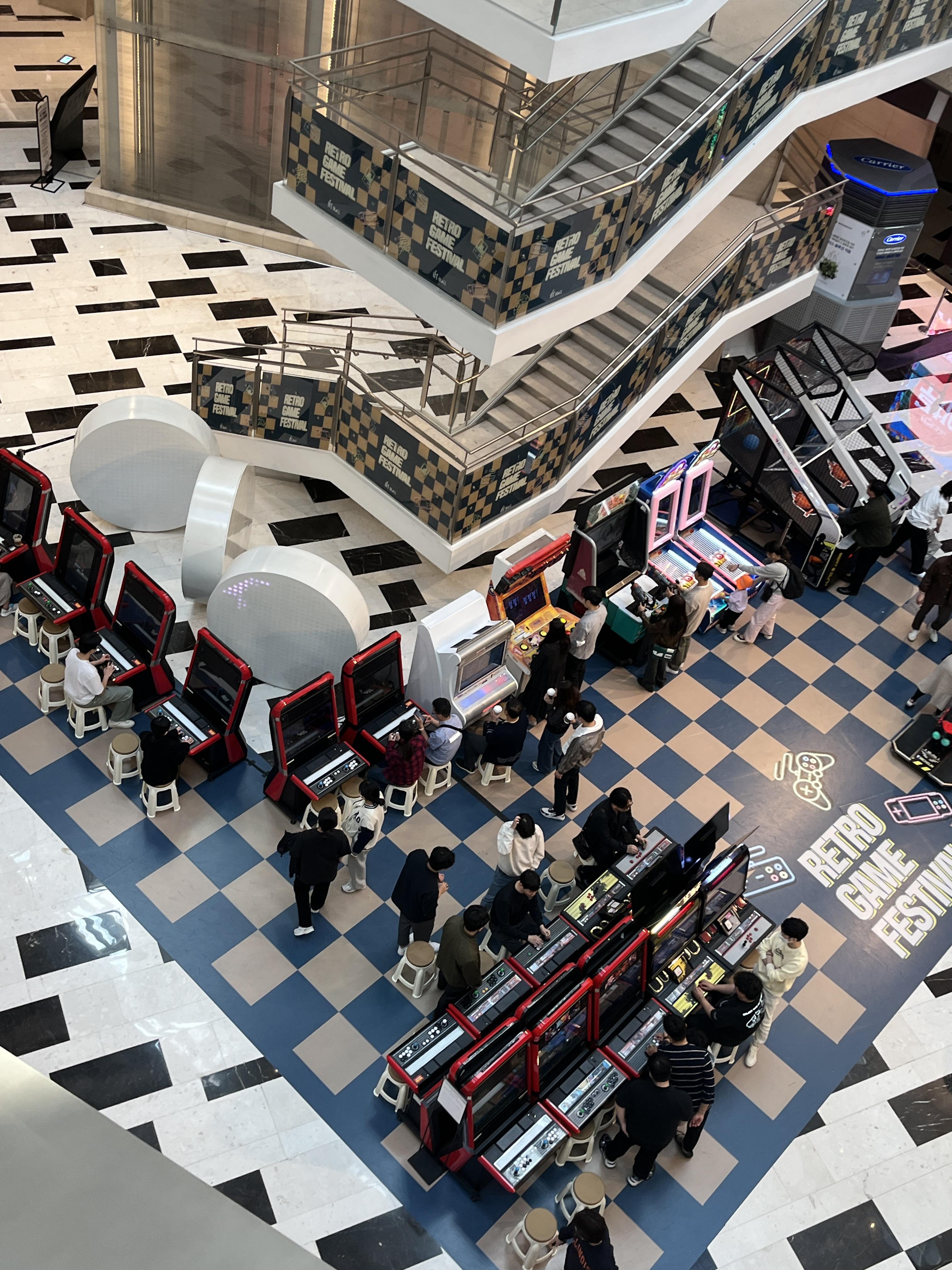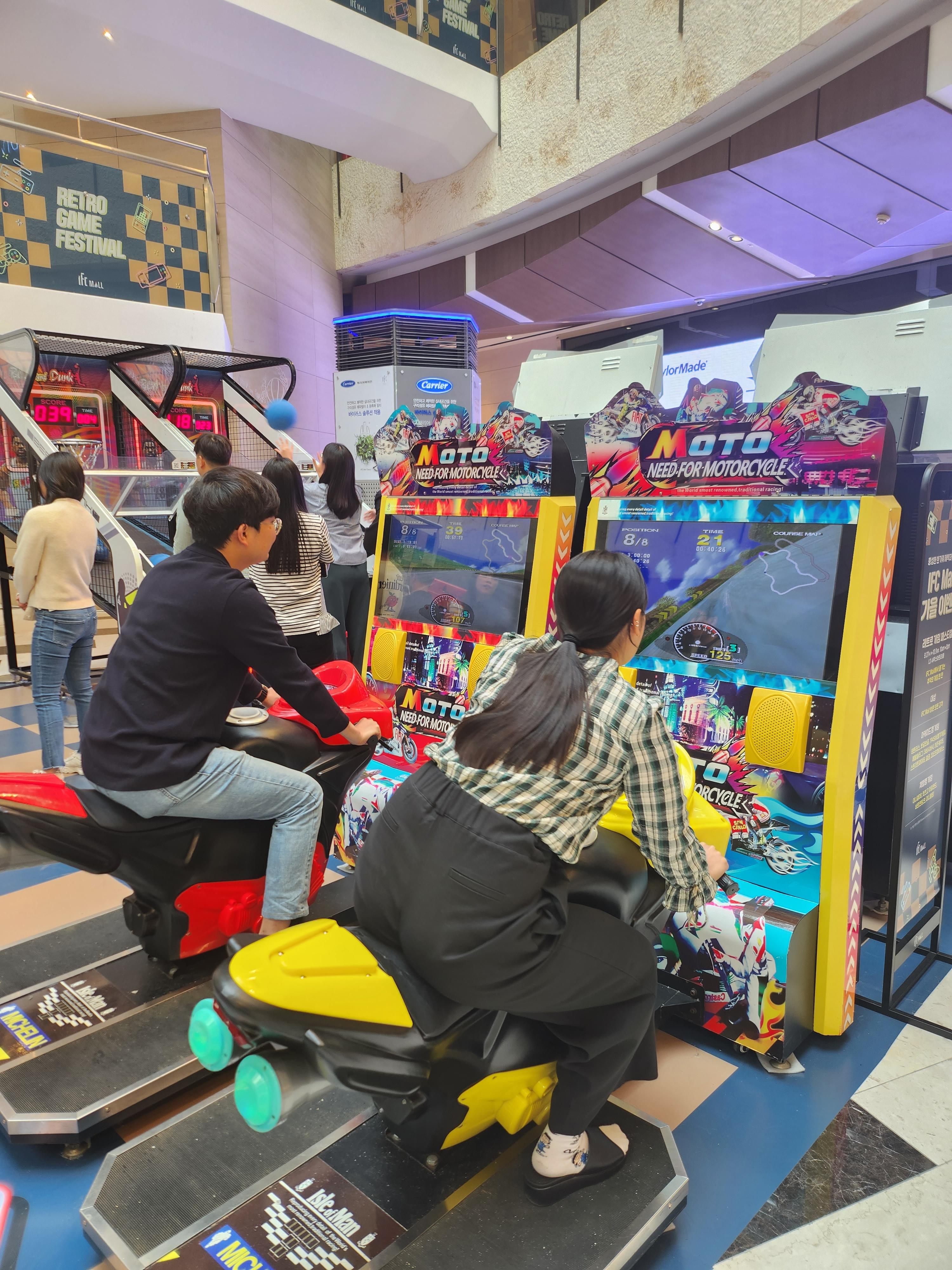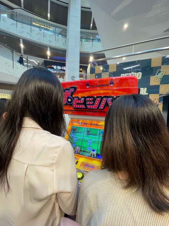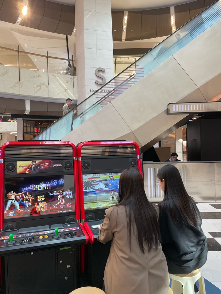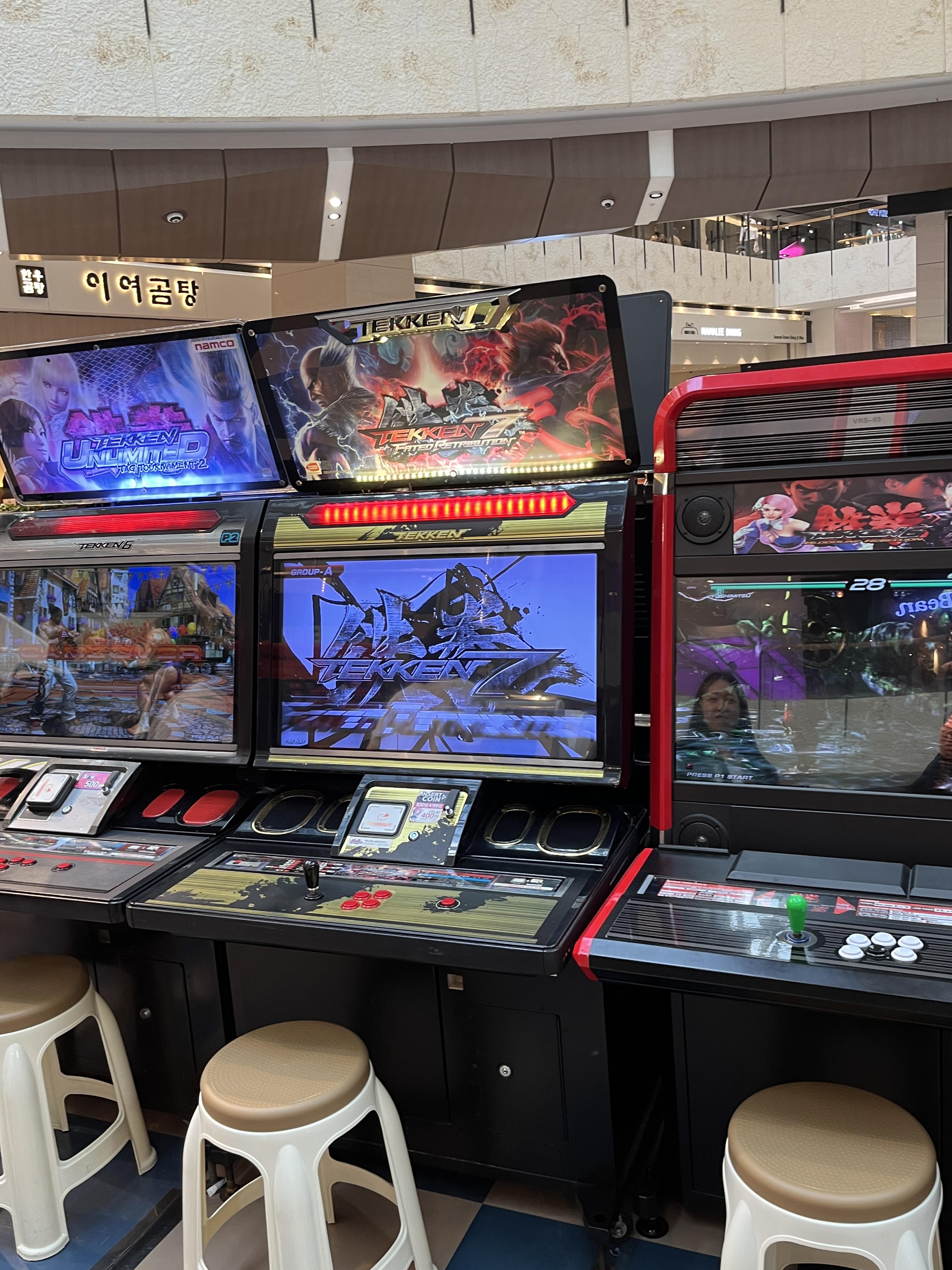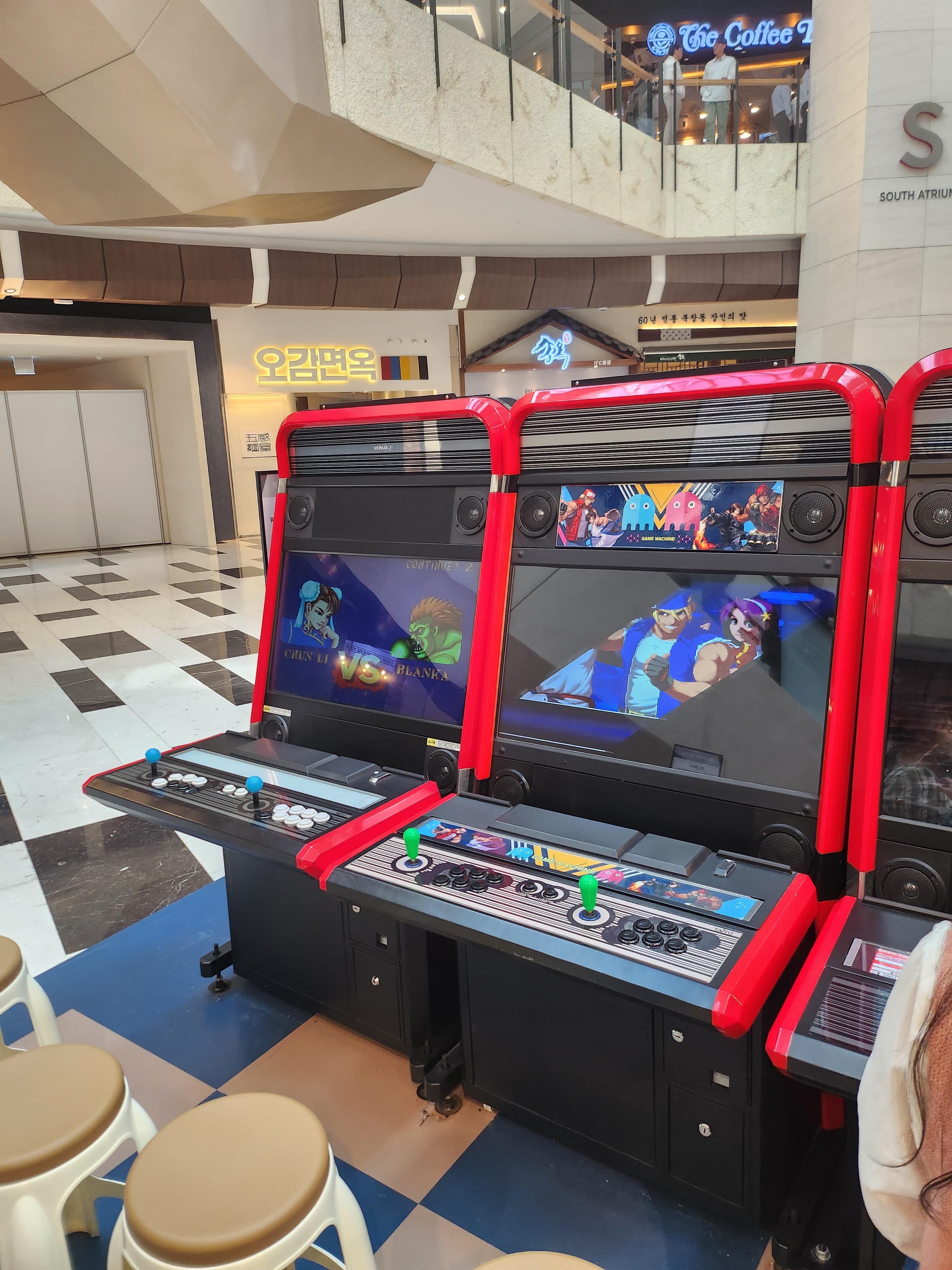 그래서 발견하자마자 공지를 돌렸습니다. 제군들, 함께하세. 모든 게임이 공짜라네. 이 소식에 마음이 동한 동료들이 의기투합하여 점심을 최대한 빨리 먹고(진짜 10분컷) 최대한 빨리 오락실로 향했습니다. 진짜, 온갖 레트로 게임이 다 있었습니다. 스트리트파이터, 철권, 테트리스, 보글보글, 메탈슬러그, 1945, 킹오프파이터스, 더비시바시, 히든캐치5, 미니볼링...