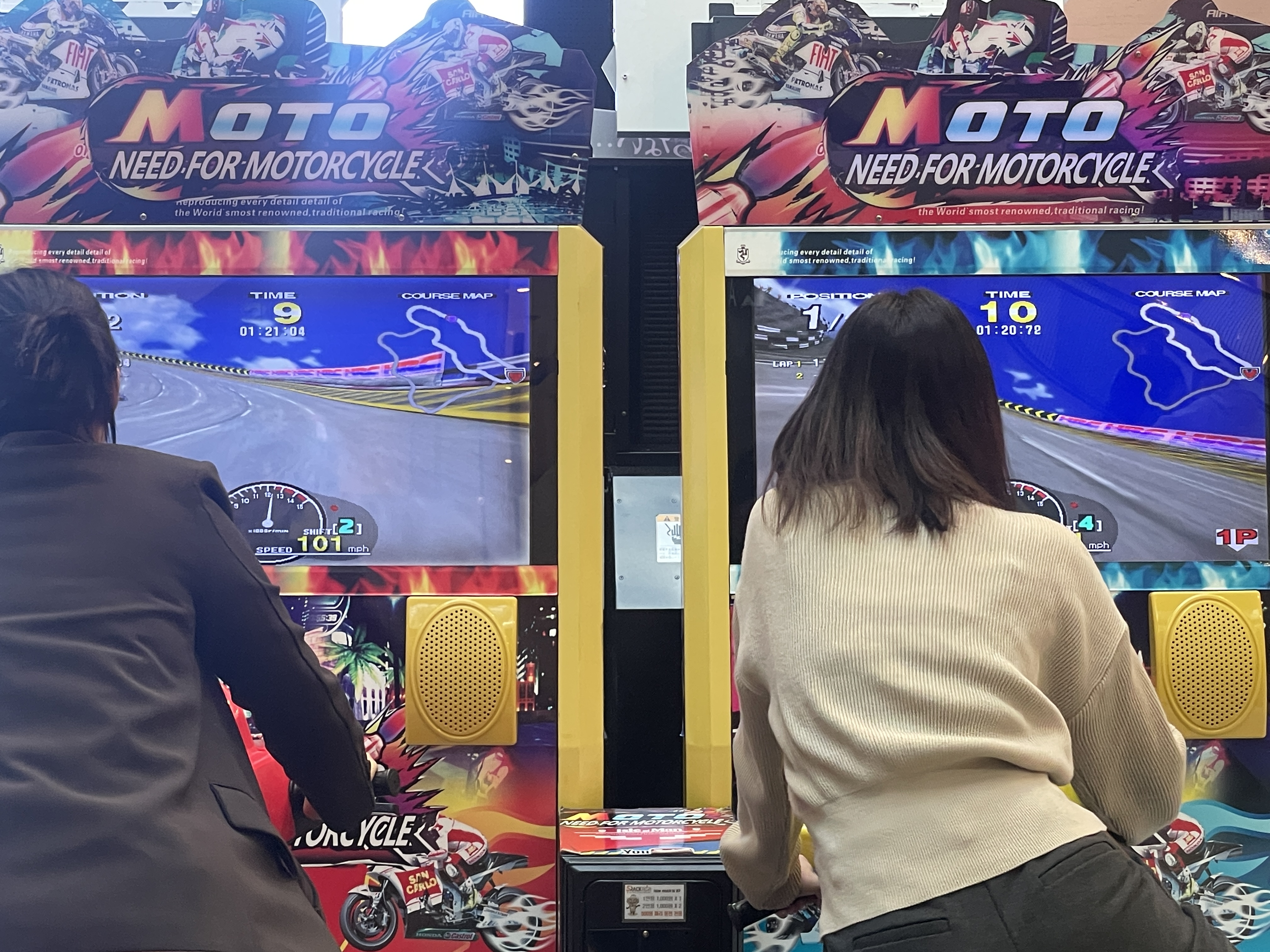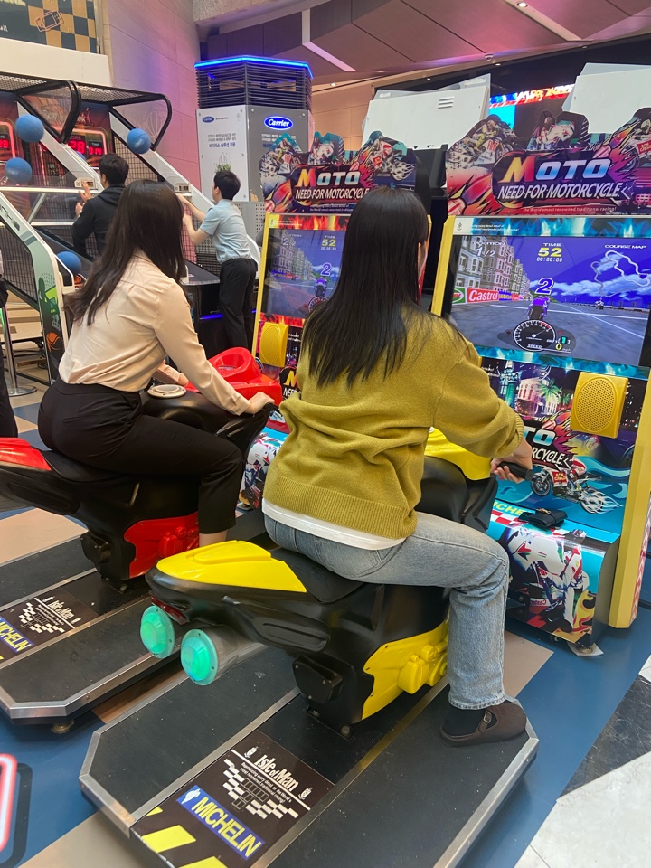 부아아아아아앙! 오토바이도 타봅니다. 2인 플레이, 3인 플레이가 되는 게임이 많아서 좋았어요. 서로 대결 아닌 대결도 해보고. 게임 시간이 정말 짧은 편인데, 그 속에서 기대와 환희, 좌절과 절망을 모두 지켜볼 수 있어서 더 흥미진진 했습니다.