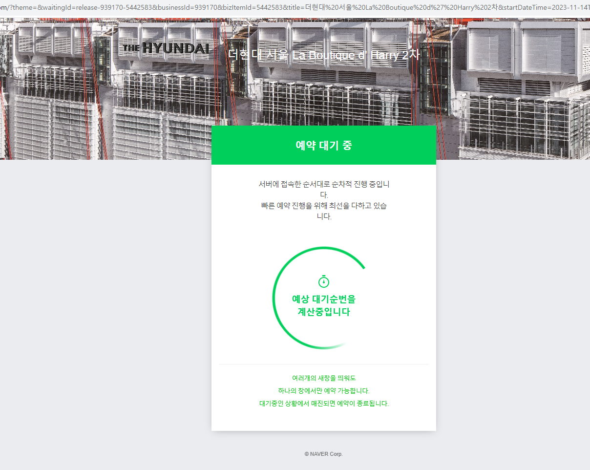 원성과 아쉬움이 터져나옵니다. 시도해본 임직원만 스무명 이상이고 웹이랑 앱 둘다 시도했으니 기기만 40대 이상이었단 소린데 단 한명도 성공자가 없네요. 극악무도하다 진짜. 더현대는 빠르게 동시접속자 4만명이 넘었다며 공지를 때리니 어이가 없고 코가 막혀서. 더현대 걸어가면 5분도 안걸리는데 H 장식된 트리랑 해리 만나는 거 진짜 힘드네요.