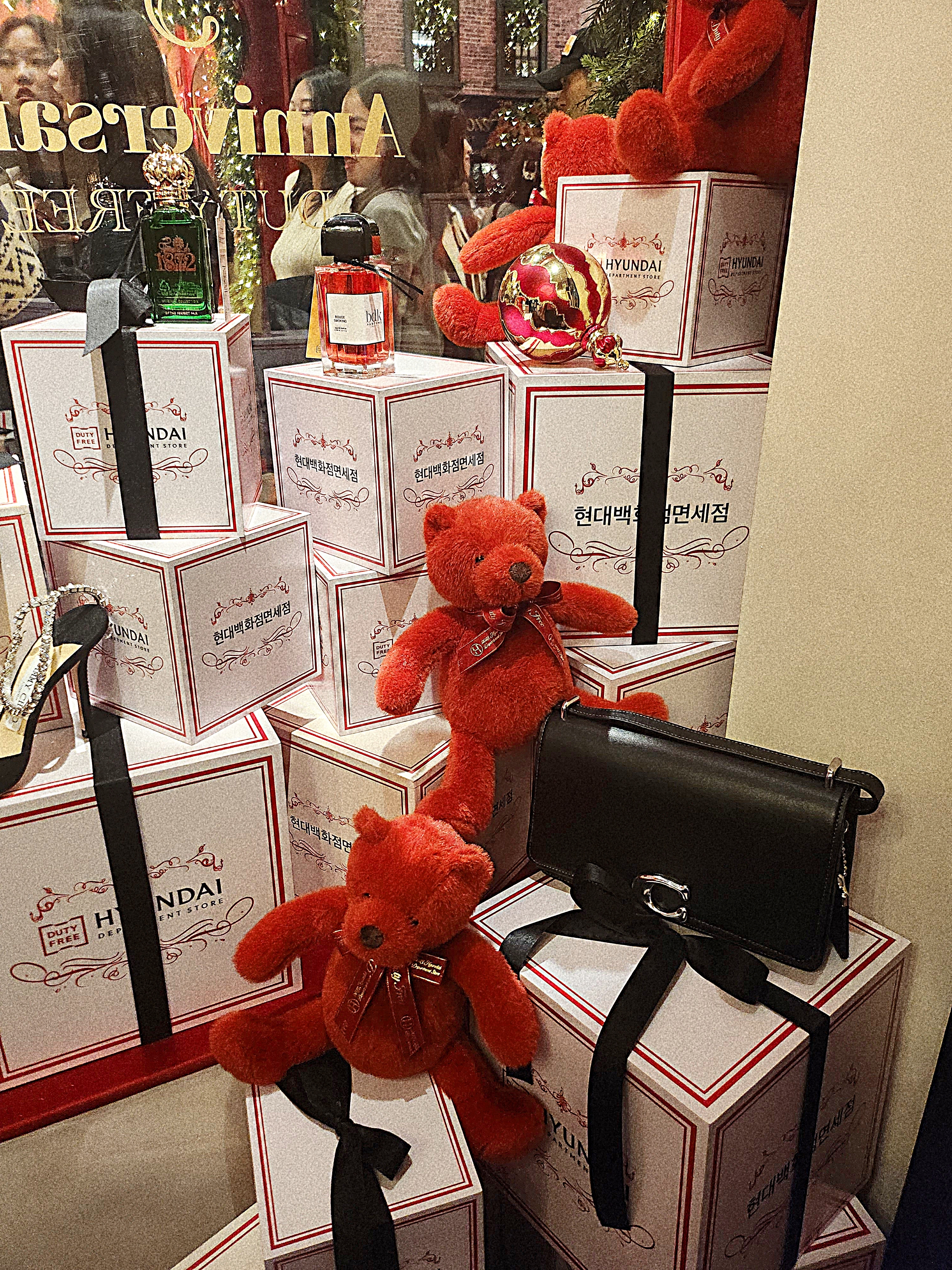 짜잔. La Boutique D Harry라는 올해의 슬로건을 단 해리네 상점에 도착했습니다. 온통 빨갛구나. 크리스마스에 붙어있는 오너먼트보다 내부에 사람이 더 많았어요. 허허헣ㅎ허허헣허허헣. 내향인은 멀리서 지켜만 봐도 기가 빨리는 마력의 스페이스랄까. 이리저리 기웃거리고 쪽쪽거리는 커플들이 얼른 프레임에서 사라져주길 3분 이상 기다려서 얻은 사진입니다. 사실 저기 오른쪽 문에 남정네 한 분이 결국 같이 찍히셨는데 Ai지우개로 지웠습니다. 수고했다, 갤럭시.
