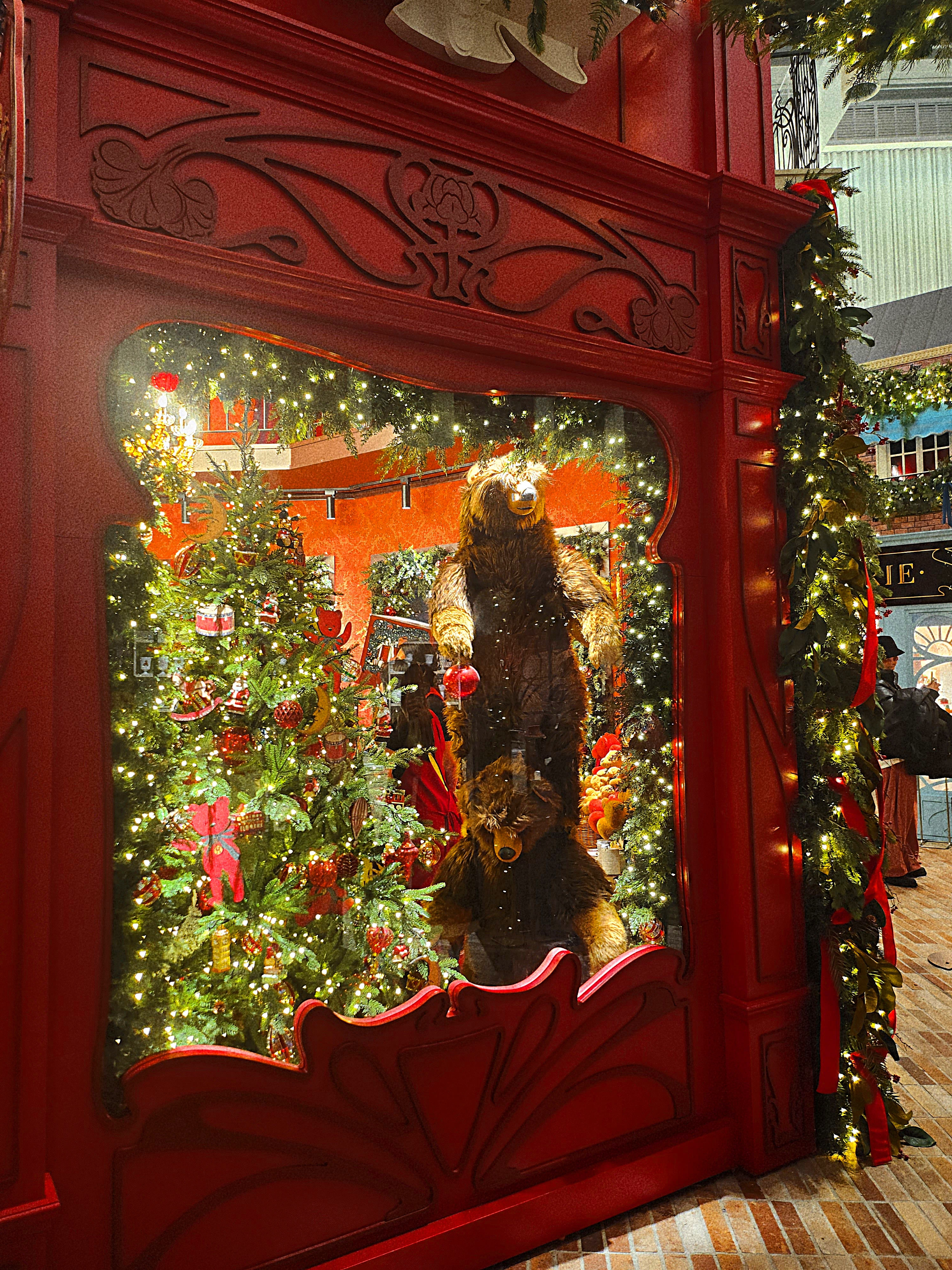 지난해에는 빨간 곰돌이가 트리에 붙어있었는데, 올해는 2D 그림입디다. 제 마음 속으로는 "무성의 무엇?"라는 말이 절로 튀어나왔지만 입으로는 "우와, 예쁘다~"를 남발했습니다. 그래야 내년에도 이런 공간을 공짜로 공개해줄 것 같았어요. 어쨋든 해리의 상점은 가장 중앙에 있기에 여기저기 뱅뱅 돌면서 사진 찍을만한 곳이 많습니다. 유리 역광에 본인이 비치지 않게 요리조리 잘 찍어보세요. 어딘가에 해리상점이라고 쓰인 박스를 쓰고 머리를 이리저리 돌려대는 불곰 영상도 있었는데 안찾아지네요.