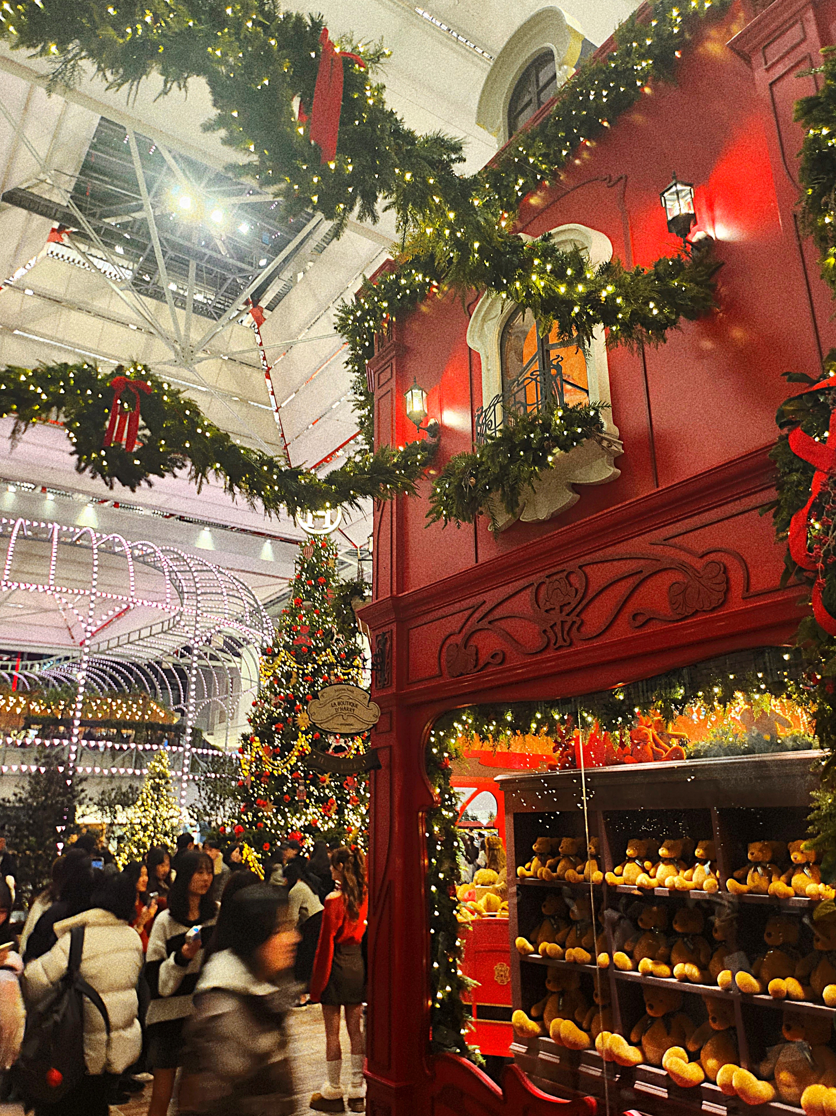 짜잔. La Boutique D Harry라는 올해의 슬로건을 단 해리네 상점에 도착했습니다. 온통 빨갛구나. 크리스마스에 붙어있는 오너먼트보다 내부에 사람이 더 많았어요. 허허헣ㅎ허허헣허허헣. 내향인은 멀리서 지켜만 봐도 기가 빨리는 마력의 스페이스랄까. 이리저리 기웃거리고 쪽쪽거리는 커플들이 얼른 프레임에서 사라져주길 3분 이상 기다려서 얻은 사진입니다. 사실 저기 오른쪽 문에 남정네 한 분이 결국 같이 찍히셨는데 Ai지우개로 지웠습니다. 수고했다, 갤럭시.