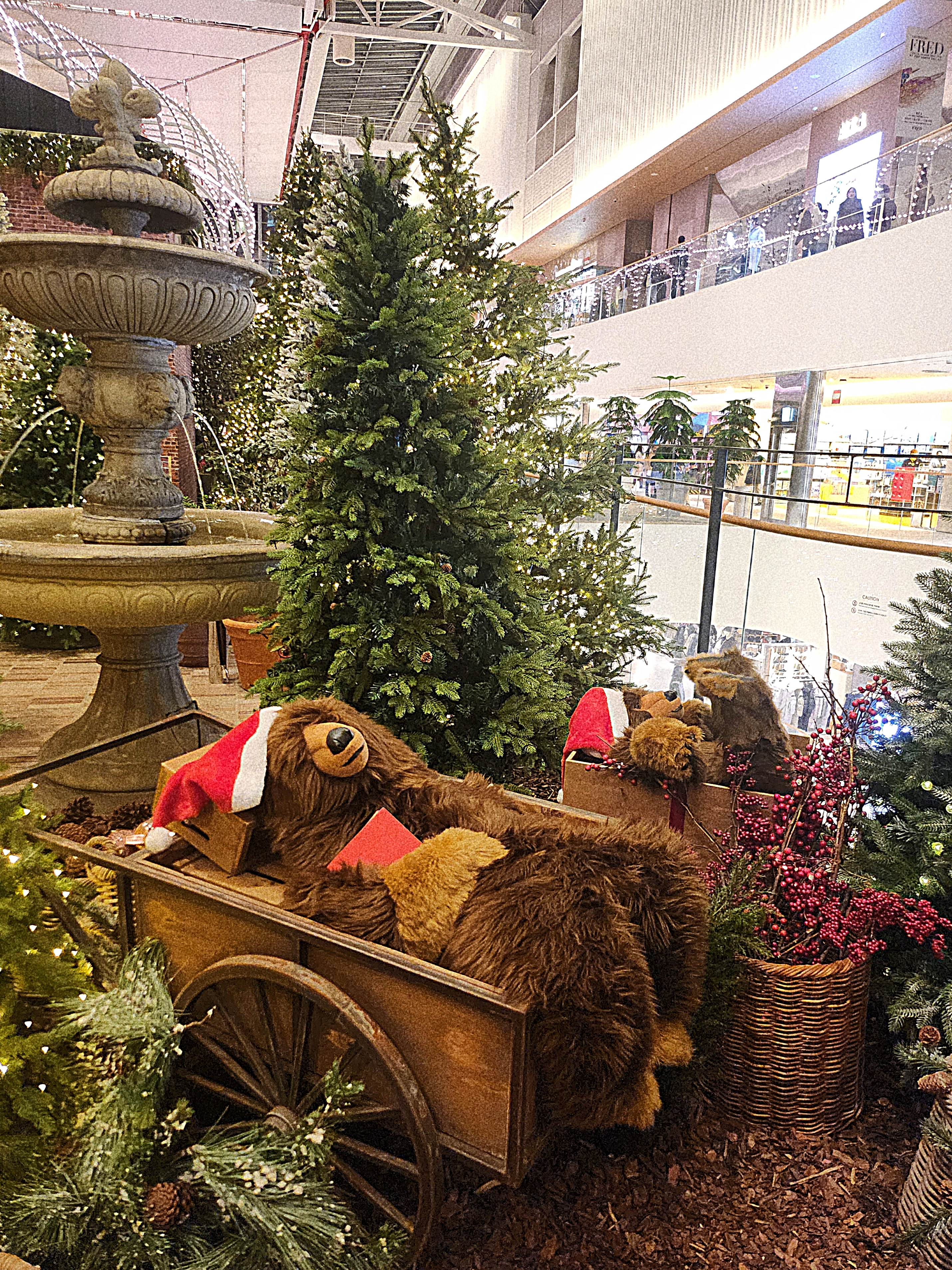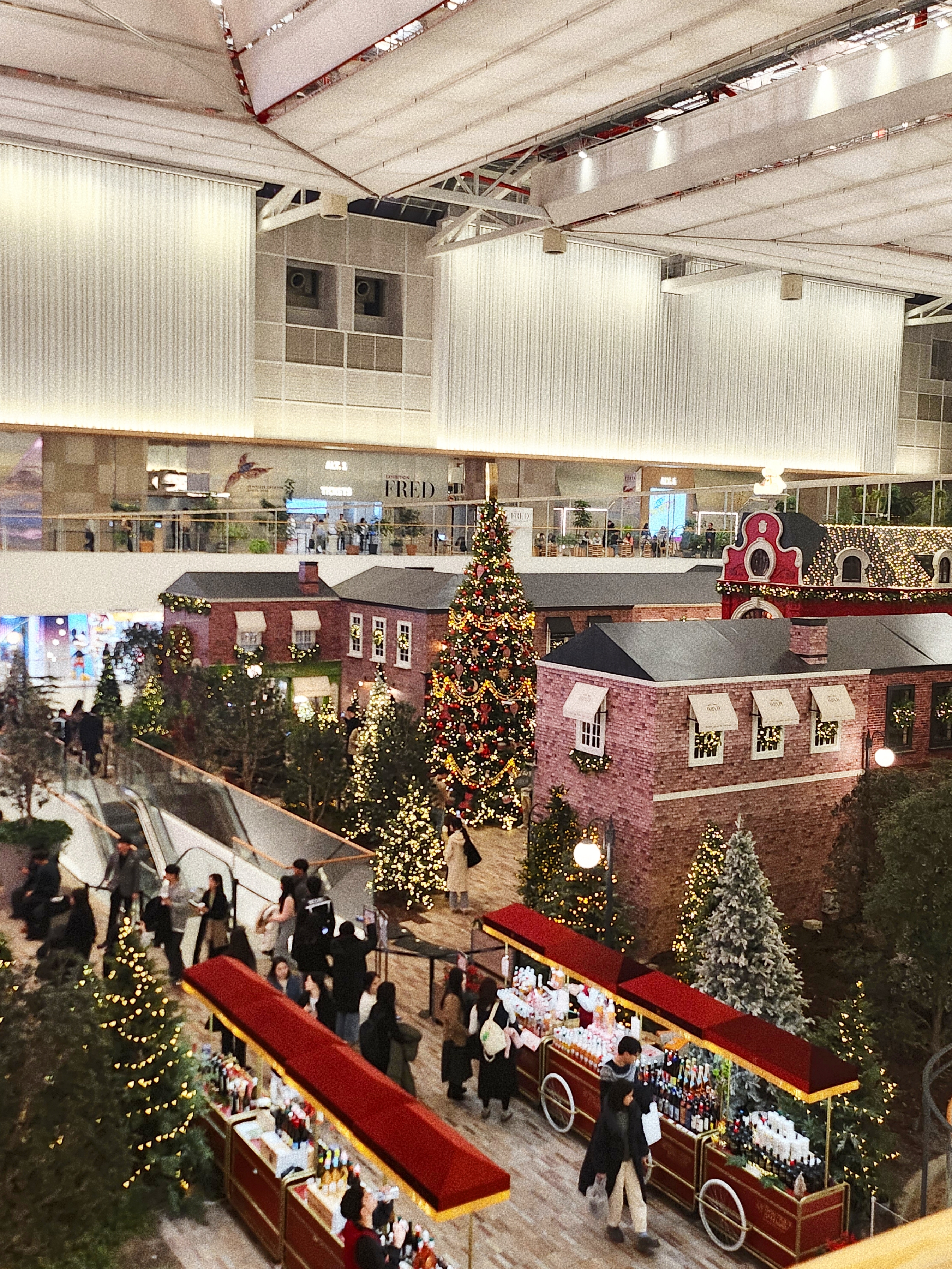 어찌됐건간에 트리는 예쁩니다. 저는 종교도, 문화도 딱히 크리스마스를 챙기거나 설레하지 않았던 사람 중 한명인지라 캐롤이나 트리에는 별 반응을 하지 않는데요. 더현대는 매해 뉴욕 록펠러 센터에서 마주쳤던 트리만큼의 웅장함과 몽글몽글 아련한 감성을 불러일으켜줍니다. 지난 해 레드컬러 곰돌이와 동그라미 오너먼트로 간결했다면, 올해는 오너먼트의 종류도 다양해지고 더 화려해진 느낌입니다. 예쁘죠?