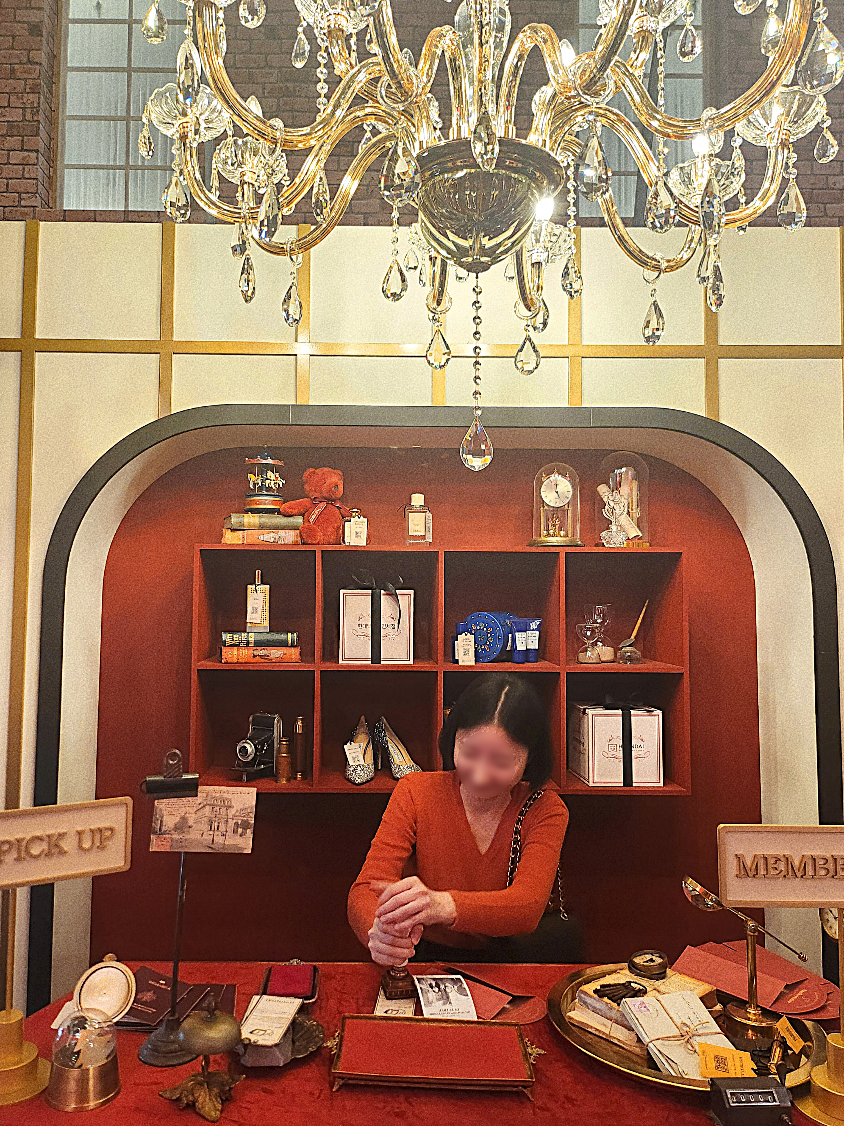 며칠 전 뉴진스가 직접 왔다갔다는 현대백화점 면세점 코너에도 들어가봅니다. 여기 담당 직원분이 복도에 서 있던 저희를 호출하셔서 이것저것 많이 쟁여주셨습니다. 여기서 인증샷을 찍고 해쉬태그를 올리면 막대사탕을 하나씩 주고, 흑백 프린트 사진도 찍을 수 있습니다. 아, 그리고 매일 QR 경품 이벤트도 응모할 수 있대요. 저기 올려져있는 향수 전부 사용해도 된다고 해서 마음에 드는 브랜드로 한번 뿌려도 보고. 저는 어쨋든 민지님이 앉으셨던 의자에 살포시 앉아서 도장 한 번 찍어보는 걸로 만족.