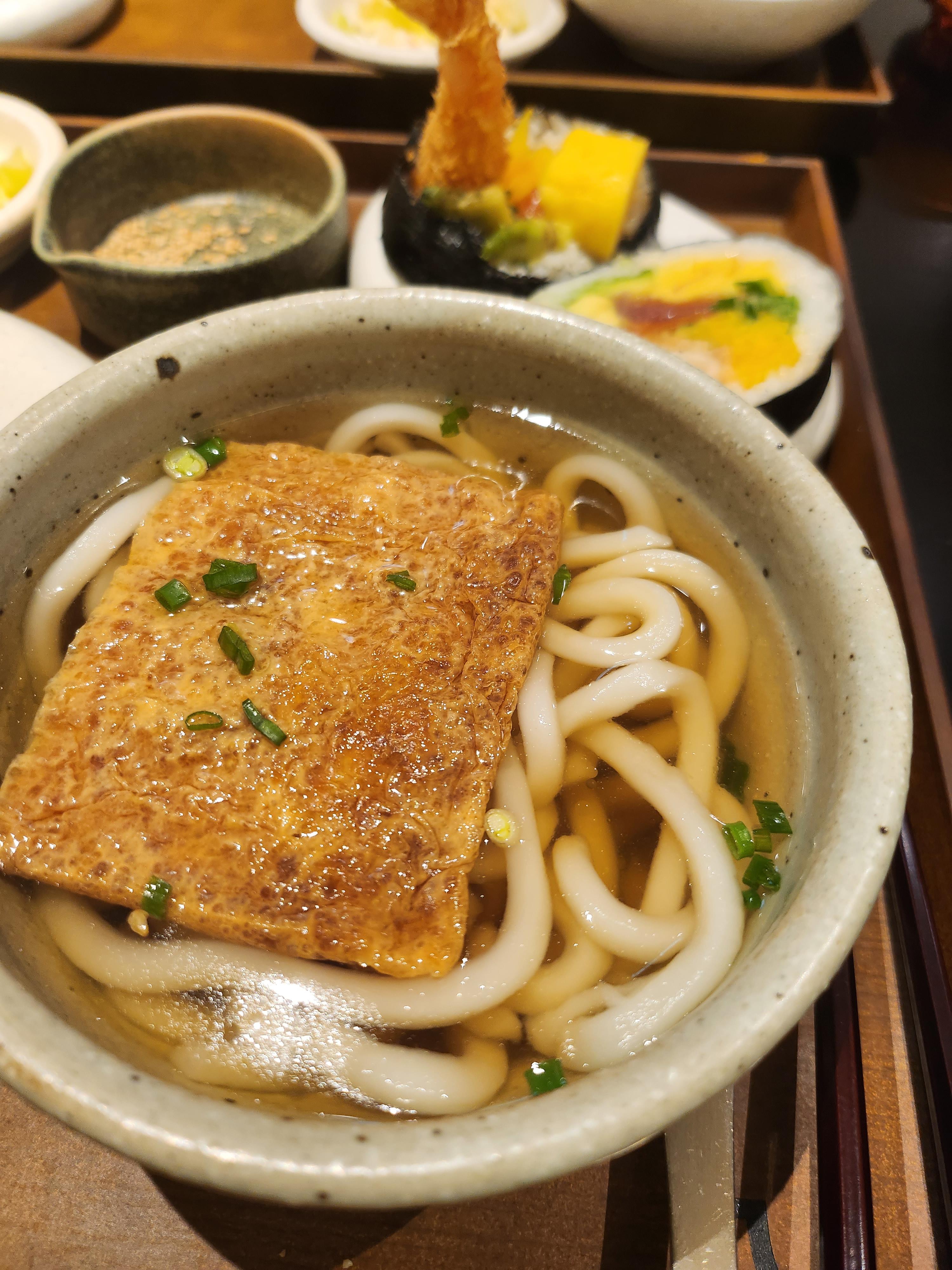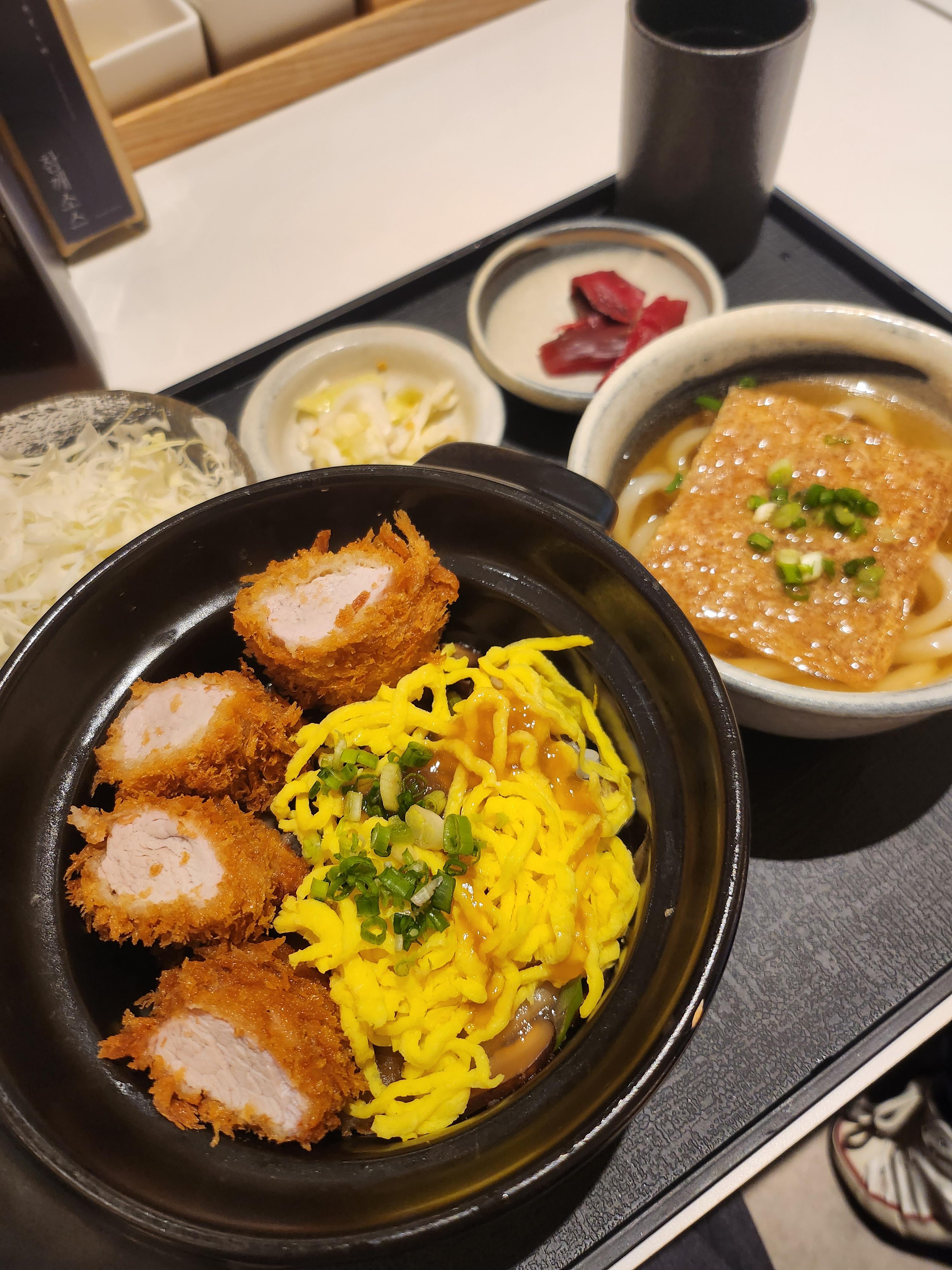 음. 맛있습니다. 저는 일식 특유의 슴슴하고 깔끔한 맛보다는 조금 더 짭짜름한 편을 선호하는 편이라 당일에 그닥 당기는 메뉴가 아니었음에도 안심카츠동과, 함께 나온 유부우동은 입맛에 딱 맞았습니다. 함께 먹던 동료가 작년 팀회식 장소였던 돈가스 전문점과 비교했을 때 더 맛있는 것 같다며 칭찬했어요. 깨끗하고 단정한 느낌의 내부와 식기류까지 먹는 맛의 완성도를 보태준 듯 합니다.