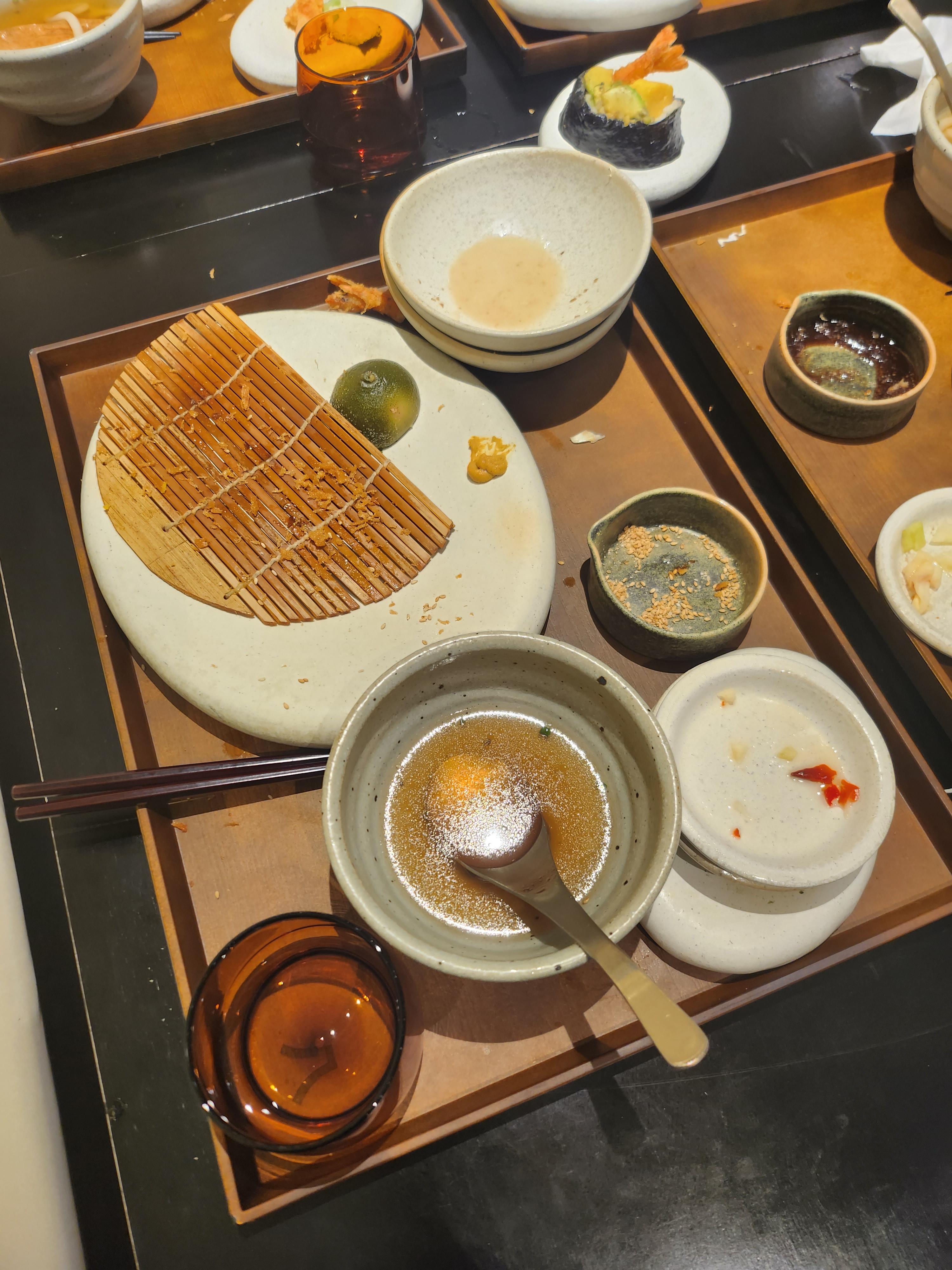깔끔하게 단체로 다 먹어버리기. 저는 진짜로, 안심카츠동 양이 너무 많아서 동료들에게 나눠주고 바닥 보이게 하는 데 집중했습니다. 일식이 원래 배부른 포만감을 선사하는 요리류는 아닌데. 진짜 양 많습니다. 아주 만족스러움!