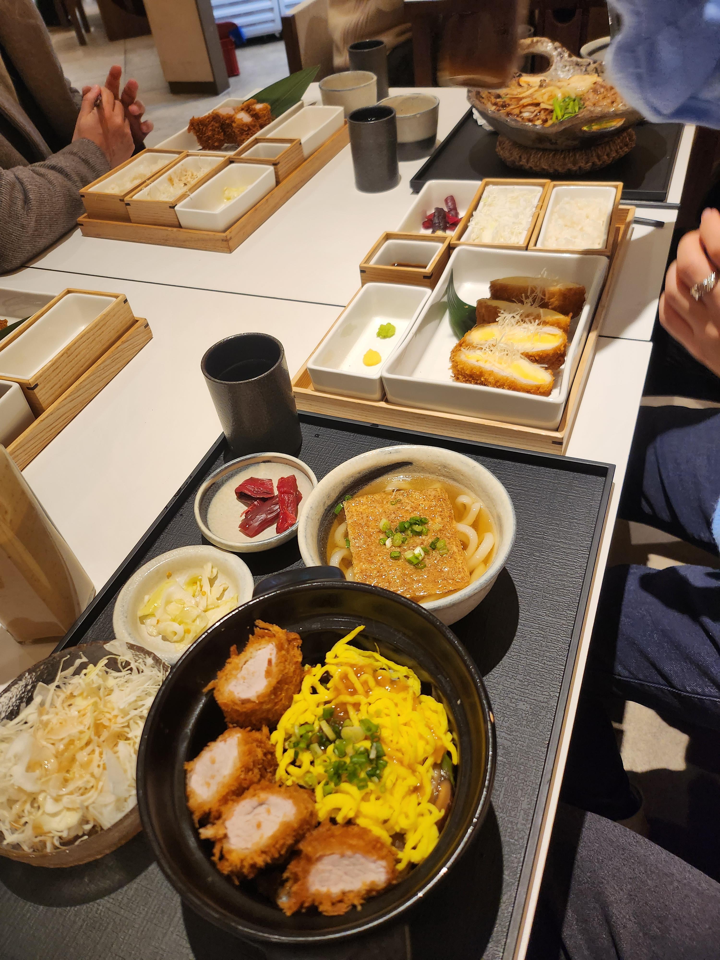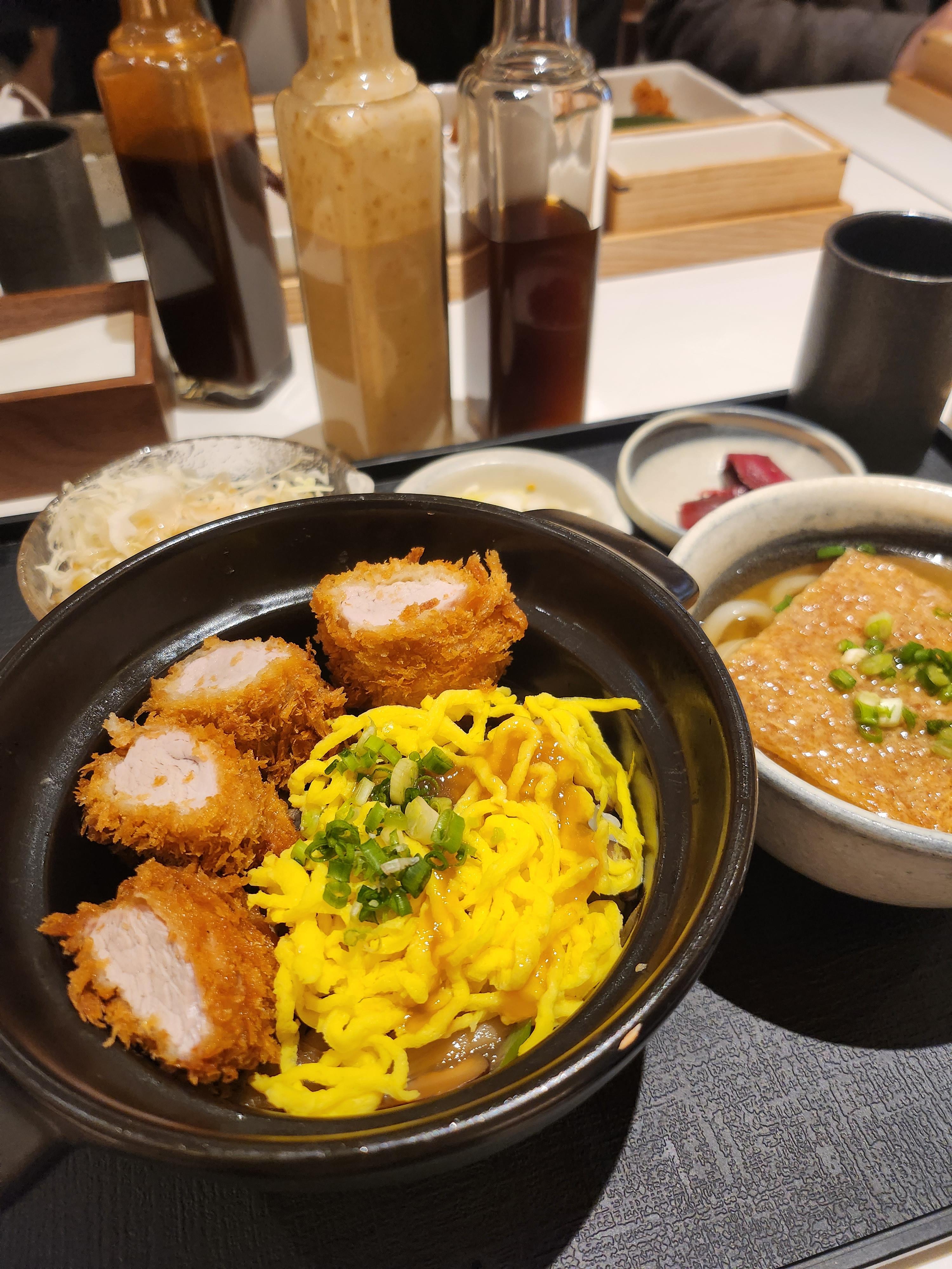 음. 맛있습니다. 저는 일식 특유의 슴슴하고 깔끔한 맛보다는 조금 더 짭짜름한 편을 선호하는 편이라 당일에 그닥 당기는 메뉴가 아니었음에도 안심카츠동과, 함께 나온 유부우동은 입맛에 딱 맞았습니다. 함께 먹던 동료가 작년 팀회식 장소였던 돈가스 전문점과 비교했을 때 더 맛있는 것 같다며 칭찬했어요. 깨끗하고 단정한 느낌의 내부와 식기류까지 먹는 맛의 완성도를 보태준 듯 합니다.