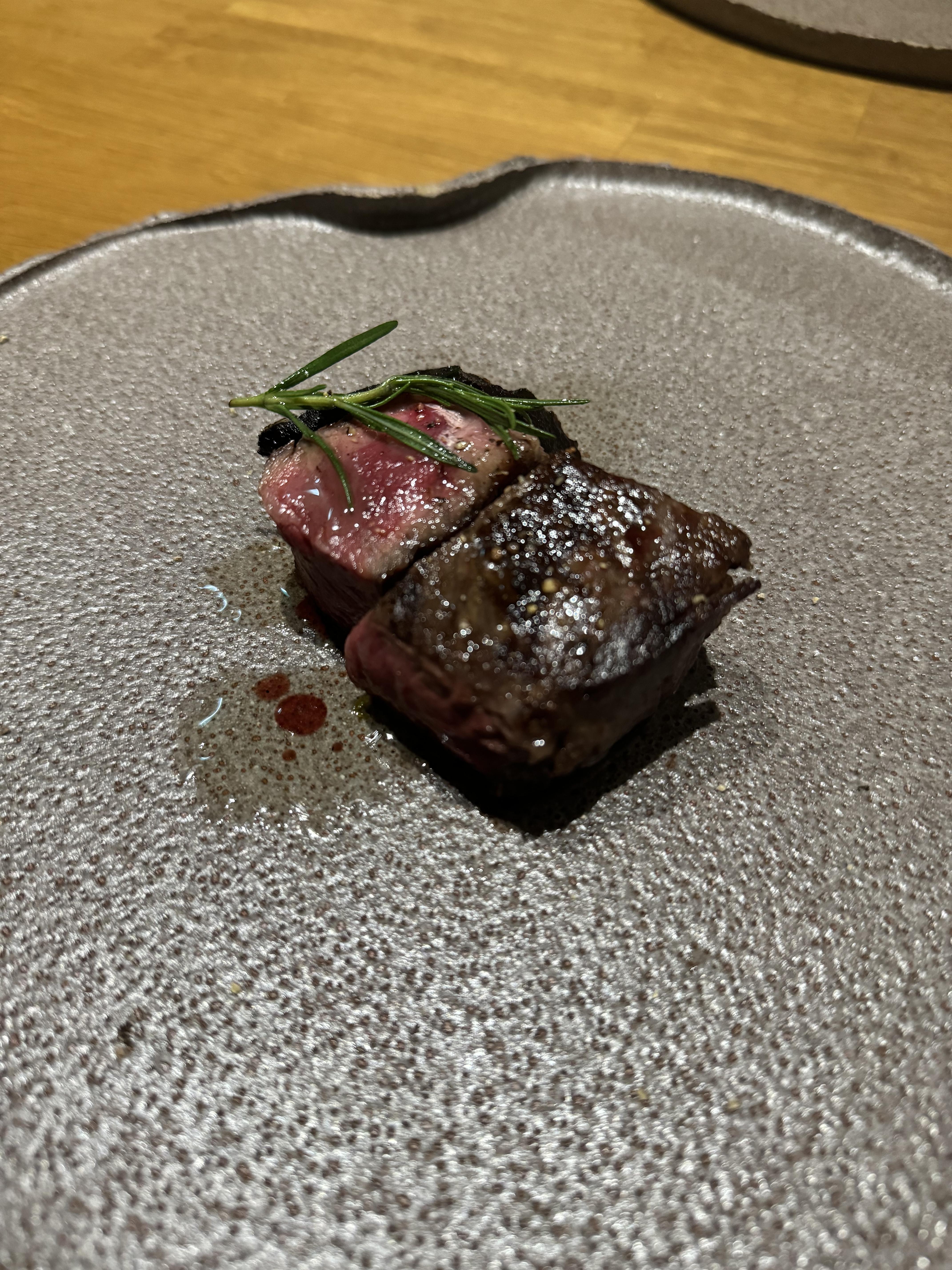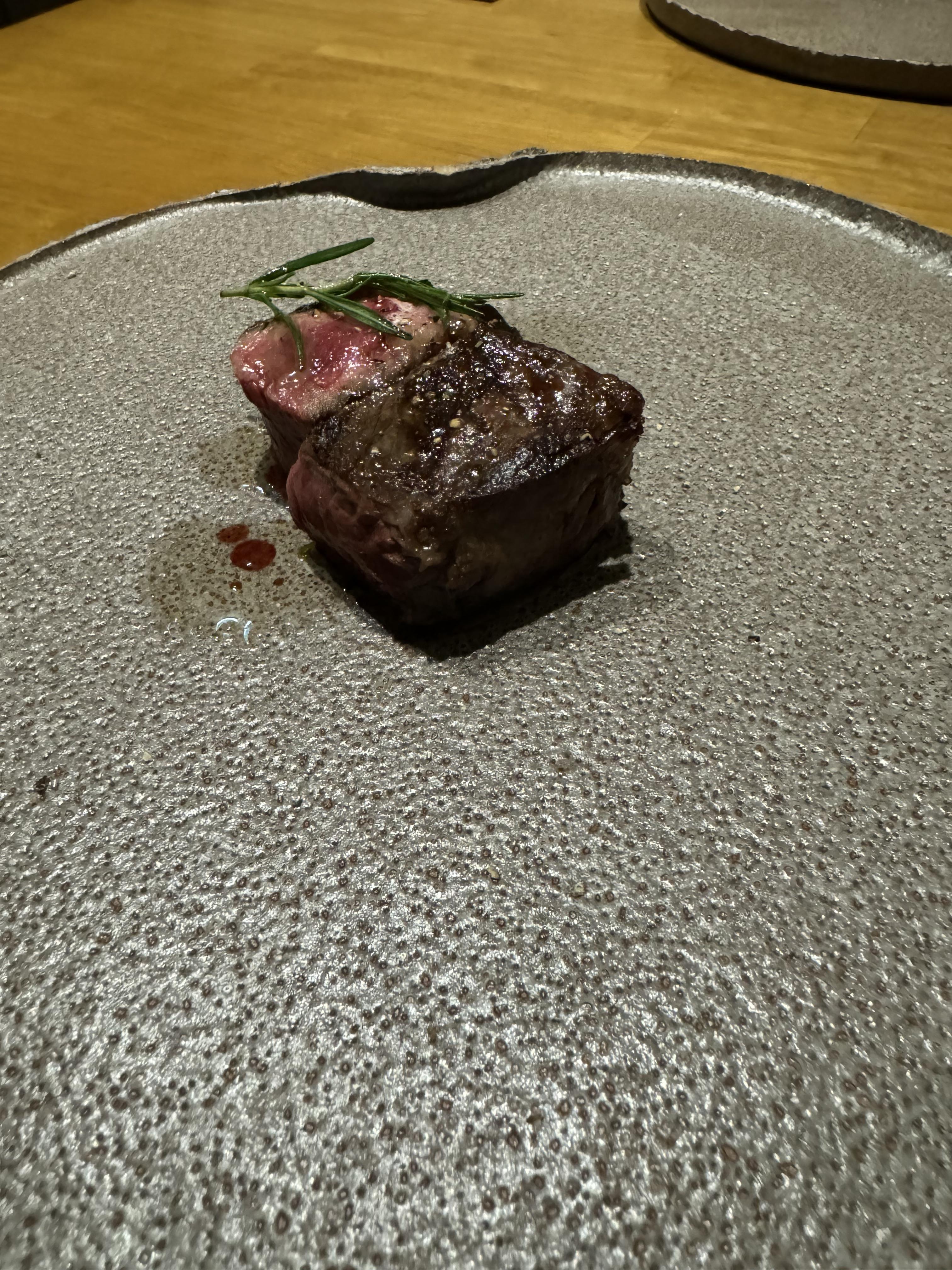 확대컷도 있지롱! 저 조그만한 스테이크로 배가 부르냐 하시겠지만 원래 이딸리안 레스토랑 같은데서는 미식을 즐기는 거잖아요. 그리고, 앞서 봤던 질 좋은 나이프로 잘라 먹으면 그닥 적은 양도 아니었다고 하네요. 아무래도 고기 본연의 질감과 맛을 극대화해서 가장 최적화된 맛을 구현하는 곳이다보니 믿고 먹으면 그대로 존맛탱구리겠죠.