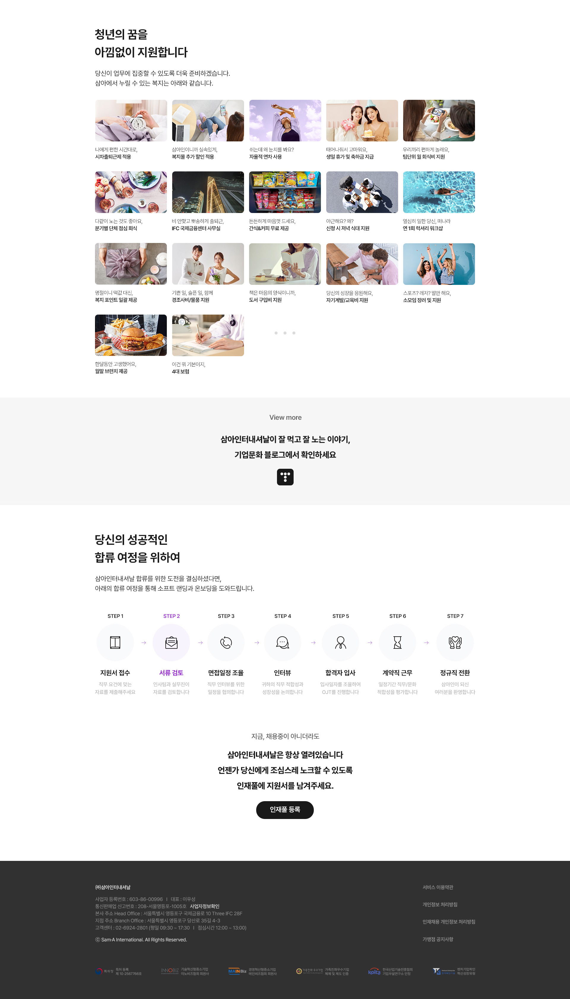 기업 홈페이지를 리뉴얼하는 일은 쉽지 않습니다. 그럴싸한 이미지와 키워드로 단순 리뉴얼은 할 수 있죠. 디자인 대행 외주사에 맡긴 경우라면요. 저희가 운용하고 있는 일부 사업군은 폐쇄형인지라 모두가 방문하고 인지할 수 있는 공식 홈페이지는 내년과 내후년, 더 많게는 향후 10년의 목표를 공식화하는 장이어야 한다고 생각했고 무엇보다 접근의 장벽을 낮추는데 주안점을 뒀습니다. 함께 살펴보신 여러분의 평은 어떠신가요? 삼아인터내셔날의 2024년은 어떤 일들이 펼쳐질까요?