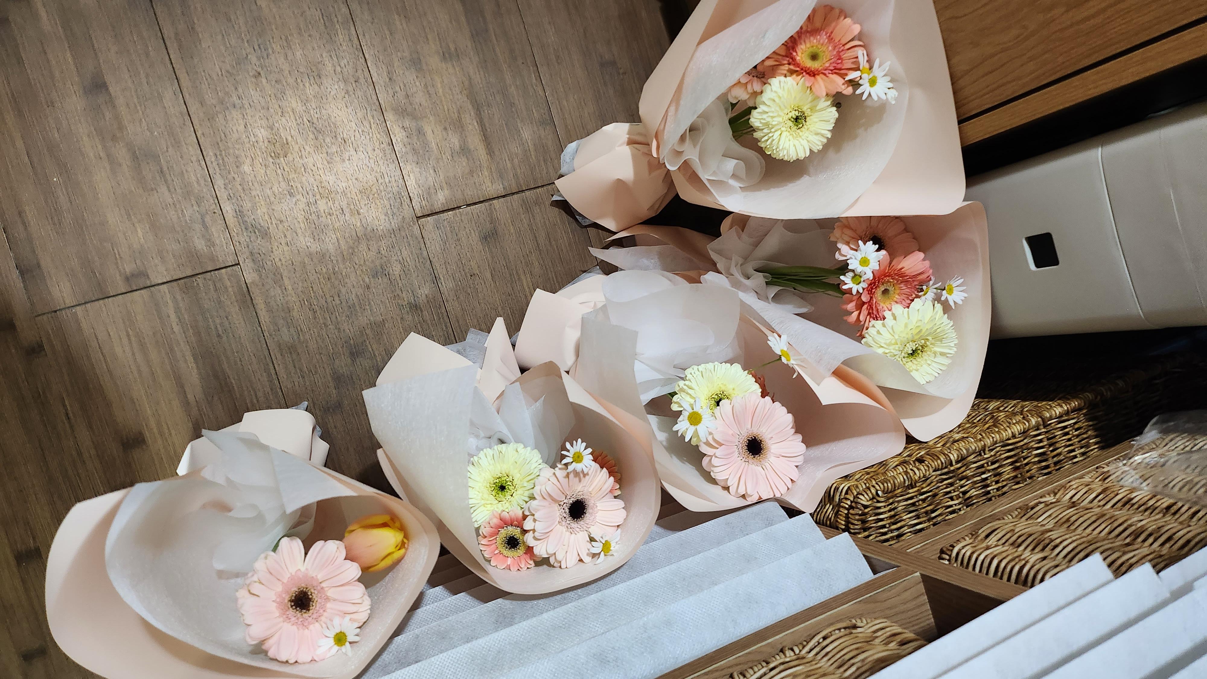 그러니 저의 인스타그램에도 종종 꽃에 관한 피드가 뜨지 않았겠어요? 그리고 어느 날, 저렇게 예쁜 꽃다발을 보고 마음이 동했습니다. 아, 오랜만에 꽃시장엘 가야겠다. 마침 팀원 중에 생일인 사람도 있고 축하할 일이 있으니 몇 송이는 집에 꽂아다두고 몇 송이는 꽃다발로 만들어서 선물해야지! 라는, 또 어마어마한 일을 벌이는 나란 女.