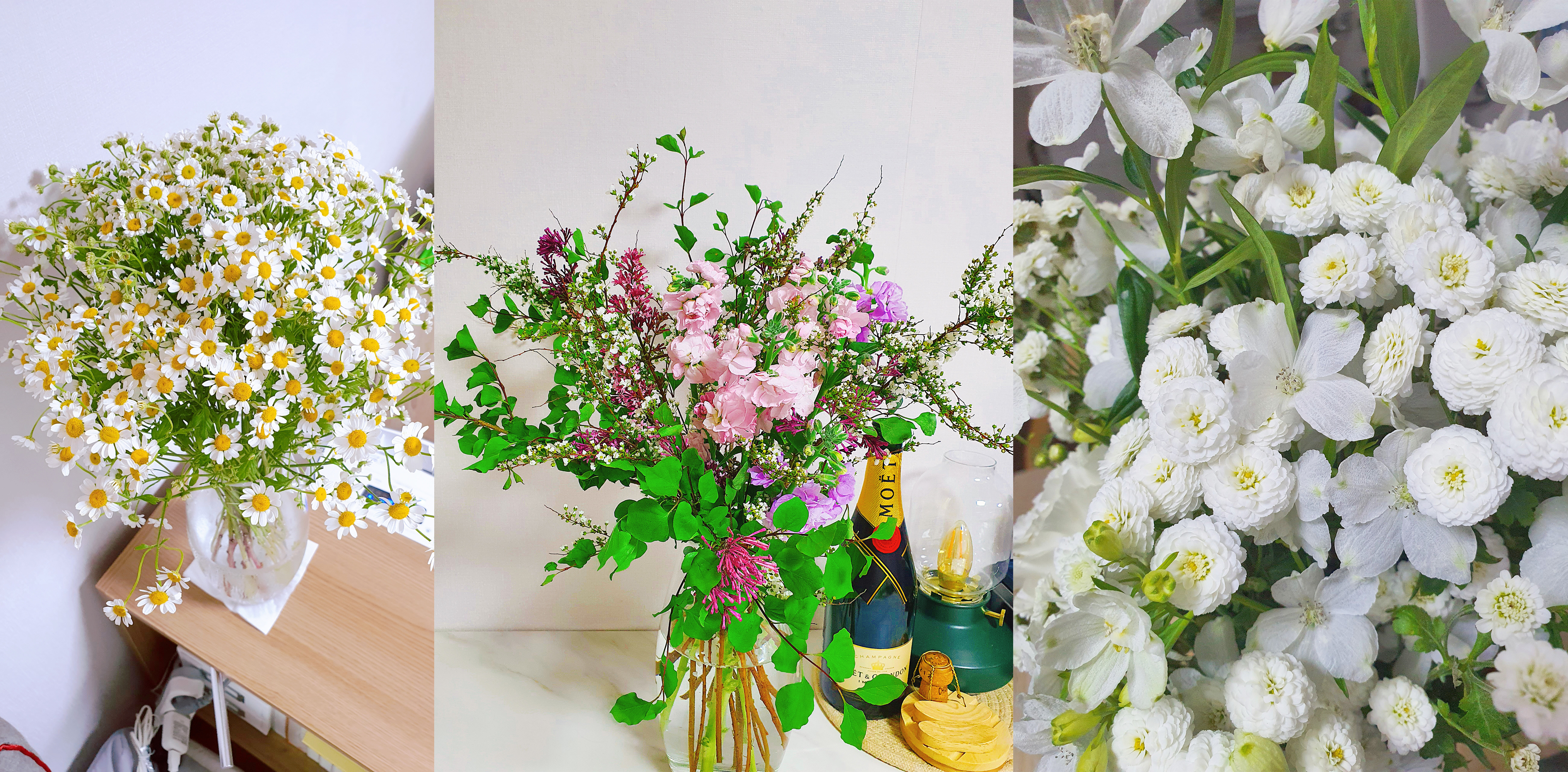 저는 꽃을 좋아합니다. 하지만 완성된 꽃다발을 사는 건 별로 안좋아하고요. 서울에서 자취를 시작할 때부터 종종 꽃시장에서 꽃을 사와 화병에 꽃꽂이를 해두는 걸 나름의 인테리어라고 생각했어요. 물론 요즘은 하우스 재배가 많긴 하지만, 계절마다 다달이 주력 꽃이 바뀌면서 꽃시장의 분위기가 바뀌는 것도 근사한 일이고 늦은 밤부터 이른 새벽까지 활기를 띄는 시장 상인들의 활기도 신선하더라구요. '꽃, 그거 시드는 거 뭐하러 사냐'는 사람도 많지만 축하하는 자리, 애도하는 자리에 꽃이 빠지지 않는 이유는 꽃 한송이를 피우기 위해 식물이 모든 전력을 쏟는다는 점과, 꽃을 구매함으로써 사람이 꽃의 가장 아름다운 찰나를 가져볼 수 있다는 점 때문이 아닐까 생각합니다. 그래서 저는 물멍도 불멍도 아닌 꽃멍을 즐기곤 하죠.