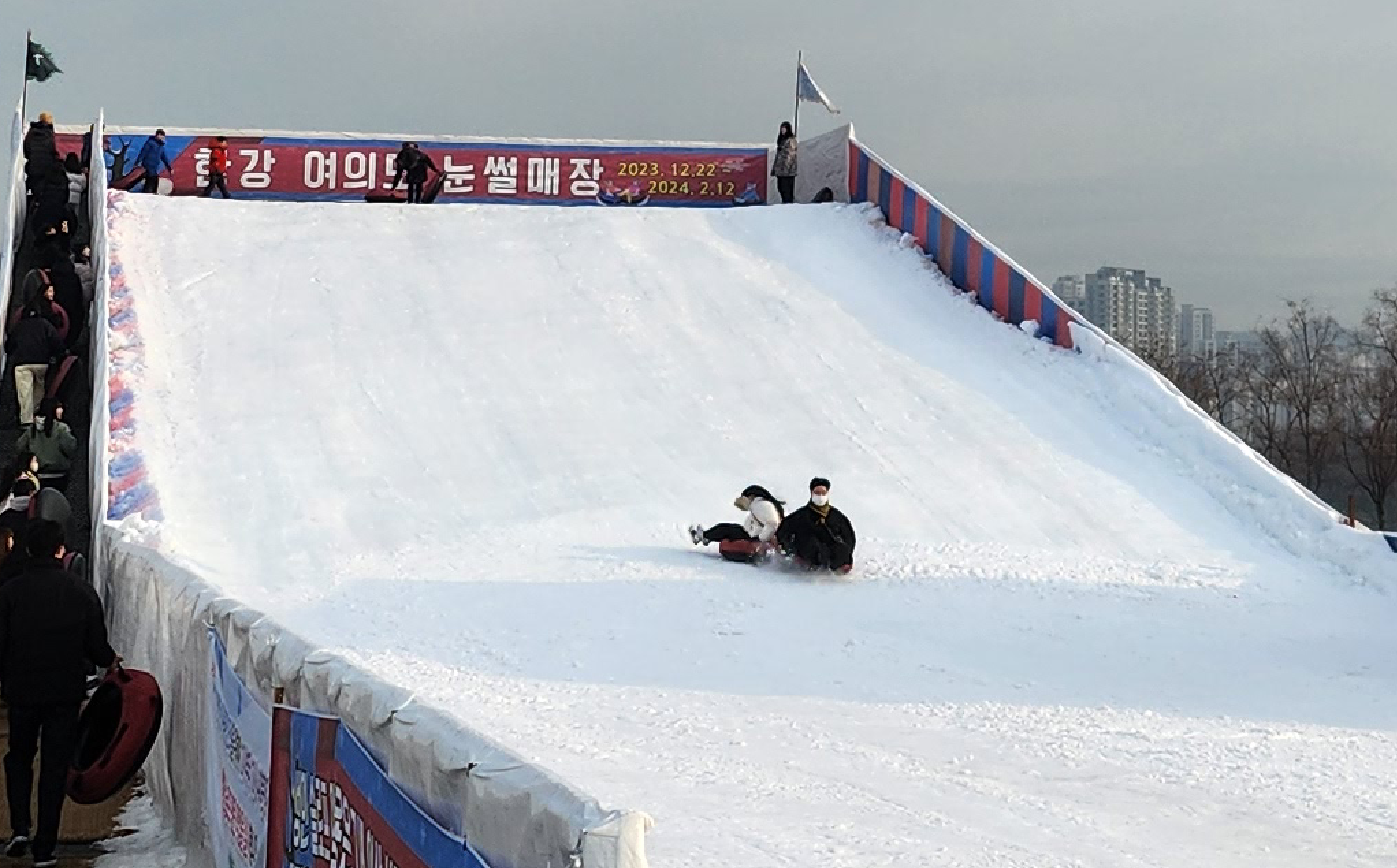 어느 날 부턴가 저희 회사 사무실 창 밖으로 이색적인 풍경이 보이기 시작했습니다. 여의도한강공원 수영장이 있던 곳에 눈썰매장이 개장한 건데요. 하얀 슬로프가 어찌나 매력적이던지, 저쪽 창가에 위치한 회의실에서 미팅을 진행하거나 회의를 진행한 동료들이 전부 '눈썰매장 가고 싶어요'라고 얘기하더라고요. 처음엔 그냥 하는 말인줄 알았더랬습니다. 하지만 삼아인터내셔날은 하고 싶은 게 있으면 꼭 해봐야 직성이 풀리는 회사 아니겠습니까. 봄에는 벚꽃놀이를 가니, 겨울엔 눈썰매장을 가보자고 대표님께 건의드렸더니 흔쾌히 좋다고 하셔서 결국 가게 되었습니다.