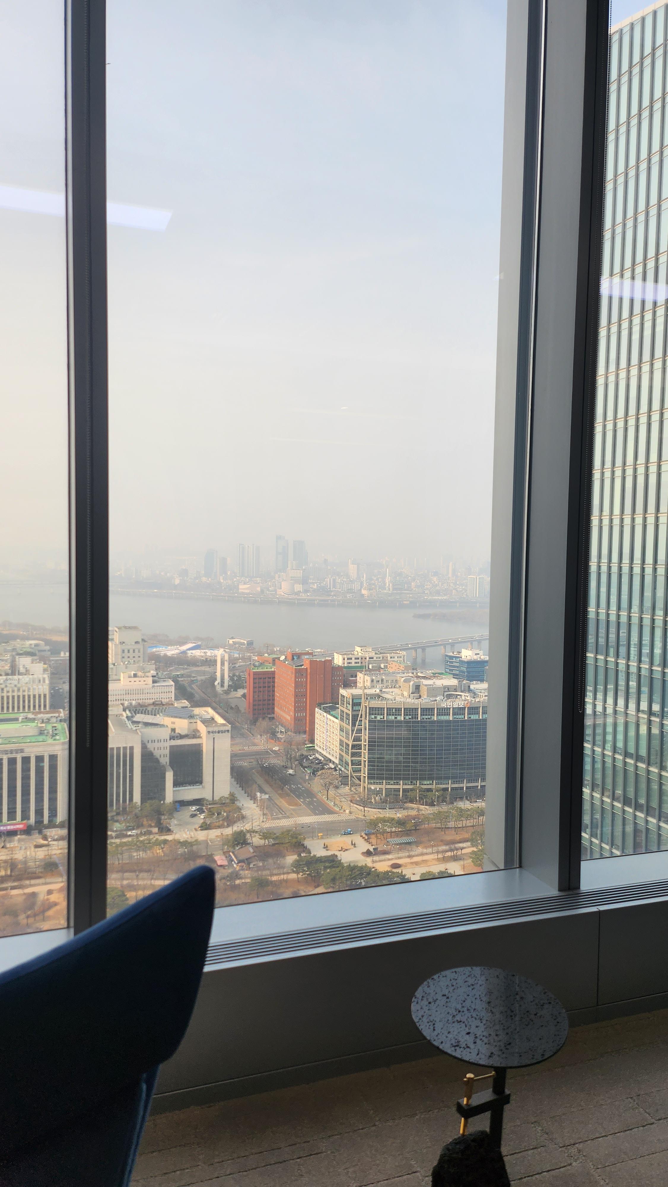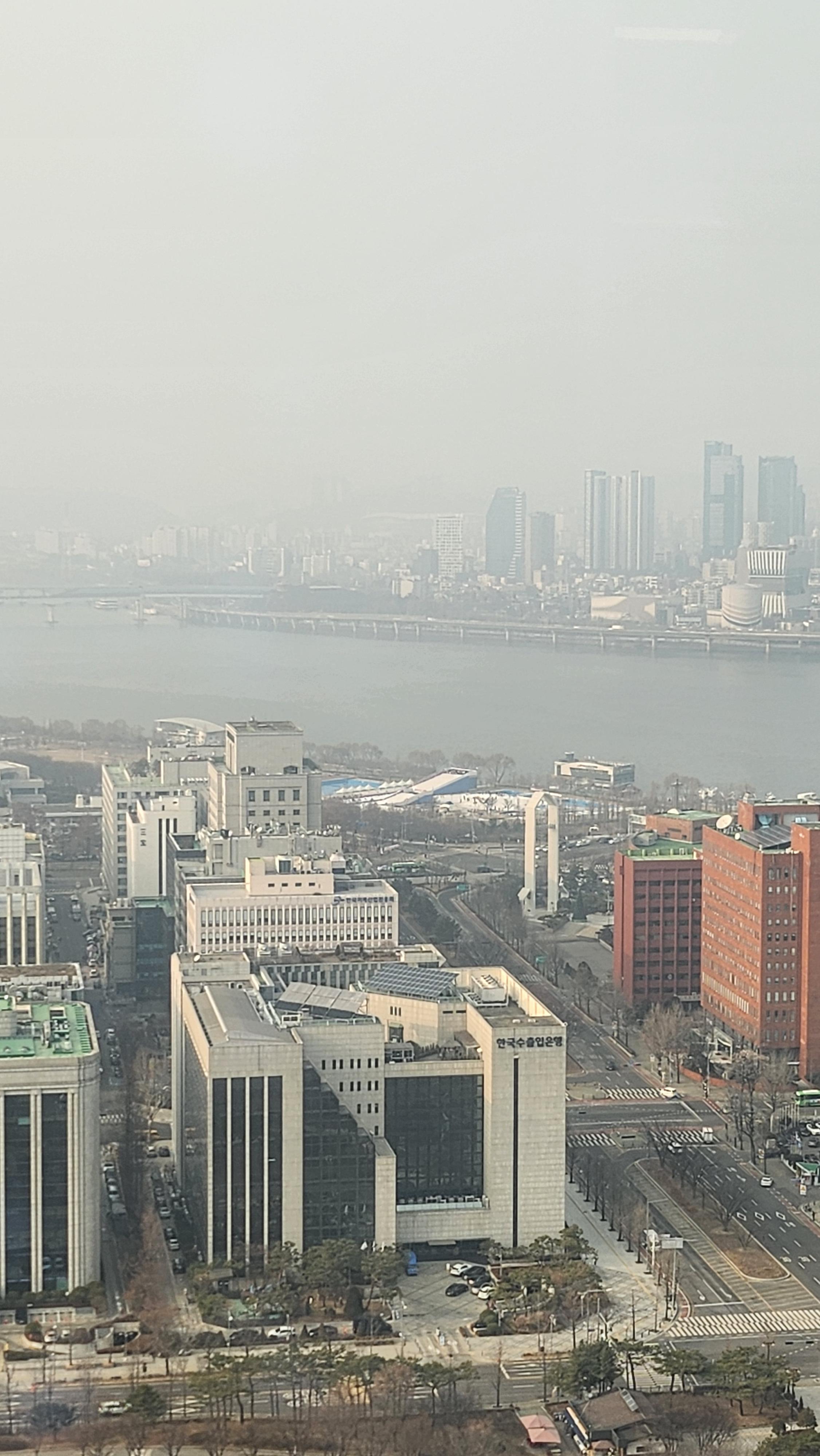 아직 몇 명 도착하지 않은 황량한 집결 장소. 왜 오픈런을 하게 되었냐고 물으시면 사연이 깁니다. 요리조리 시간 배치를 해보았지만 아무래도 복지플랫폼 사업엔 운영 시간이 중요하다보니 오늘을 단체 회식 일자로 정하면서 눈썰매도 같이 타기로 결정했었는데요. 오후시간대보다는 오전시간대에 빡세게 놀고 오는 것이 가장 낫겠다 싶어 대표님이 공식 출근 시간까지 미루는 결정력을 보여주셨습니다. 사실 IFC로 출근하는 것과, 눈썰매장으로 출근하는 건 개념이 많이 다르잖아요. 눈썰매장 폐장일자는 다가오는데, 도저히 일자를 재조정할 엄두가 나지 않으셨던건지 출근시간을 1시간 30분 미루고 눈썰매를 타고 오라는 지시에 응했습니다. 날이 흐리지만 미세먼지는 없는, 오전 9시 집결지의 풍경입니다.