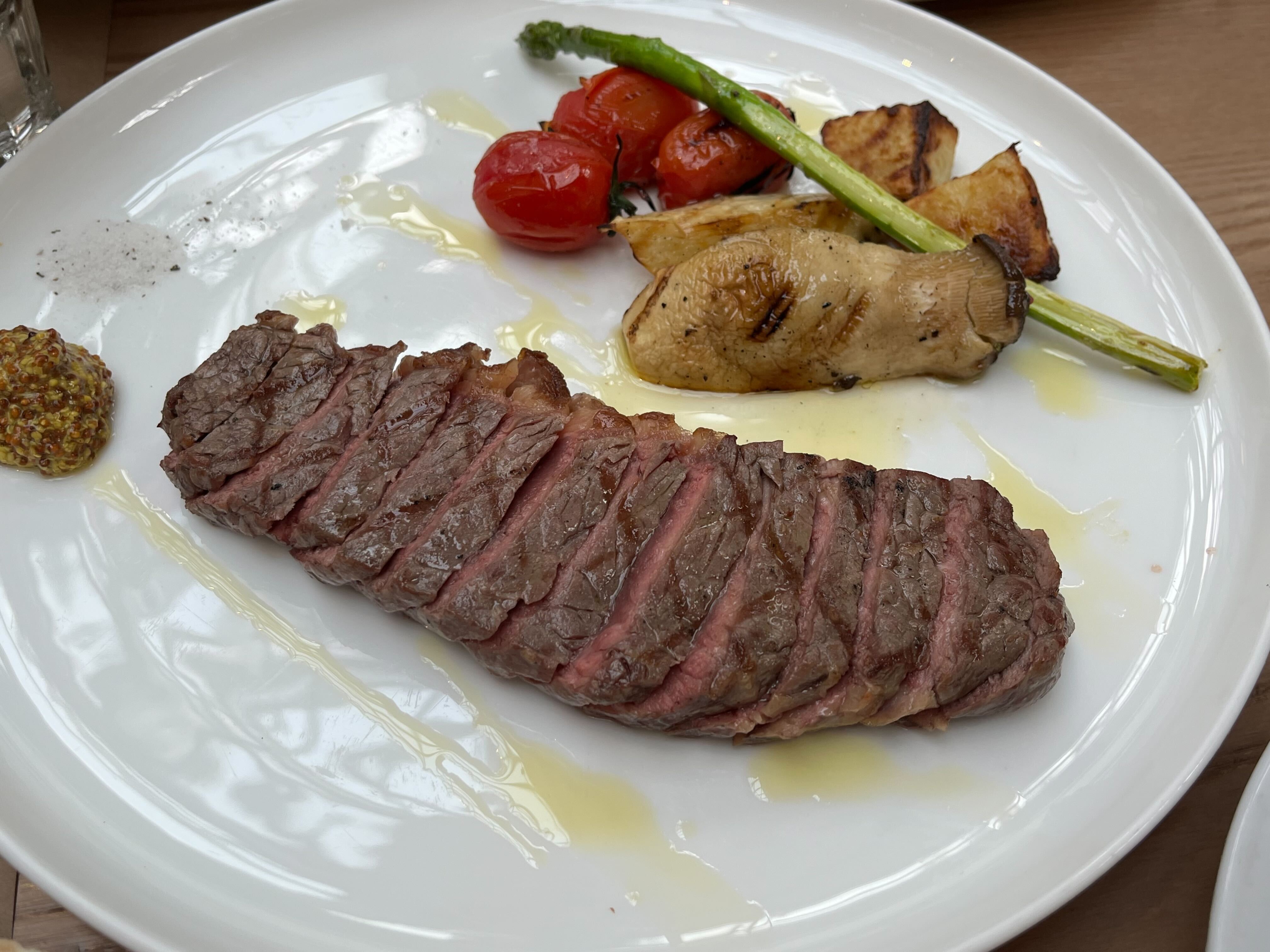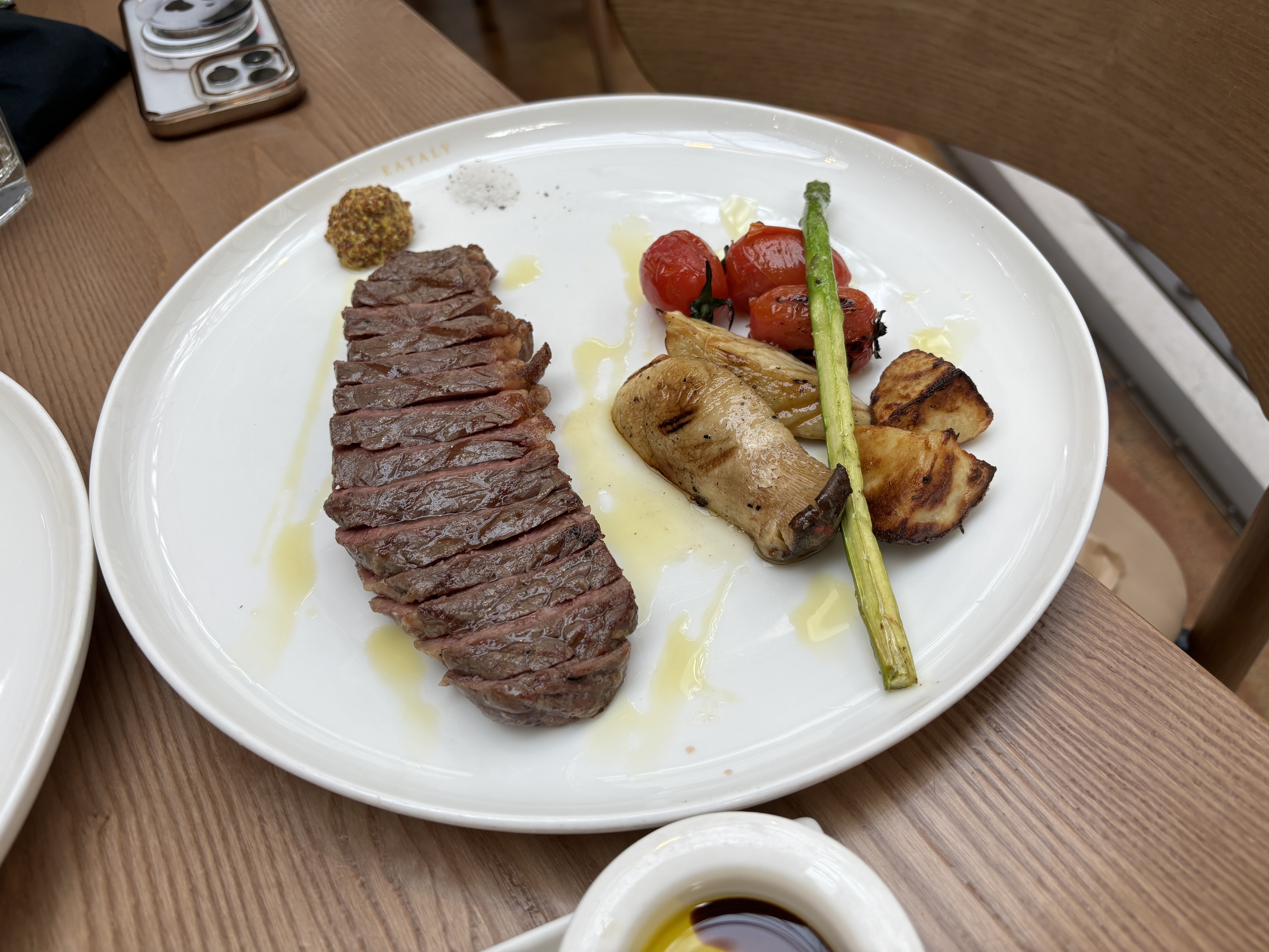 피날레 메뉴로 등심 스테이크(Tagliata)가 나왔습니다. 굽기는 우아한 미식가처럼 미디움 레어로 주문했어요. 야들야들 알맞게 구워진 것이 사진으로 봐도 안심인지 등심인지 구분하기 힘들 정도네요. 피자에서 입맛이 확 살아난 상품기획팀 일동은 간도, 풍미도, 쫄깃함도 적당한 스테이크까지 싹 다 비웠다고 합니다. 이탈리에서 식사할 분들은 두가지 메뉴 잊지 않기로 해요. 오늘 좀 플렉스 하고 싶어도 나는 한국인이라면, 1. 트러플 피자 / 2. 등심 스케이크를 주문하는 걸로!