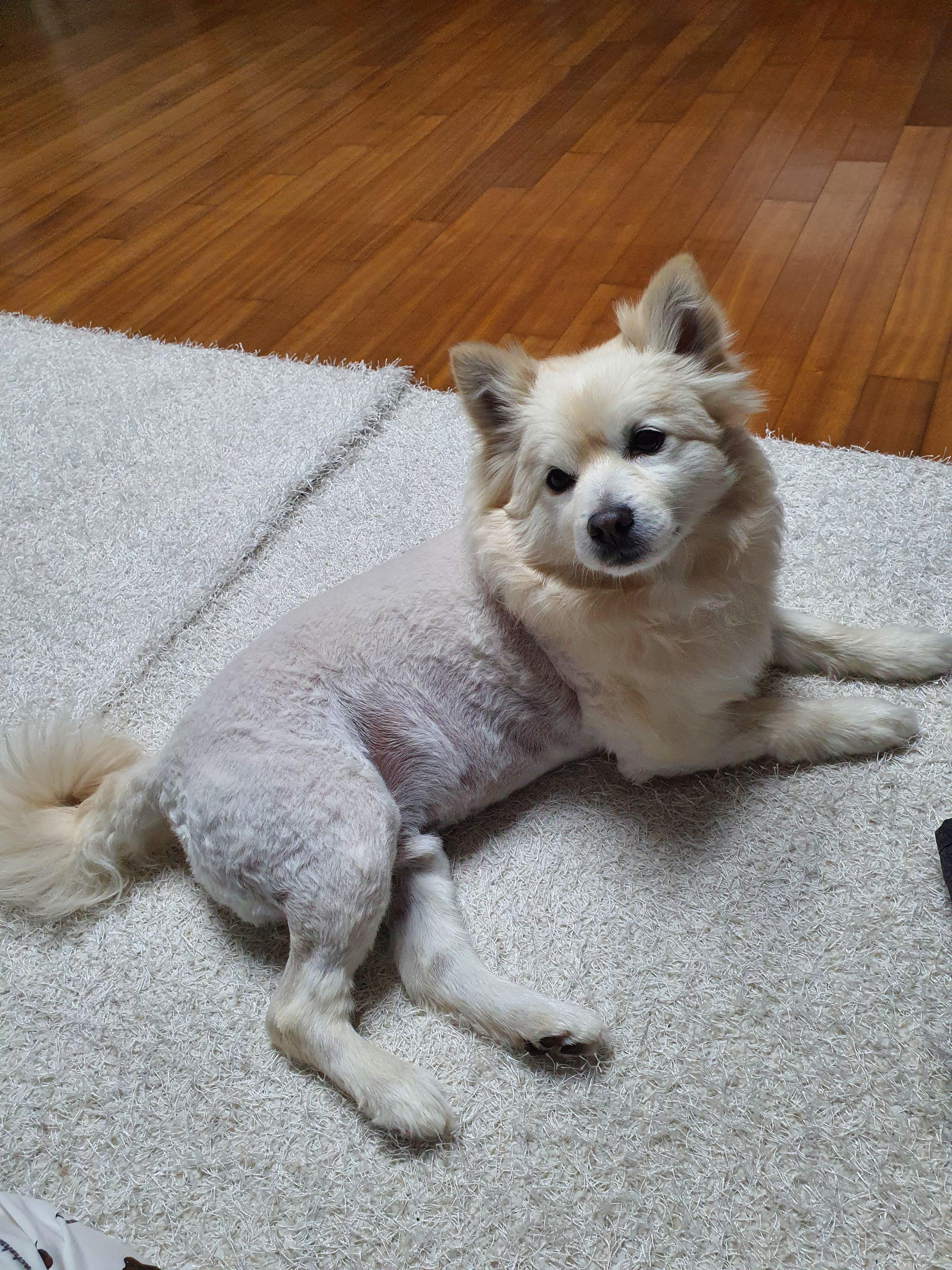 주인이 깎아주면 조금 덜 성질을 부릴까 싶어(샵에서 도저히 안되겠다고 전화온 게 여러 번이라) 깎았더니 절대 몸통 앞으로는 그 바리깡 대기만 해보라고 제 손을 물어서 열받아서 찍은 사진입니다. 저는 제 몸에서 손이 제일 귀하다고 생각하는 사람인데 물린 게 삼십 번이 넘어요. 근데 그럴만도 하겠다 싶은 게, 부모님이나 동생은 늘상 간식만 주는데 저는 양치며 발톱을 깎이는 거며 모두 제가 하니 제가 싫을... 수는 없는 거야. 부들부들...