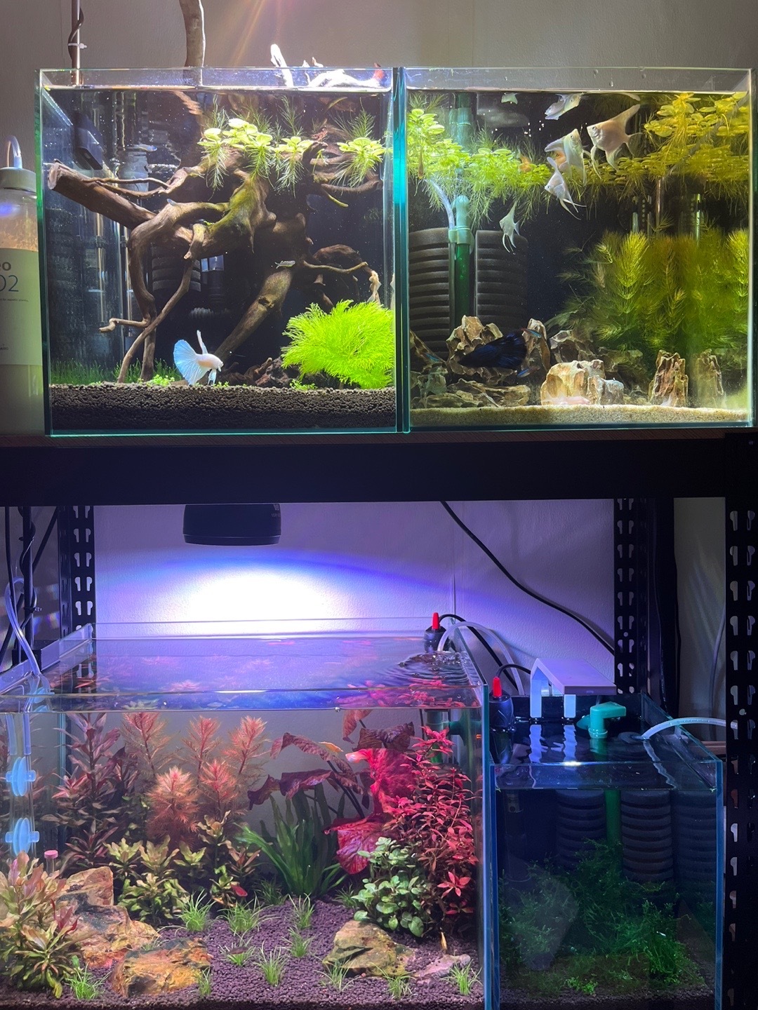 파충류 입양 전부터 키우던 반려 물고기들. 여기서부터 내가 키울 아이들을 위한 작은 생태계를 만들어주는 재미에 빠진 게 아닌가 싶어요. 저도 어렸을 때 물고기나 거북이를 키웠었는데, 저 수조 관리하는 게 진짜 빡세거든요. 대단해...