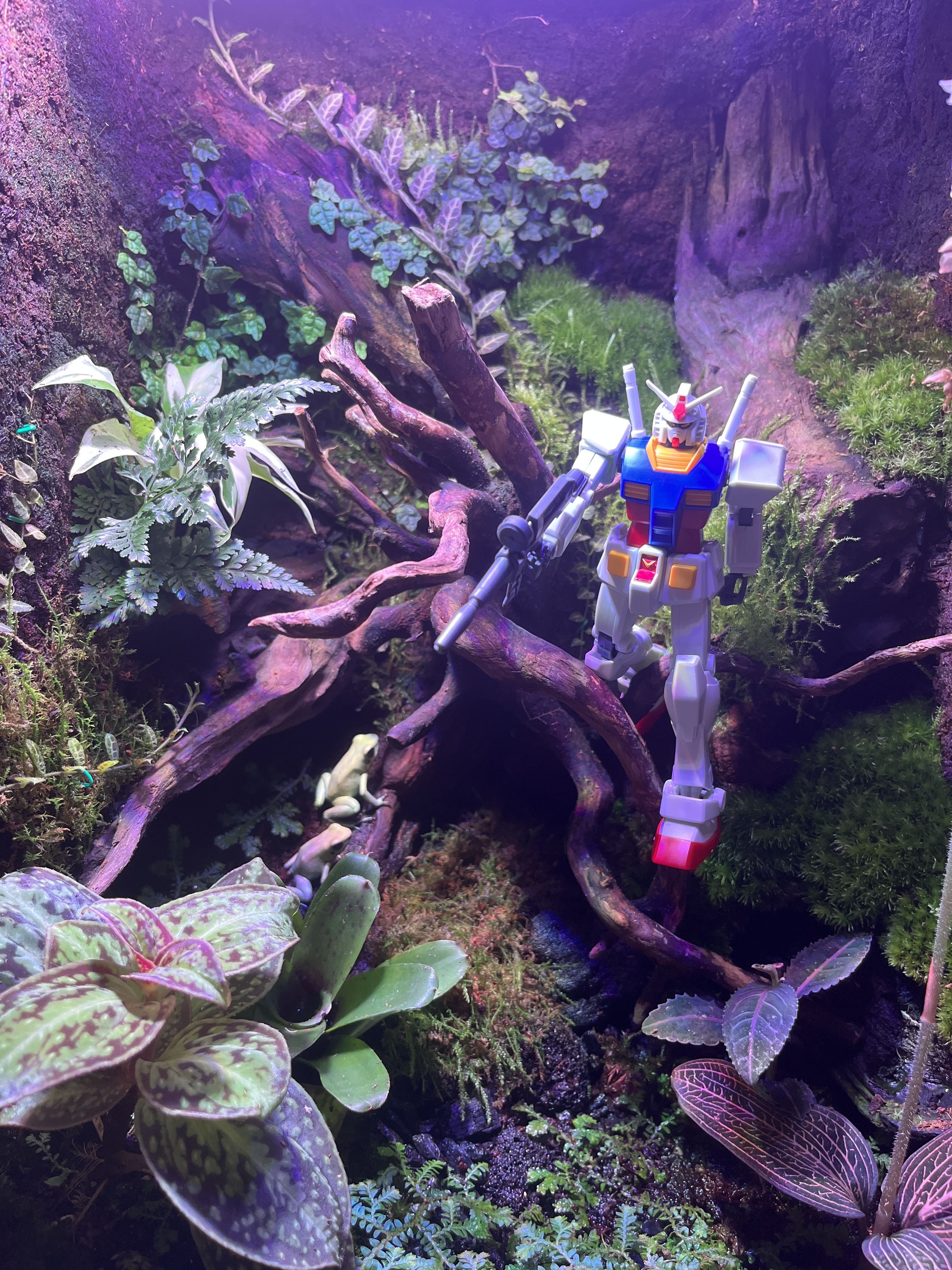 또 미안하다. 개구리 사진을 보냈길래 도마뱀 먹이인 줄 알았는데 다시 보니 키우는 거네요. 이름은 조금 큰 몸집이 케로로, 작은 몸집이 타마마. 여기저기 잘 숨다가도 배고프면 튀어나와 밥을 요구하는 귀요미들이랍니다. 자려고 불을 끄면 갑자기 뛰어다녀서 가끔 깜짝 놀랄 때도 있다고 해요. 농촌에서 봤던 아주 손톱만한 청개구리는 아니지만, 눈이 땡그란게 귀엽네요. 며칠 전 IFC에서 반다이남코 행사를 진행했는데 거기서 알차게 받아온 건담까지 아주 멋져요.