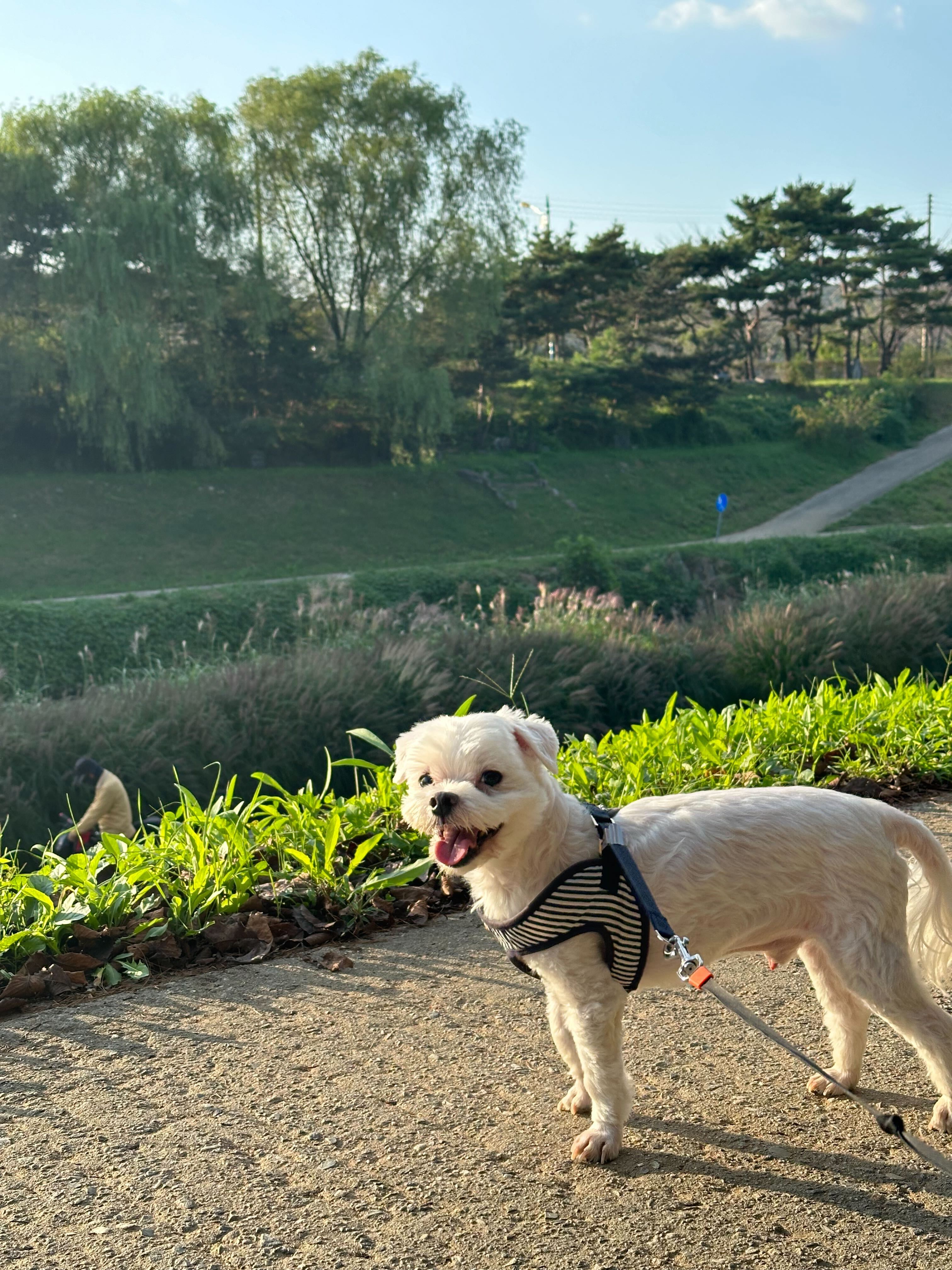 앞에서 다들 자랑만 했으니까 저도 자랑을 해야하는데 쉽지 않네요. 똥개처럼 보이지 않으려고 하네스에 몇십만원, 옷에 몇십만원을 썼지만 우리 집 개는 그런 거 몰라요^^ 그냥 맨날 짖고 맨날 지 멋대로 산책길을 만드는 그런 앱니다.
