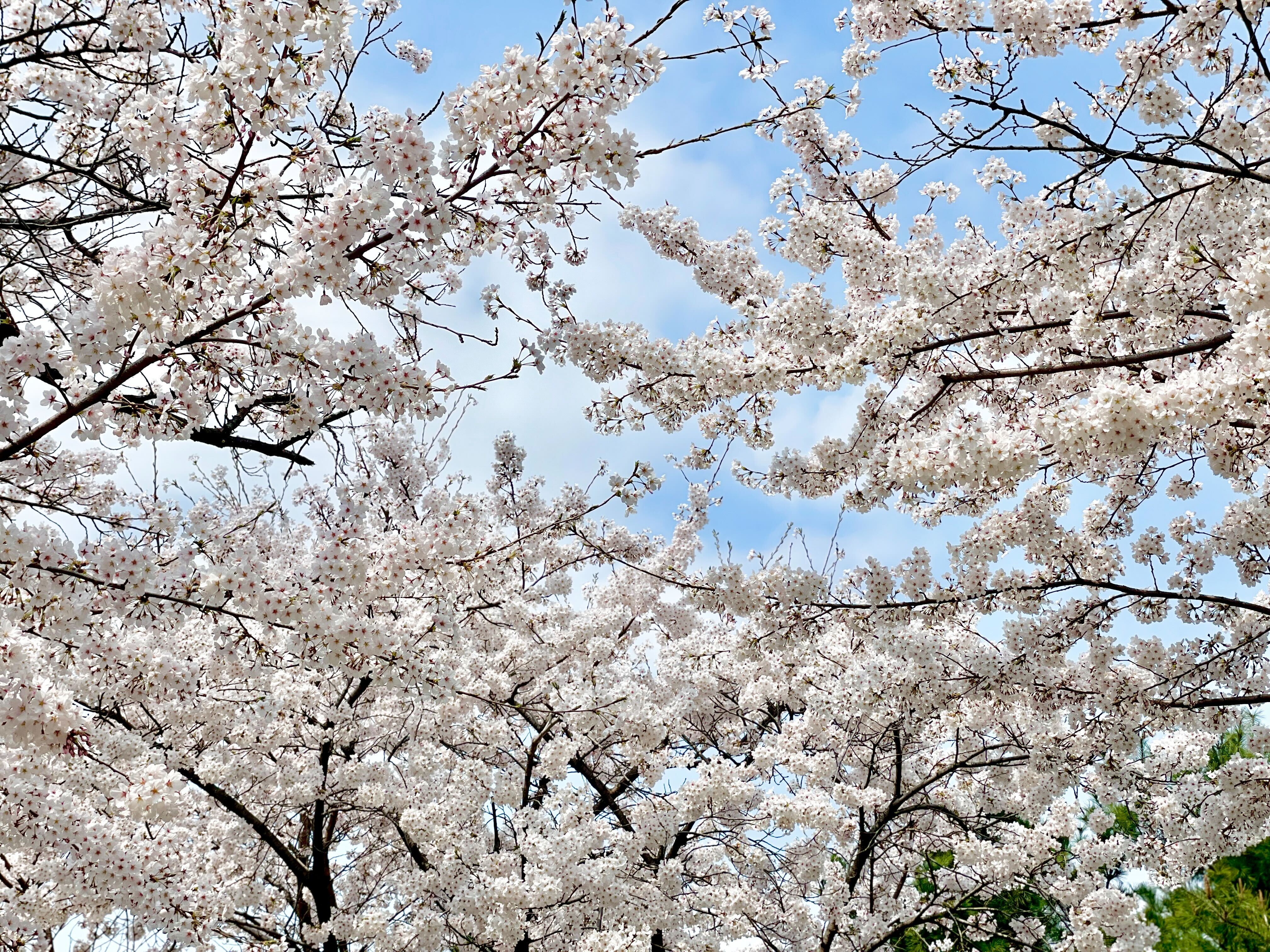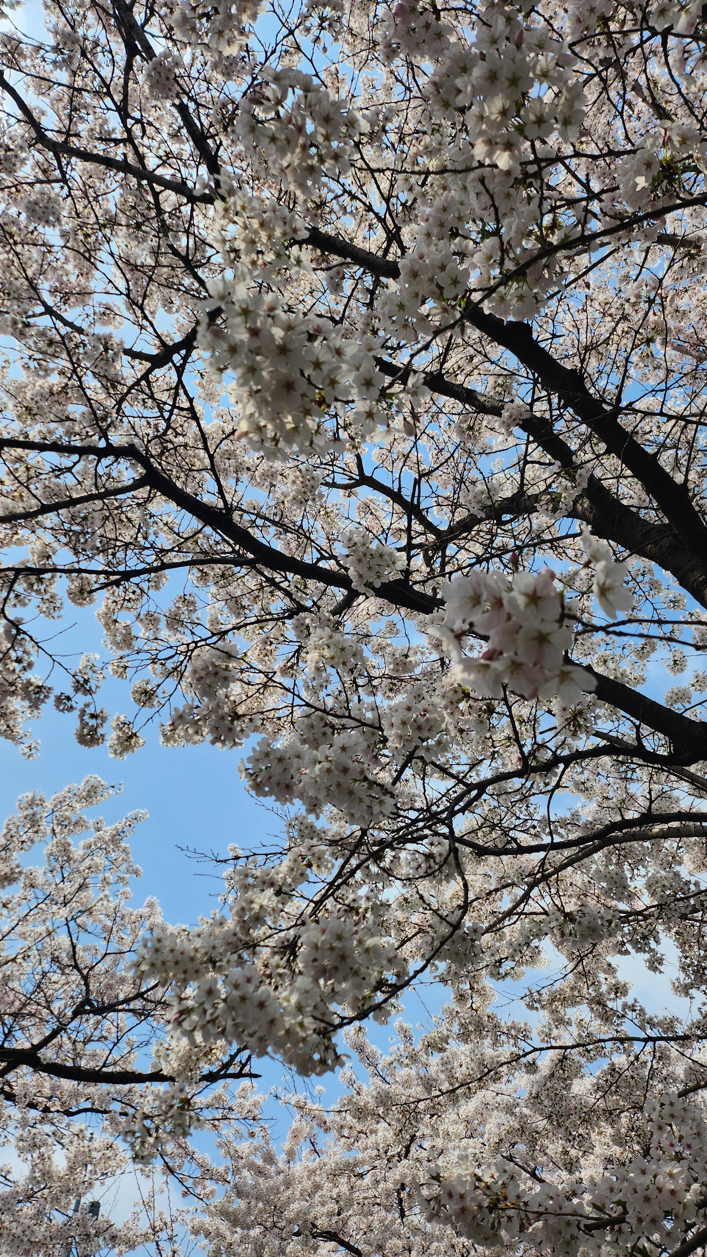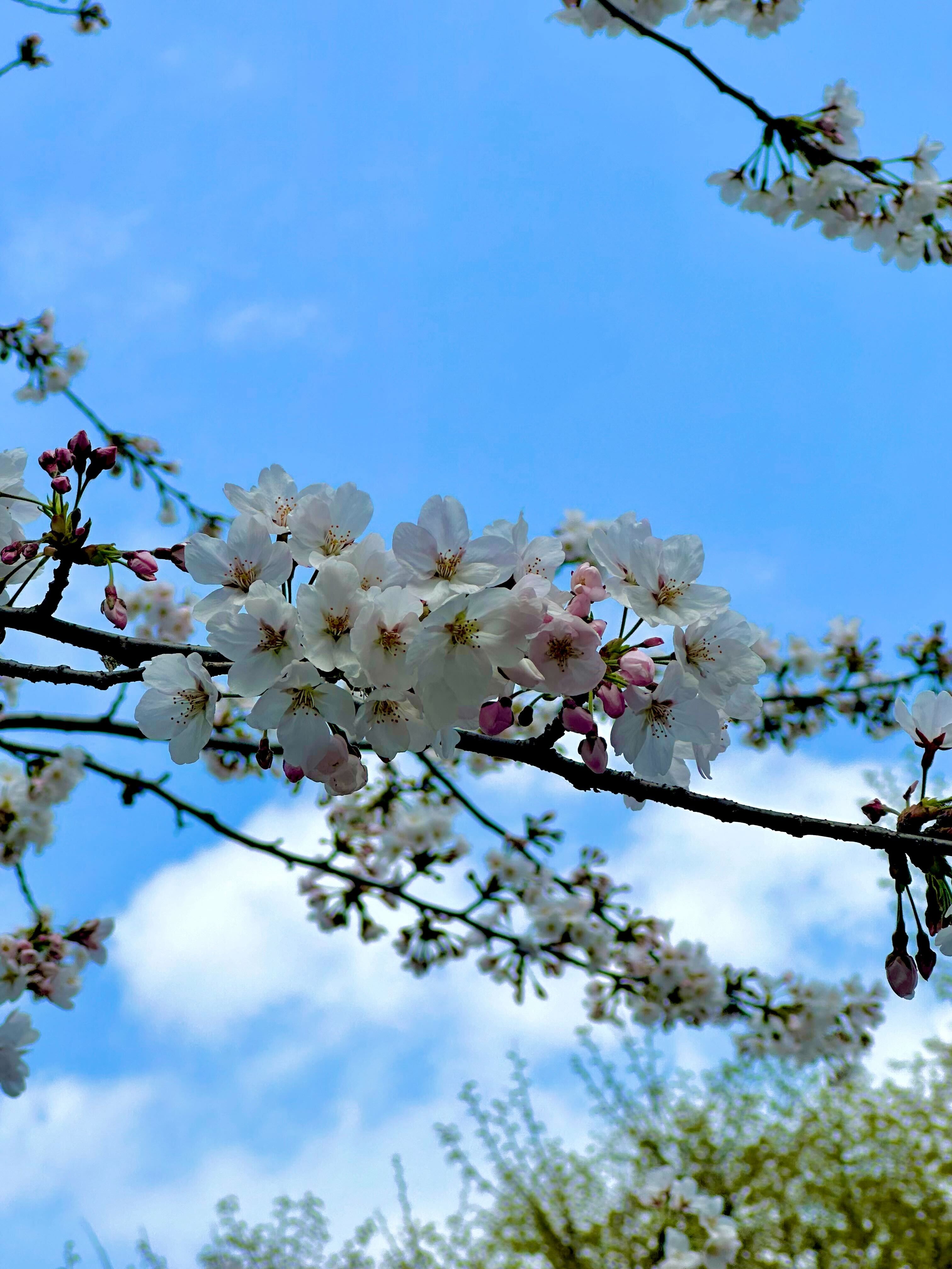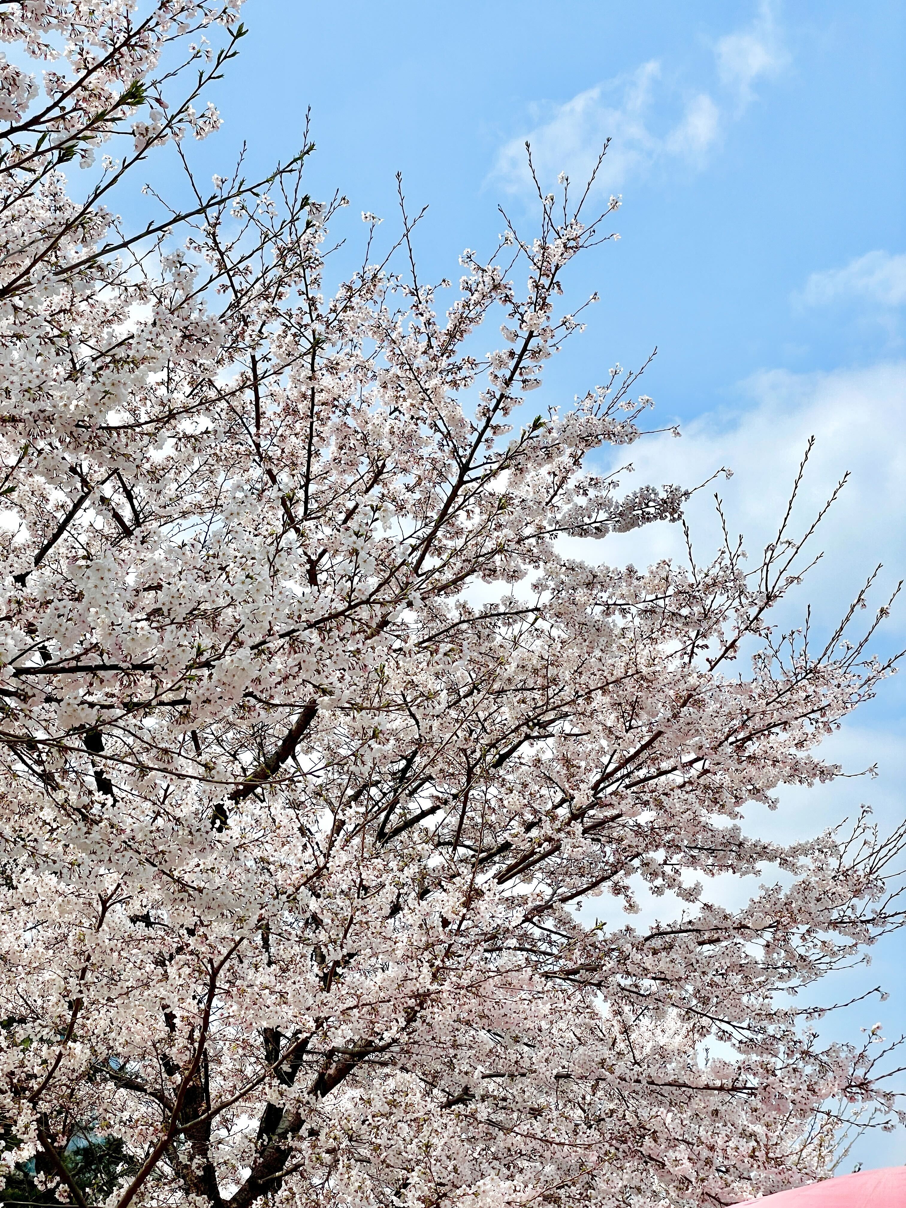 햇살도 좋고, 바람도 좋고, 공기도 훈훈해 걷는 게 하나도 힘들지 않았어요. 조금 더운가? 싶다가도 바람이 솔솔 불어와 땀을 식혀주었답니다. 어떤 벚꽃나무는 흰 꽃잎이, 어떤 벚꽃나무는 분홍색이 선명한 꽃잎으로 가득 차 보기만해도 황홀했어요. 점심시간이 지나자 조금 흐린 듯하던 하늘도 파란 빛을 보여주기 시작해 사진을 찍는 족족 전부 절경이었답니다.