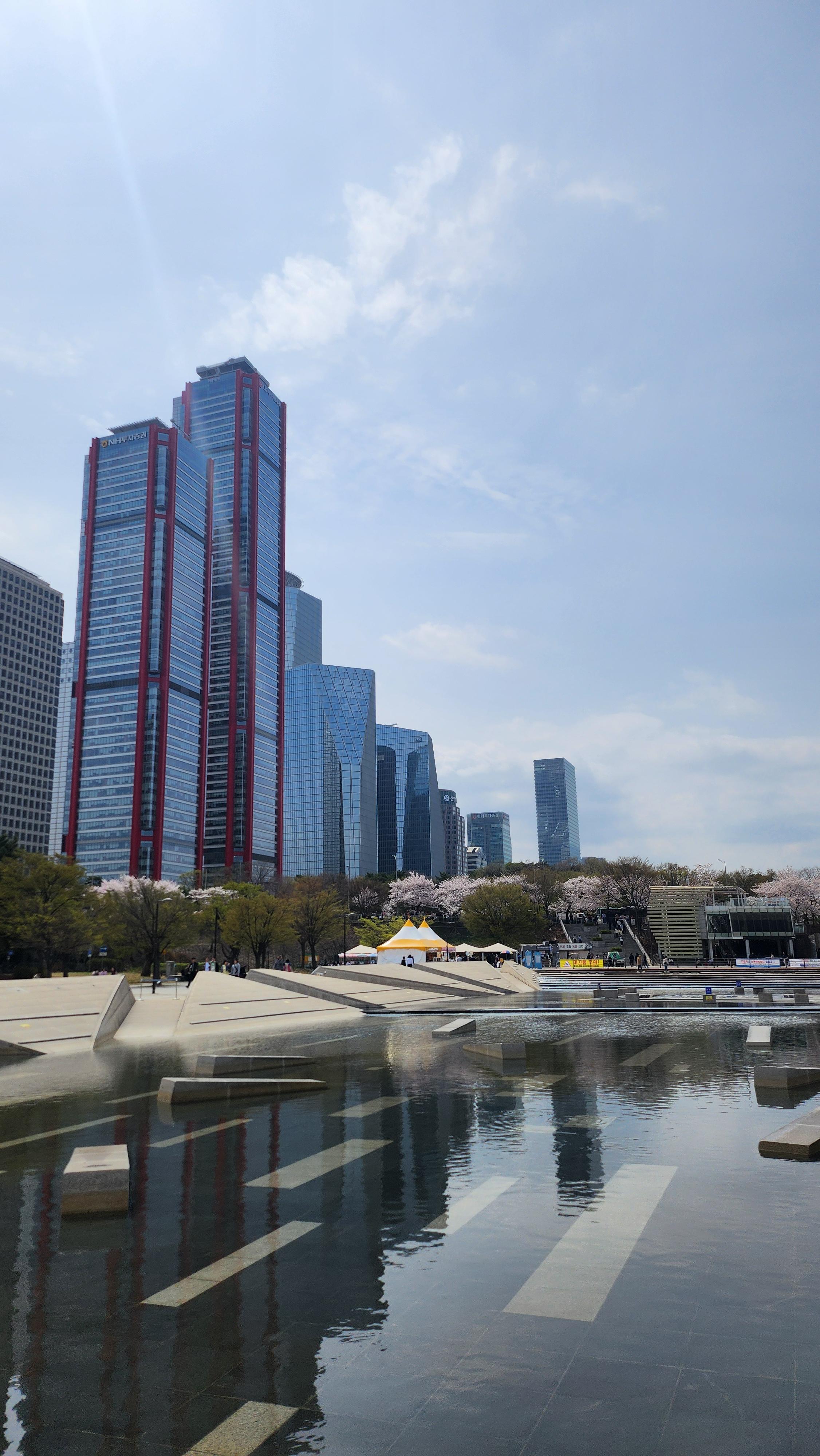 IFC에서 파크원 빌딩을 지나 LG 트윈타워로 쭉 한강공원을 향해 걷습니다. 날이 좋아진 덕인지 우르르 쏟아져나온 산책하는 직장인 무리와 합류해 1차 목적지를 마포대교로 정하고 노닥노닥 걸었습니다. 귓가에 자연스레 재생되는 봄바람 휘날리며흐어~ 흩날리는 벚꽃 잎히이이~ 울려 퍼질 이 거리히르흐으으을~ 둘이 걸어요~ 를 흥얼거리며 횡단보도를 건넙니다. (사실 저는 샤이니 팬이라 'View'가 가장 먼저 떠오르긴 했습니다. 그 노래가 진짜로 공감각의 정수 거든요! '향기의 무게를 느낀 것두~')