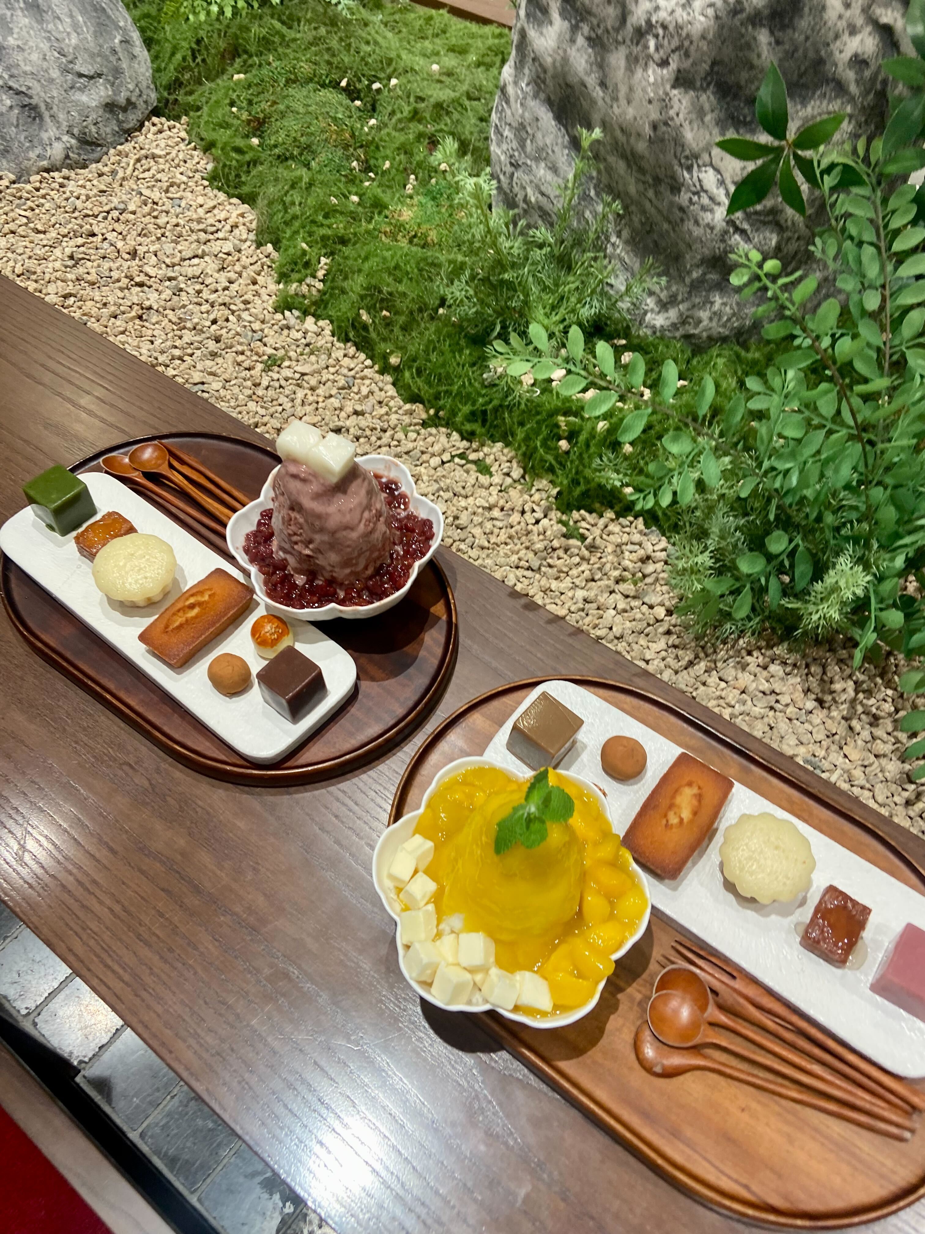 요즘 산더미불고기 같은 게 딱 저 빙수같은 모양으로 쌓아져 나오던데. 빙수는 2인이 먹기에 적당하다는 말이 있었지만 생각보다 푸짐했고, 팥도 적당히 푹 익은 게 부드러워 둘중 하나를 더 추천하기 애매하네요. 만약 두분이서 들를 예정이라면 취향에 따라 고르시고, 다음 번에 또 와서 다른 빙수를 드셔보세요! 저처럼 팥/망고빙수 둘 다 우열을 가리기 힘들다고 하실 거예요. 그리고 다음으로는 달디달고 달디단 밤양갱~과 팥양갱~과 오미자양갱~과 말차양갱~이 소담하게 놓인 한상세트를 건드려봅니다.