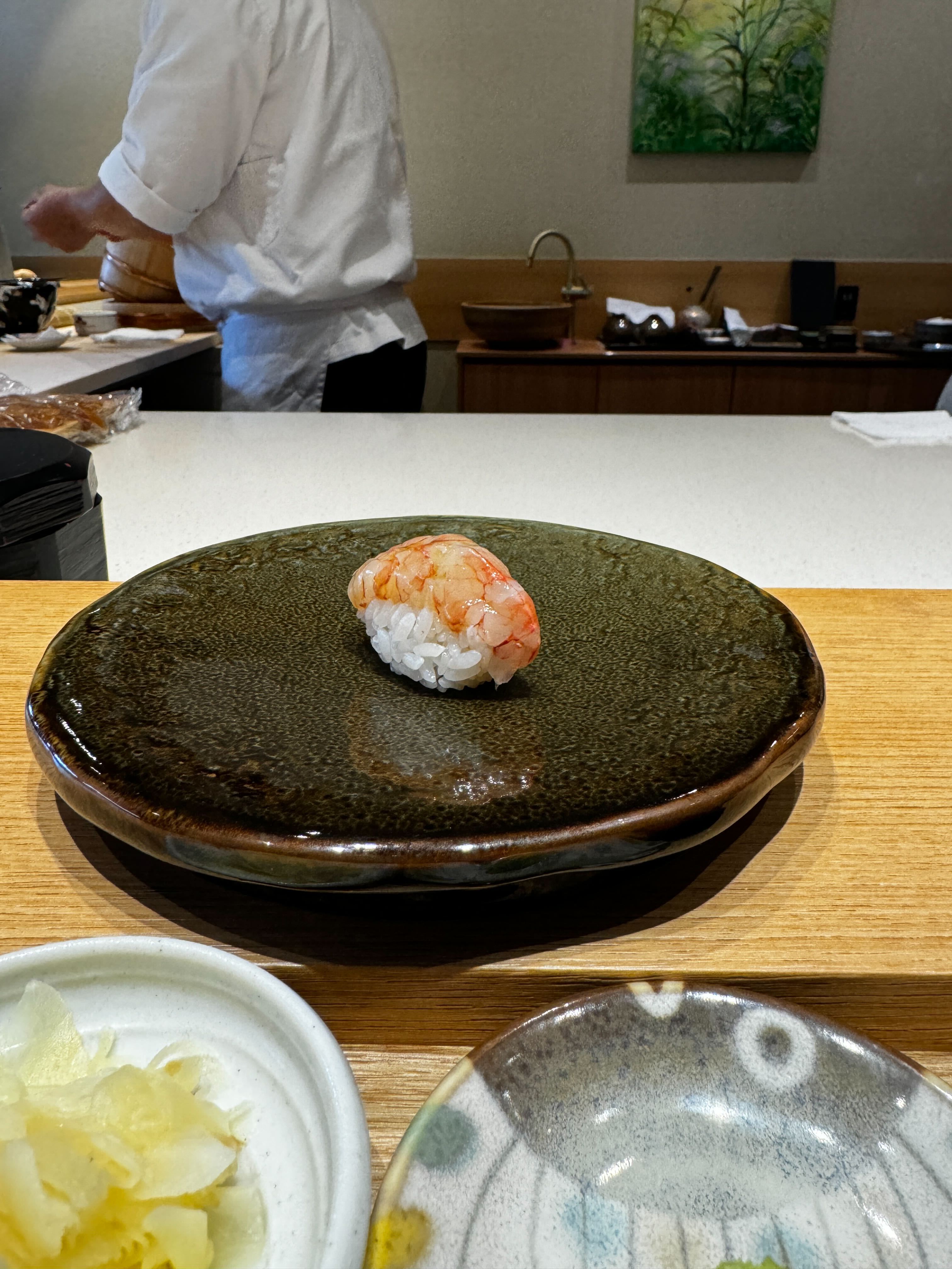 밥이 나와서 끝인 줄 알았죠? 아직 한참 남았습니다! 다시 시작된 스시의 향연! 달큼하게 입 안에서 사르르 녹아내리는 달마새우와 전갱이 대신 나온 잿방어 스시! 전갱이를 좋아하지 않는 저를 위해 초반부에 나왔던 잿방어를 다시 만나게 해주셨답니다. 마늘을 조금만 넣어 깔끔한 뒷맛이 인상적이었어요.