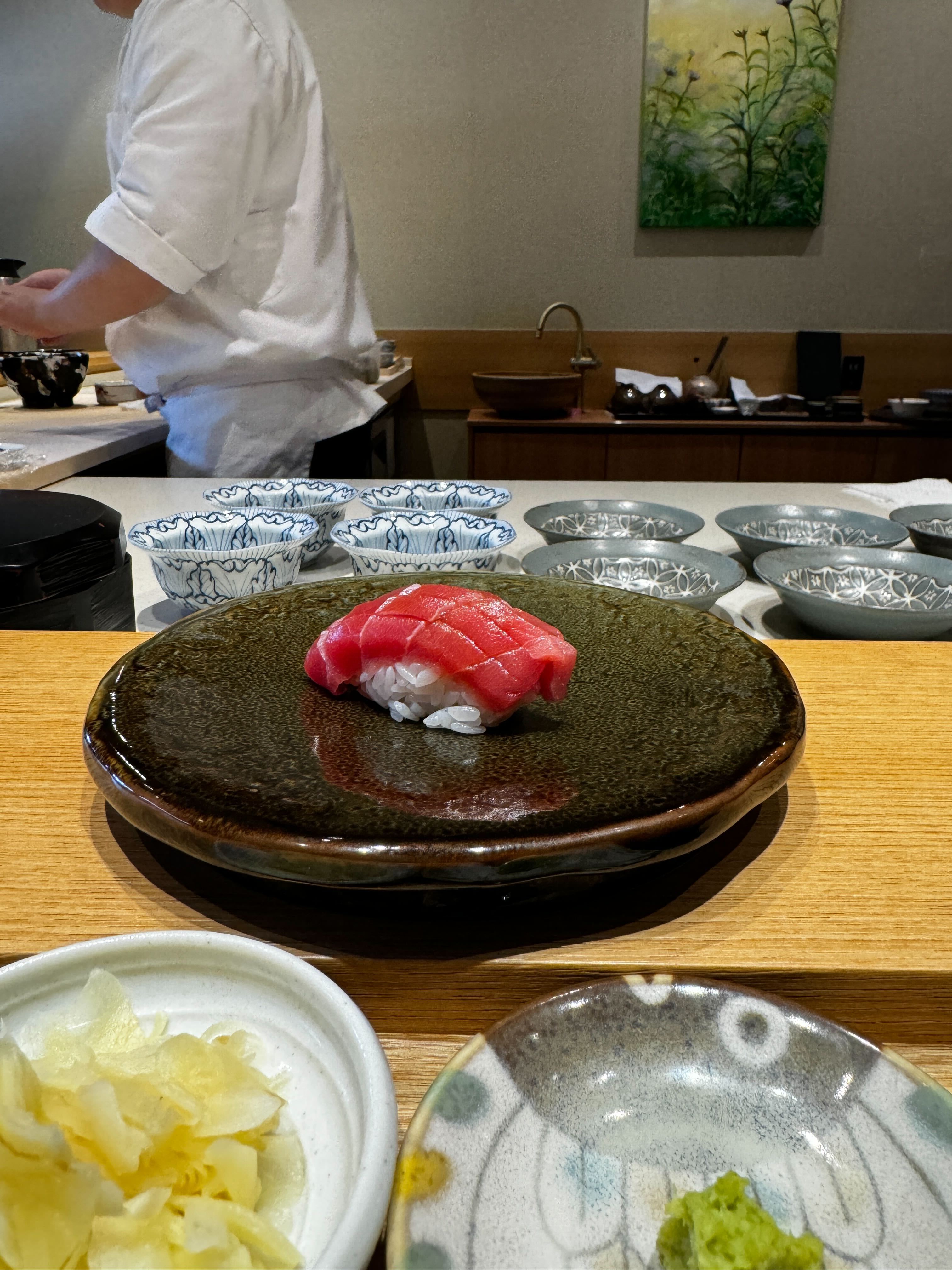 다음으로 참치 붉은살, 아카미가 나왔습니다. 기본 조미를 한 밥알 위로 큼지막한 스시가 올라가 숨어있던 미각이 생생히 살아나는 느낌이었답니다. 적당히 쫄깃하고, 적당히 부드러워 한점으로도 풍부한 맛을 즐길 수 있었어요.