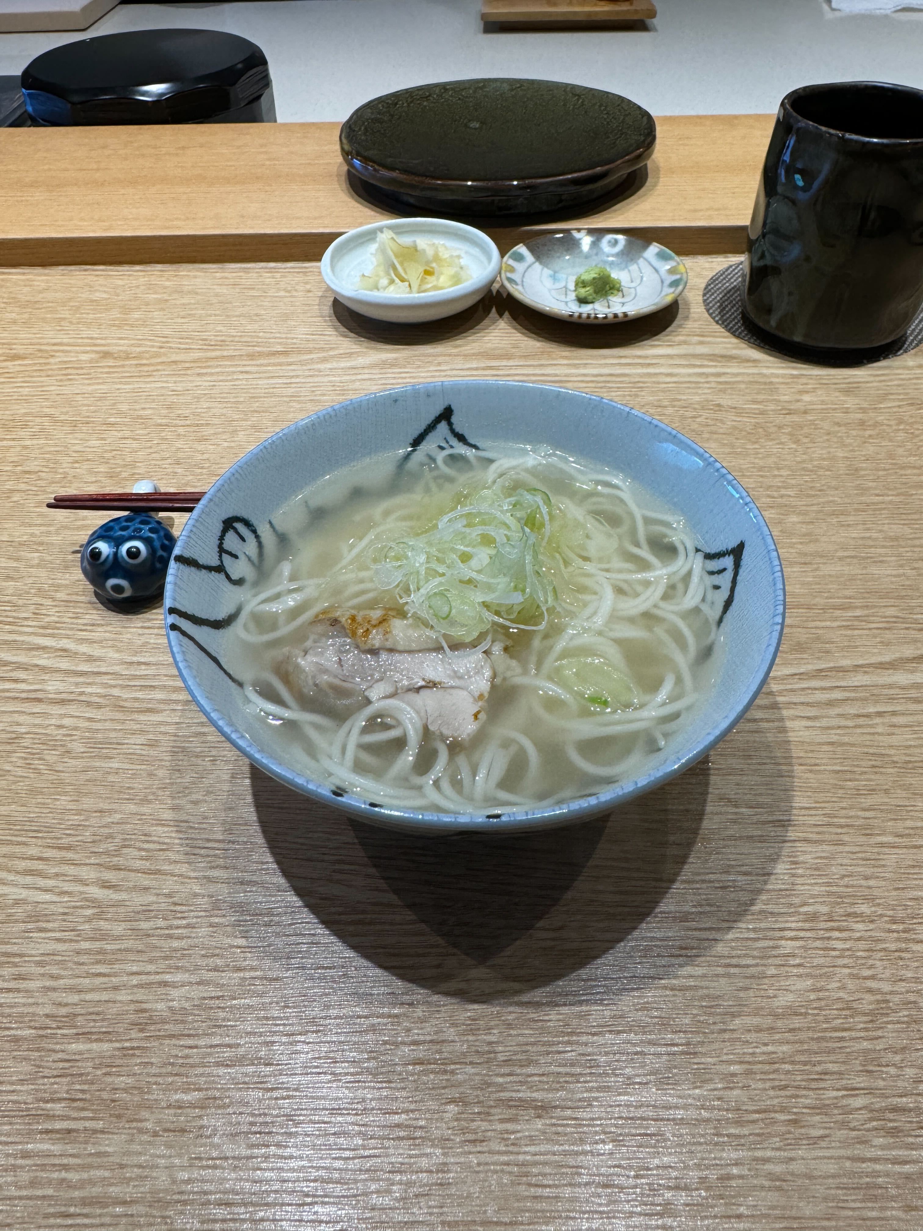스시서정은 스시류도 맛있지만 일식에 정통한 내공 덕분인지 깔끔한 닭국수도 참 맛있었답니다. 실파처럼 채를 낸 파가 적당히 익은 국수에 샤르르 말려 올라와 달큼했어요. 따끈한 국물을 한입 두입 떠먹으니 온몸이 녹는 듯한 느낌.