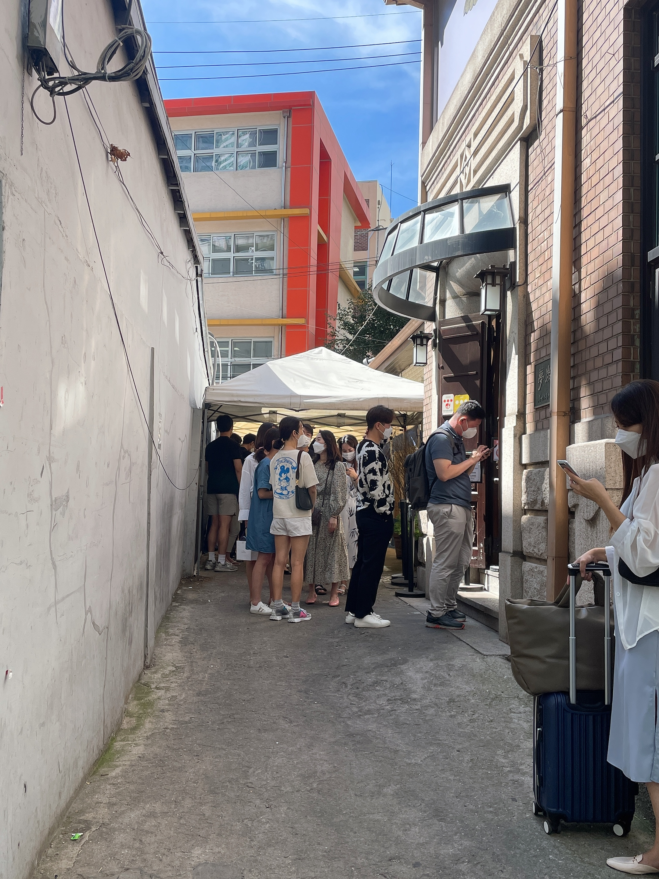 웨이팅 리스트 작성 시간이 임박하자 여기저기서 구름떼처럼 몰리는 대기자들! 용산구의 한적한 길가라고 하기엔 이 많은 인파가 어디서 온건가 궁금하더라구요. 평일 낮시간에, 한 끼 식사를 위해 이렇게 많은 시간과 정성을 들이는 사람이 이렇게나 많다니. 인스타그램이나 입소문 맛집과는 거리가 멀던 제게 신세계 같은 경험이었습니다.