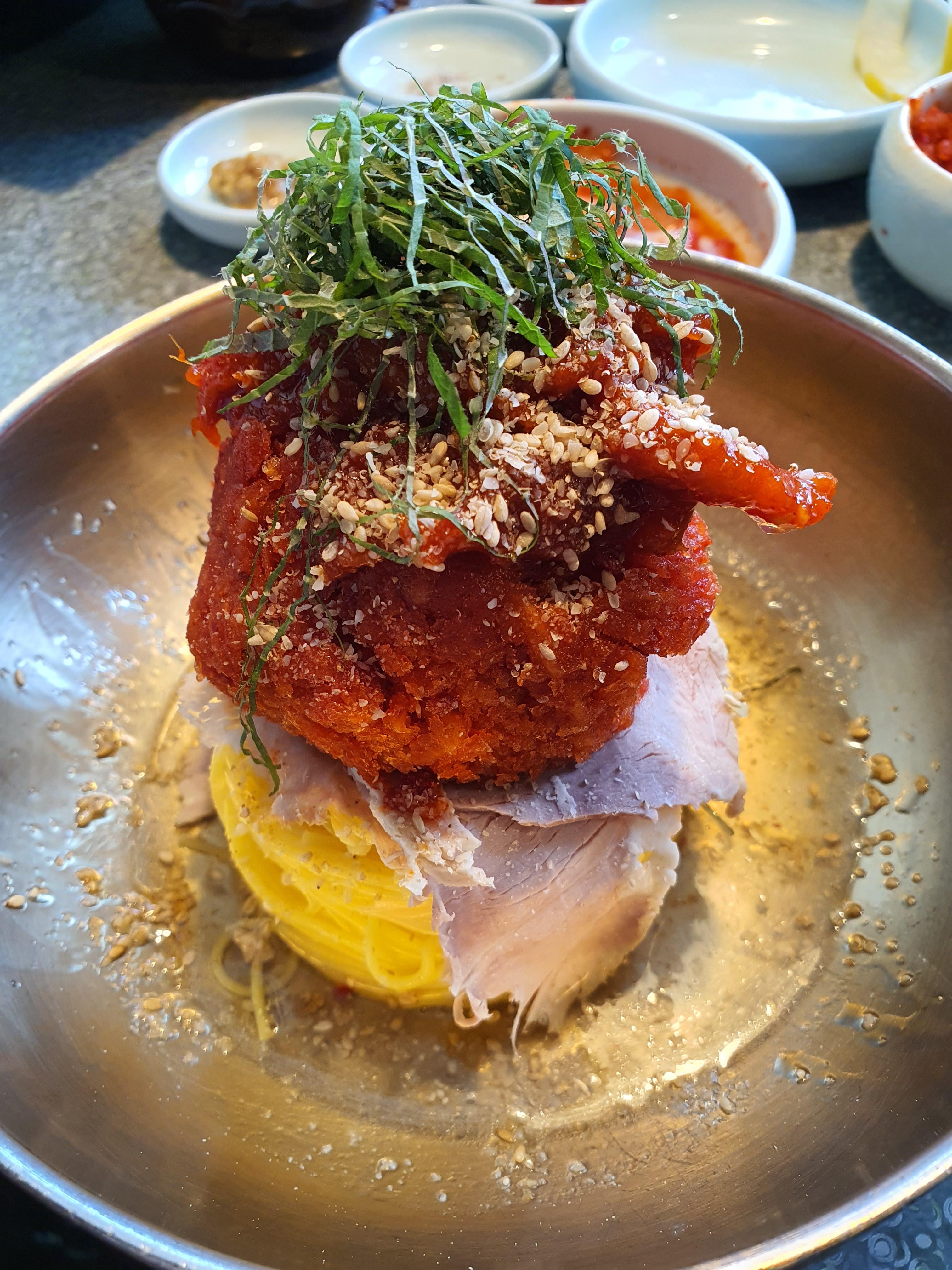 참고로 몽탄은 서브 메뉴도 다 맛있습니다. 어떤 메뉴도 '페어링'이 뒤쳐진다고 생각할 수 없을만큼 맛의 조화가 딱 맞아요. 하지만 단 하나만 추천하라면... 저는 몽탄냉면을 1순위로 꼽겠습니다. 슴슴한듯 간이 딱 맞는 냉면 육수의 맛이 탄탄한 중면과 정말 잘 어울려요. 다른 테이블은 어떤 걸 시켜드셨는지 모르겠네요. 저희 테이블은 다들 꾸준히 오래 먹는 대식가 팀이어서 이 메뉴, 저 메뉴 빠짐없이 모두 맛봤습니다. 점장님께 저희만큼 먹은 테이블이 혹시 있었는지 물어봤는데 슬몃 웃으시면서 조금 더 노력해보시라고 했던 말이 기억나네요.