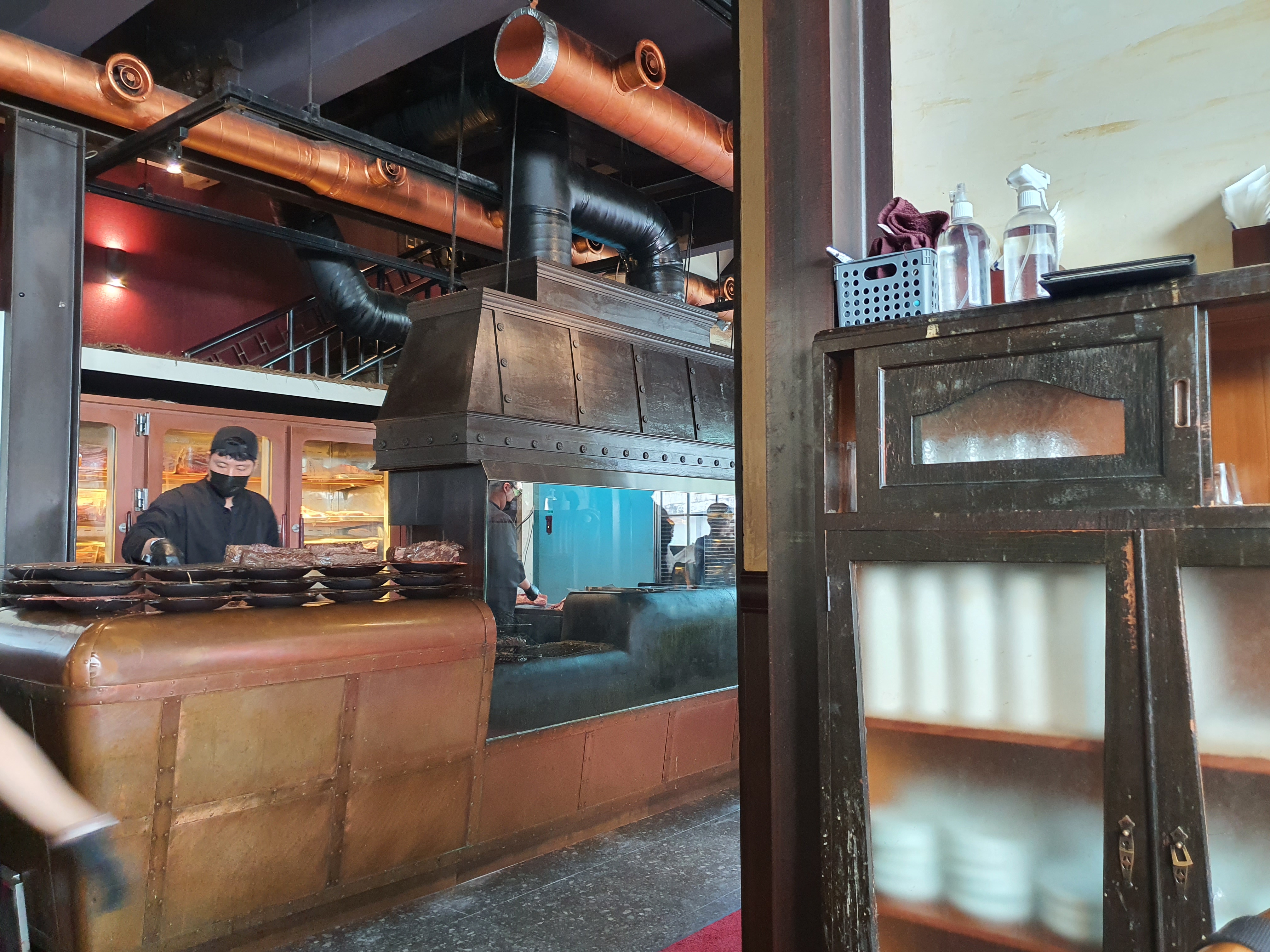 1차 초벌을 마친 우대갈비가 테이블로 전달되면 전문가의 솜씨로 고기가 빠르게 익어갑니다.