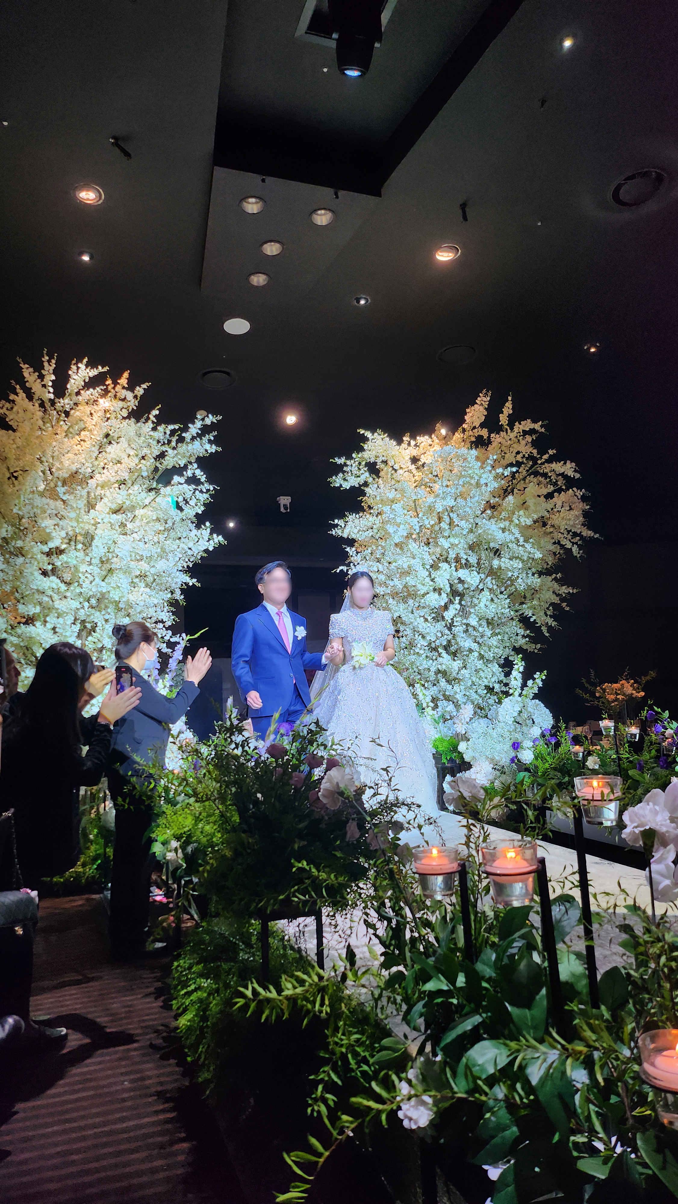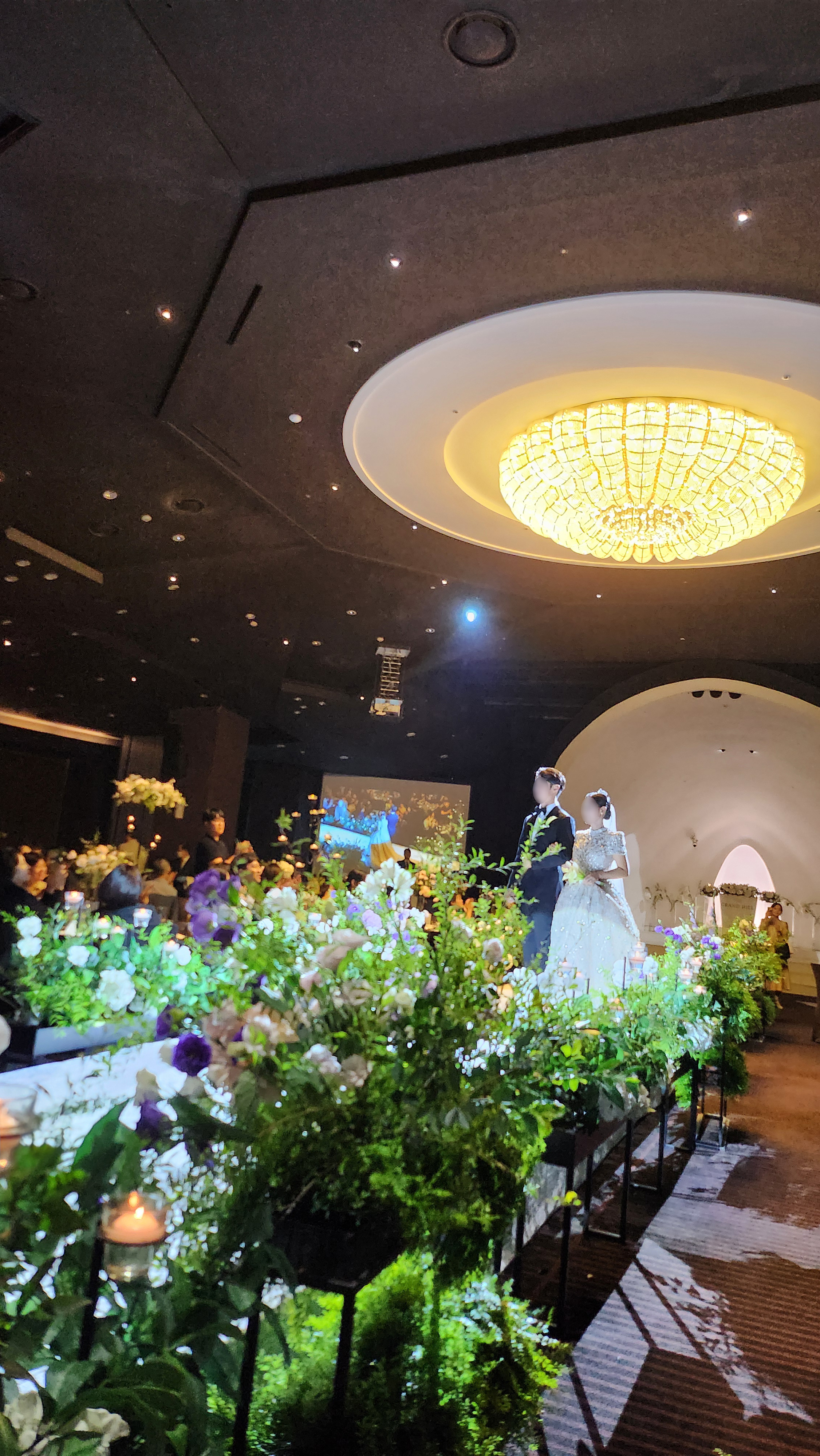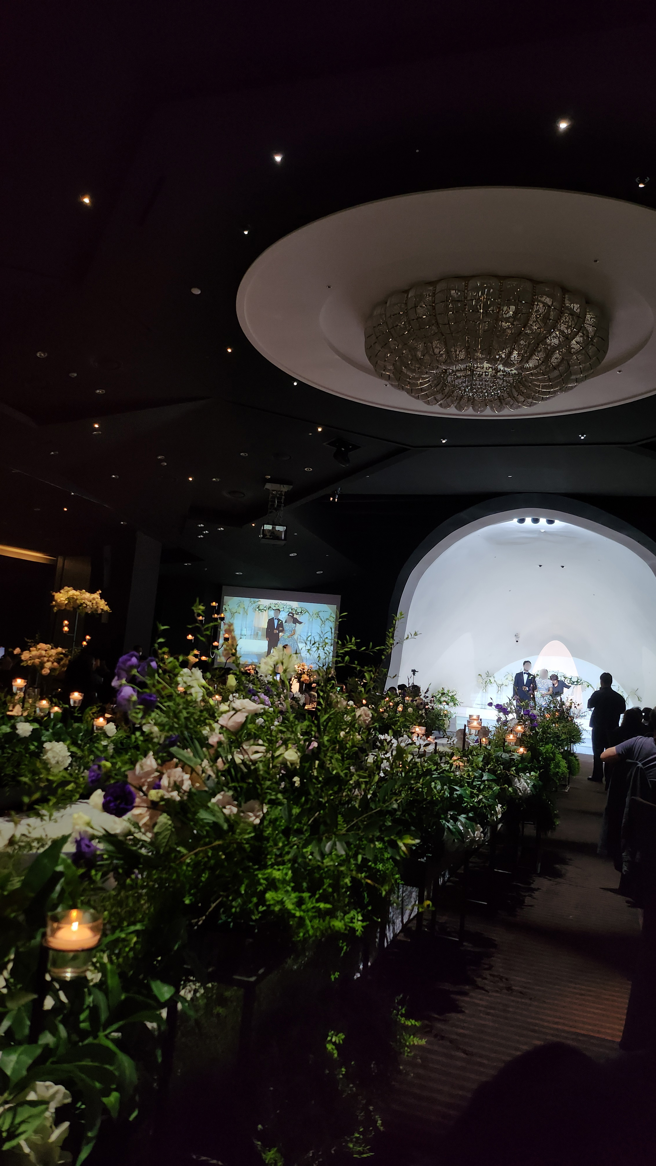 이 날, 메인 이벤트는 신랑과 신부가 몰래 준비한 이벤트였다고 생각하는데요. <황혼의 문턱 - 왁스>의 노래가 울려퍼지며 어떤 선택이건 항상 믿어주고 지지해주신 양가 부모님에게 고마움을 전하는 영상 편지, 그러니까 부모님 전상서 코너가 숨겨져 있었어요. 부모님 뿐만 아니라 하객으로 앉아있던 동료 한 명도 훌쩍훌쩍 울었다며ㅋㅋ 후기를 전해줘서 빵 터지기도 했었네요. 그나저나, 신부는 몇 번 뿌엥 모먼트가 찾아왔었는데 하객석의 저희가 '안돼! 울면 안돼! 화장 지워져!!!'라는 마음을 모아 텔레파시를 보내 그녀의 울음을 멈추게 하는데 일조했다고 생각합니다. 나중에 들어보니, 너무 생글생글 웃기만 해 친정 어머니가 조금 서운해 하시기도 했대요.