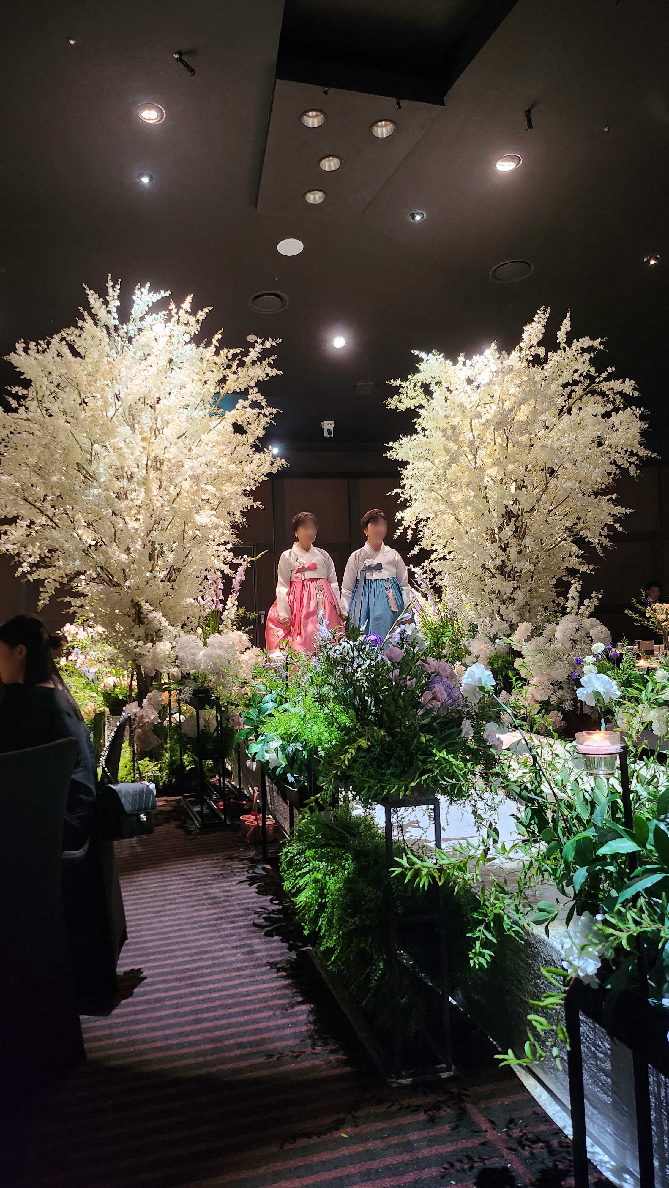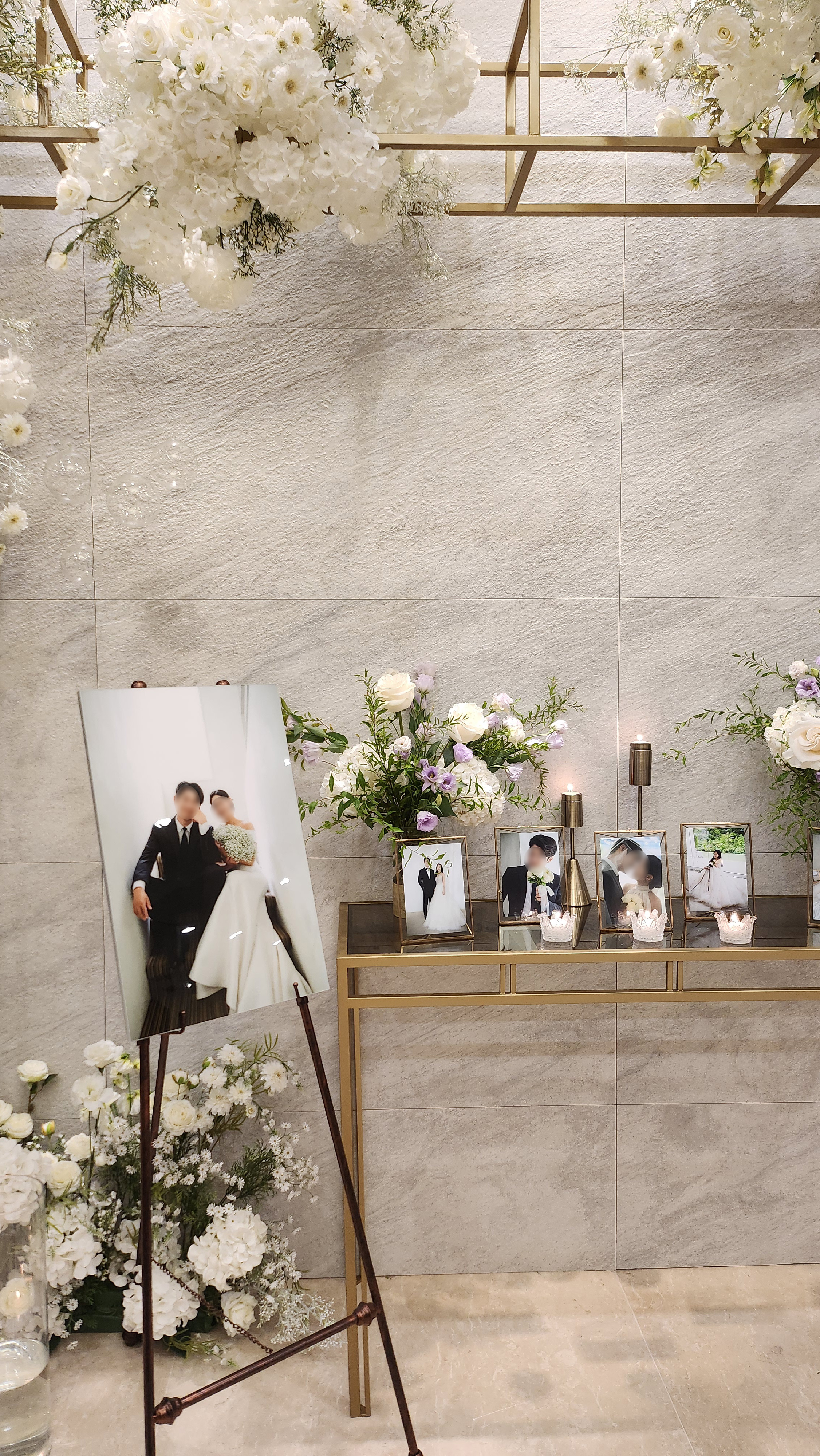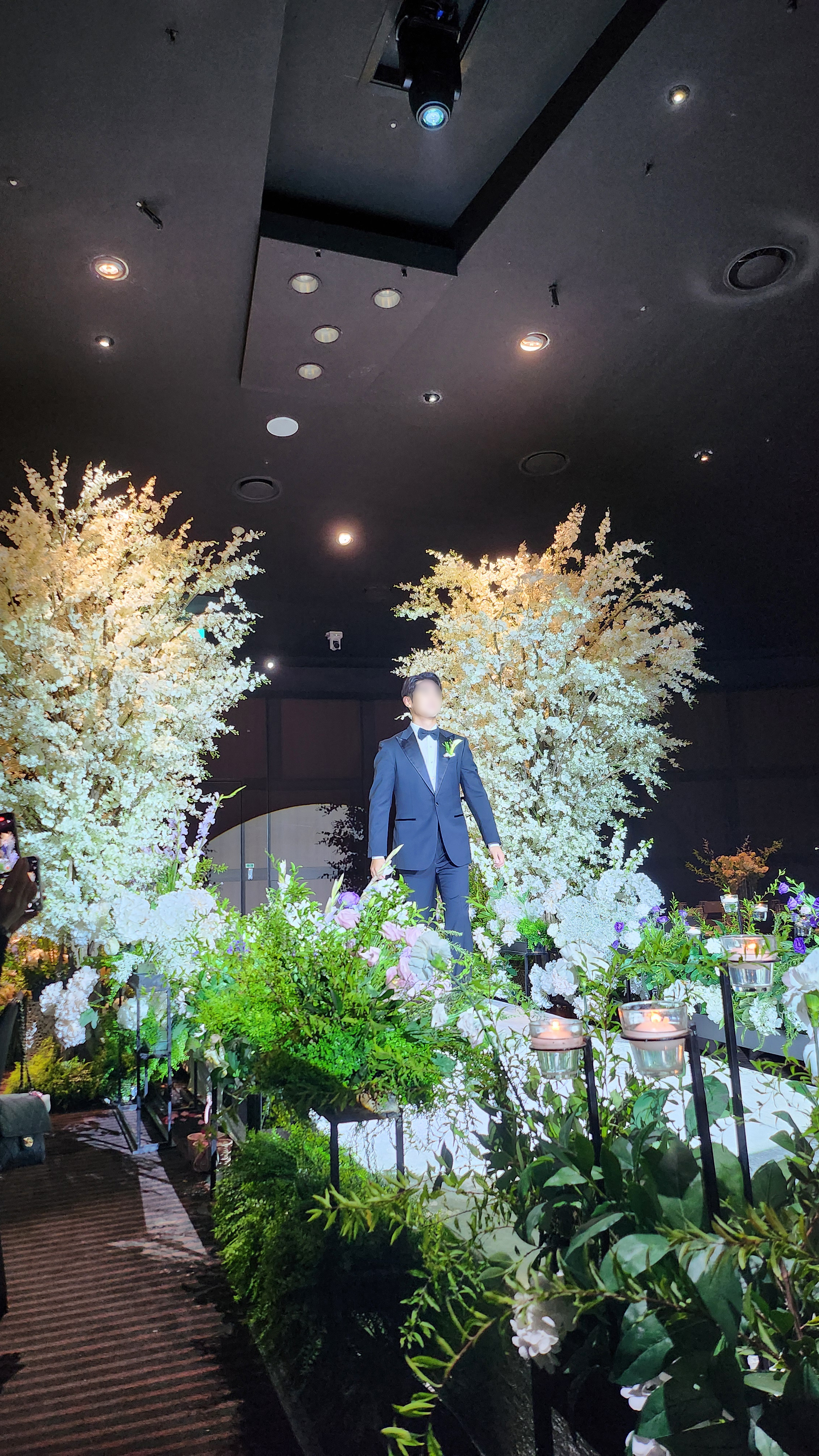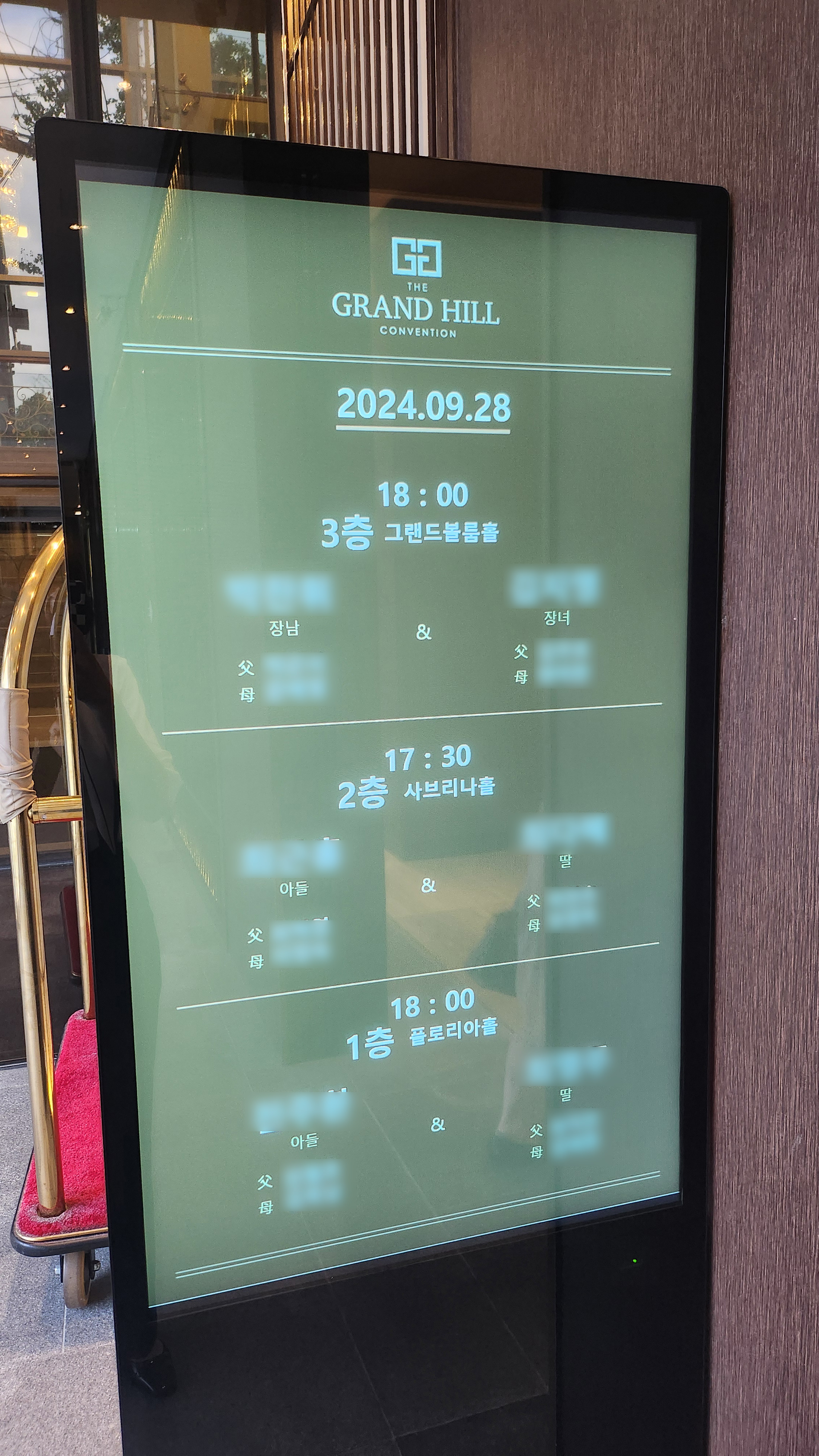 구두를 신고는 절대 오르기 싫었던 강남운전면허시험장 앞 얕은 언덕을 셔틀버스 덕에 빠르게 올라와서는 바로 맞이하는 키오스크. 3층 그랜드볼룸홀이 다른 층 대비 가장 크고 넓고 버진로드가 길대요(라고 셔틀버스에서 주워 들음). 1층의 소란스러움과 번잡함을 뚫고 3층으로 가는 엘리베이터를 타고 편하게 올라갑니다.