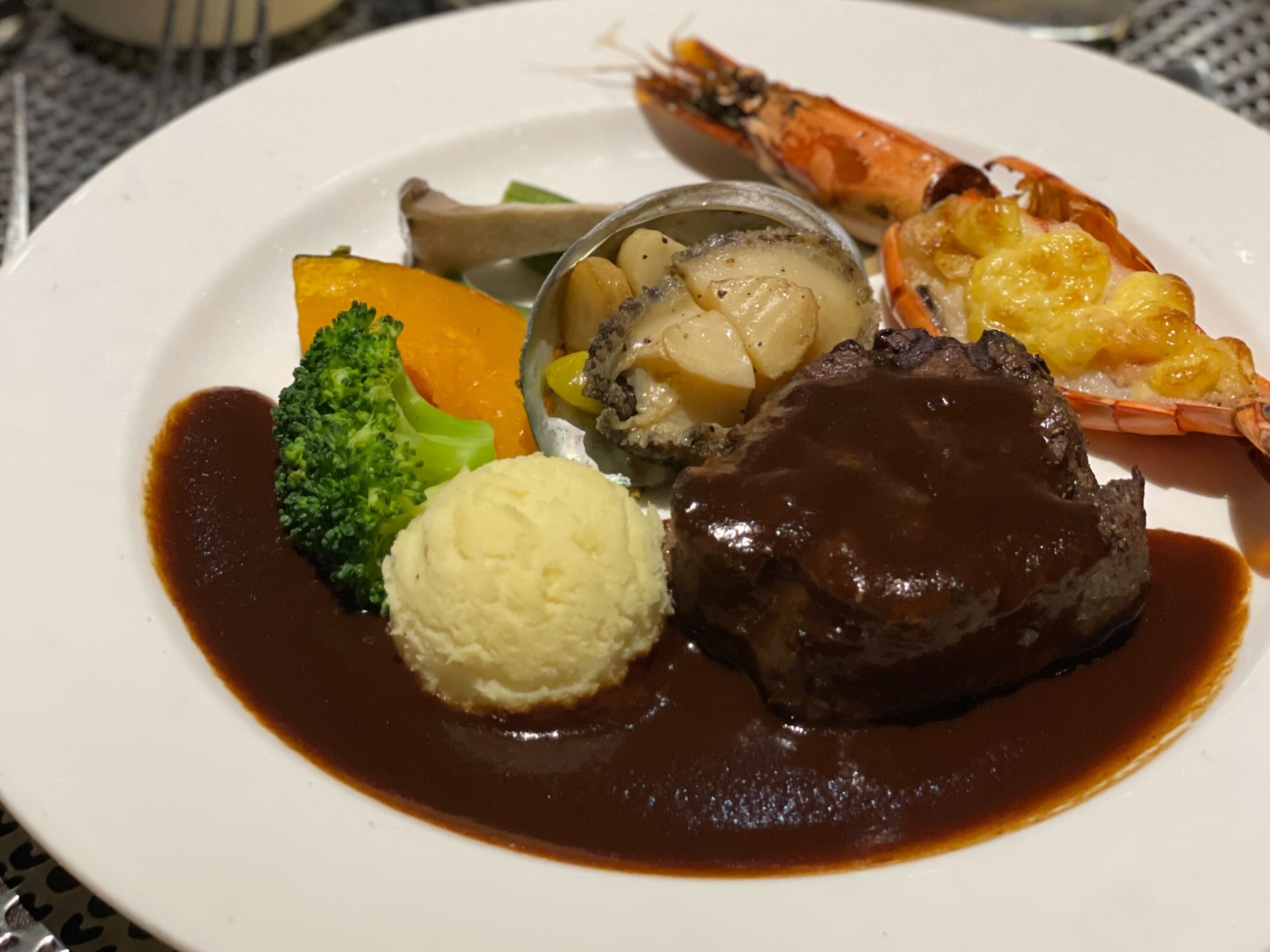 메인 메뉴가 나올 즈음, 친지들의 촬영이 끝나 친구들과 직장 동료를 소환하는 알림에 스테이크를 남겨두고 단상으로 올라봅니다. 저는 키가 작아서 매번 앞줄로 소환되거든요. 네, 그 날도 저는 맨 앞줄이었네요... 얼굴과 얼굴 사이에 요리조리 단을 맞춰 사진을 찍고, 부케도 던지고, 아아- 스테이크야 식지 말아라아- 를 마음 속으로 외치며 입맞춤 샷도 무한정 찍은 후에 메인을 즐기러 호다닥 내려왔습니다. 안심 스테이크도, 바다 새우 구이도 맛있었지만 저는 옆 사람에게 양보했던 전복이 정말 맛있었다는 후문. 그리고 사진으로는 못 남겼지만 전복 내장을 듬뿍 넣은 전복죽도 나왔었다구요!