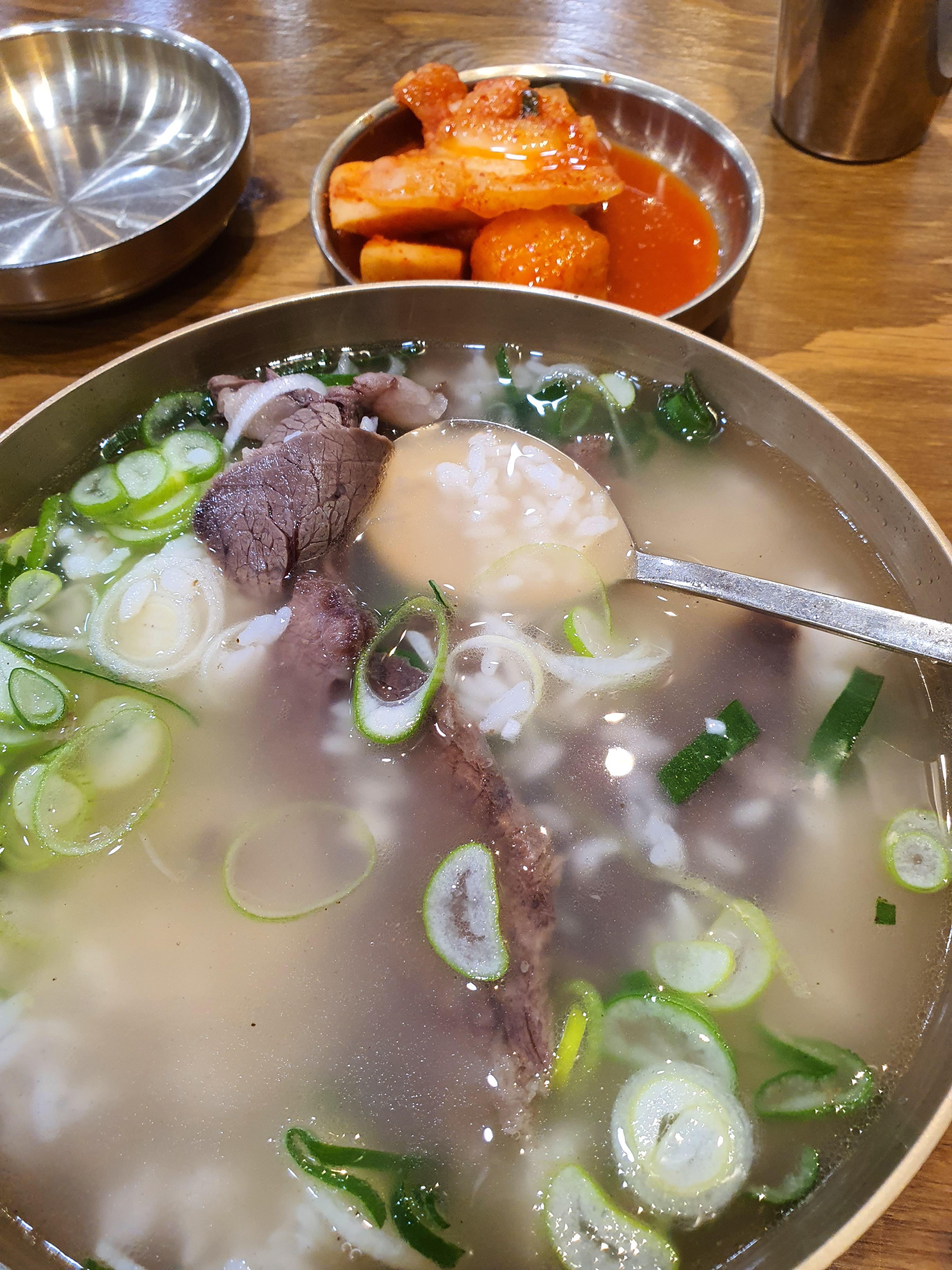 여의도백화점 지하 1층에 위치한 서울깍두기는 맑은 설렁탕을 선보이는 곳입니다. 진짜 여기를 소개하기 위해 핸드폰 사진첩을 뒤지고 또 뒤졌는데 워낙 허겁지겁 먹었던 탓인지 찍어둔 사진이 달랑 1장 밖에 나오지 않아서 좌절했네요. 하지만 정말로, IFC에서 뛰쳐나와 뚜벅뚜벅 걸어 몇 번이나 찾아갔던 곳 맞습니다. 본격 '패스트푸드'보다 빠른 'K-패스트푸드' 설렁탕이 궁금한 분들은 꼭 한 번 경험해보시길. 당면 조금에 별 것 아닌 고기가 들어간 것이 뭐가 그렇게 맛있겠냐, 하던 분들도 전부 뚝배기 바닥 긁는 소리를 냈던 곳입니다.