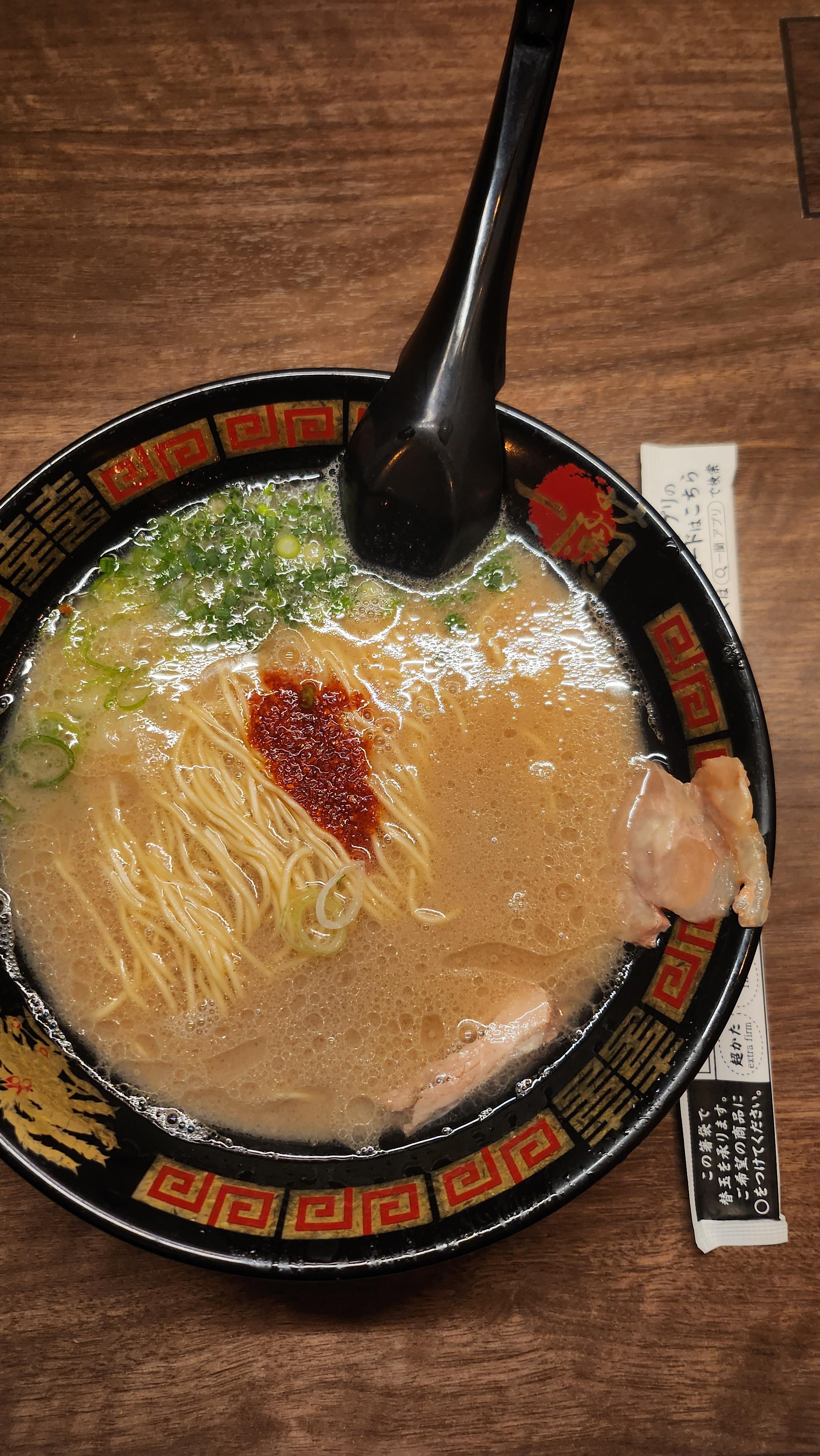 주문은 자리 안내 전 키오스크를 통해 미리 해두었으니 앉아서 가만히 기다리면 2분 남짓한 시간이 지나 라멘이 스스슥 하고 나옵니다. 저는 아직까지 1차로 실패한 나카스카와바타 키린의 아쉬움이 있어 이번엔 예전과 조금 다르게 주문해보았습니다. 진한맛+기름기 매우 진함+마늘 1쪽 버전으로요. 크리스마스 이브고 뭐고 유난히 바람이 매서웠던데다가 초행에 이리저리 헤맨지라 언 몸을 샤르르 녹일 수 있는 뜨끈한 국물을 먼저 한입 먹어봅니다. 오? 과한 도전이었나 싶었는데 생각보다 너무 맛있는데요? 기다린 건 35분 가량, 음식 서빙까지 2분, 다 먹는데 5분 걸렸습니다. 국물 한 스푼 남기지 않고 다 먹을만큼 지이이인짜 맛있습니다. '어디에나 있는 이치란 라멘이니 꼭 후쿠오카에서 먹을 필요는 없다'고들 하지만, 그래도 후쿠오카에 갔다면 꼭 한 번 먹어볼만한 맛입니다.