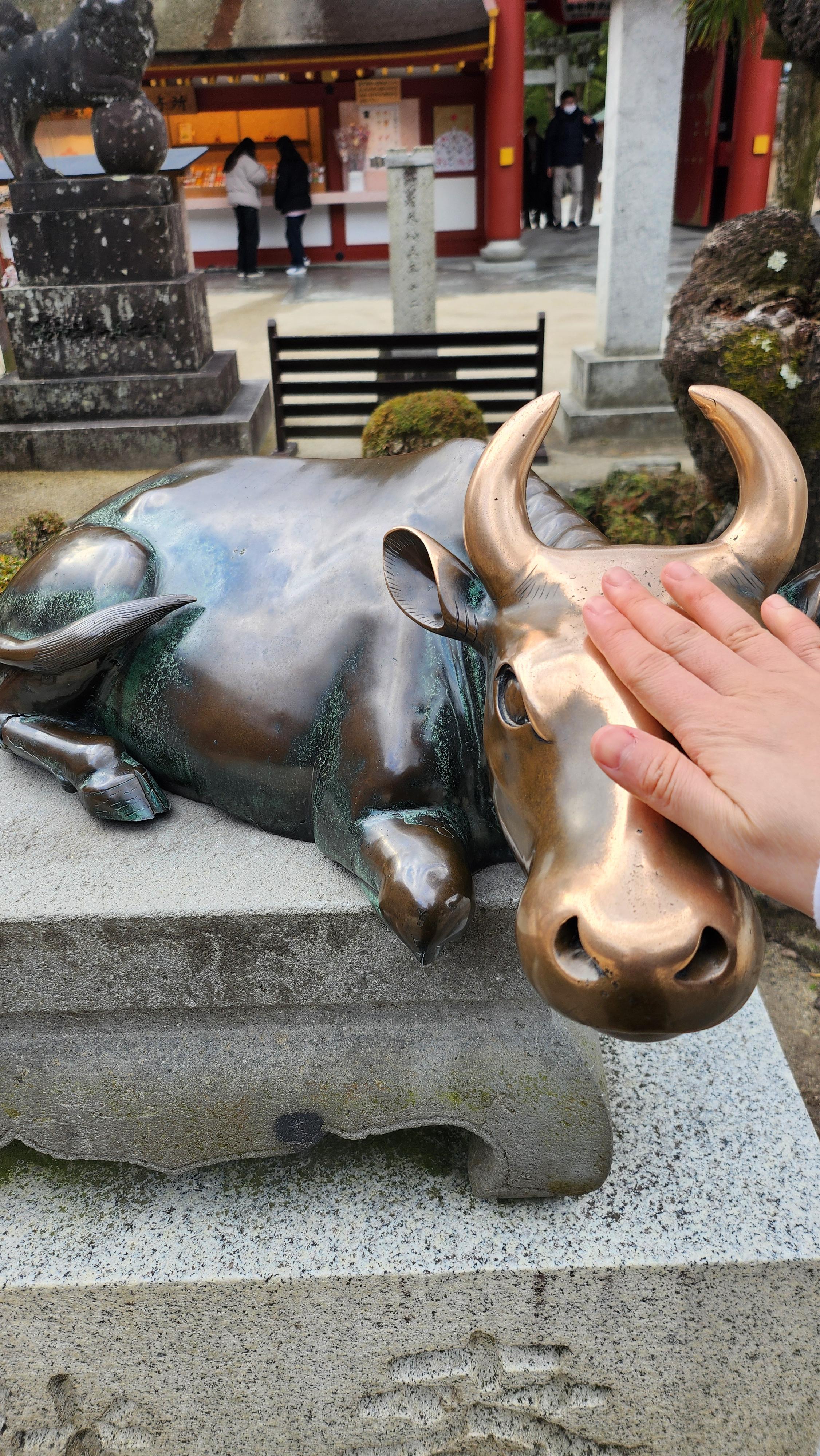 여행 마지막 날, 후쿠오카를 떠나며 근교 가이드 투어를 시작합니다. 누운 소가 여럿 보이는 이 곳은 다자이후 천만궁입니다. 현재 천만궁은 리모델링 공사 중인데요. 앞편에 마련해둔 간이 신사도 썩 멋있었습니다. 도심을 떠나 일본 정원의 정수도 구경하고, 많게는 천년, 적게는 몇 백년의 역사를 품고 자라난 커다란 나무도 감상하며 조용한 동네를 많이도 걸었답니다.