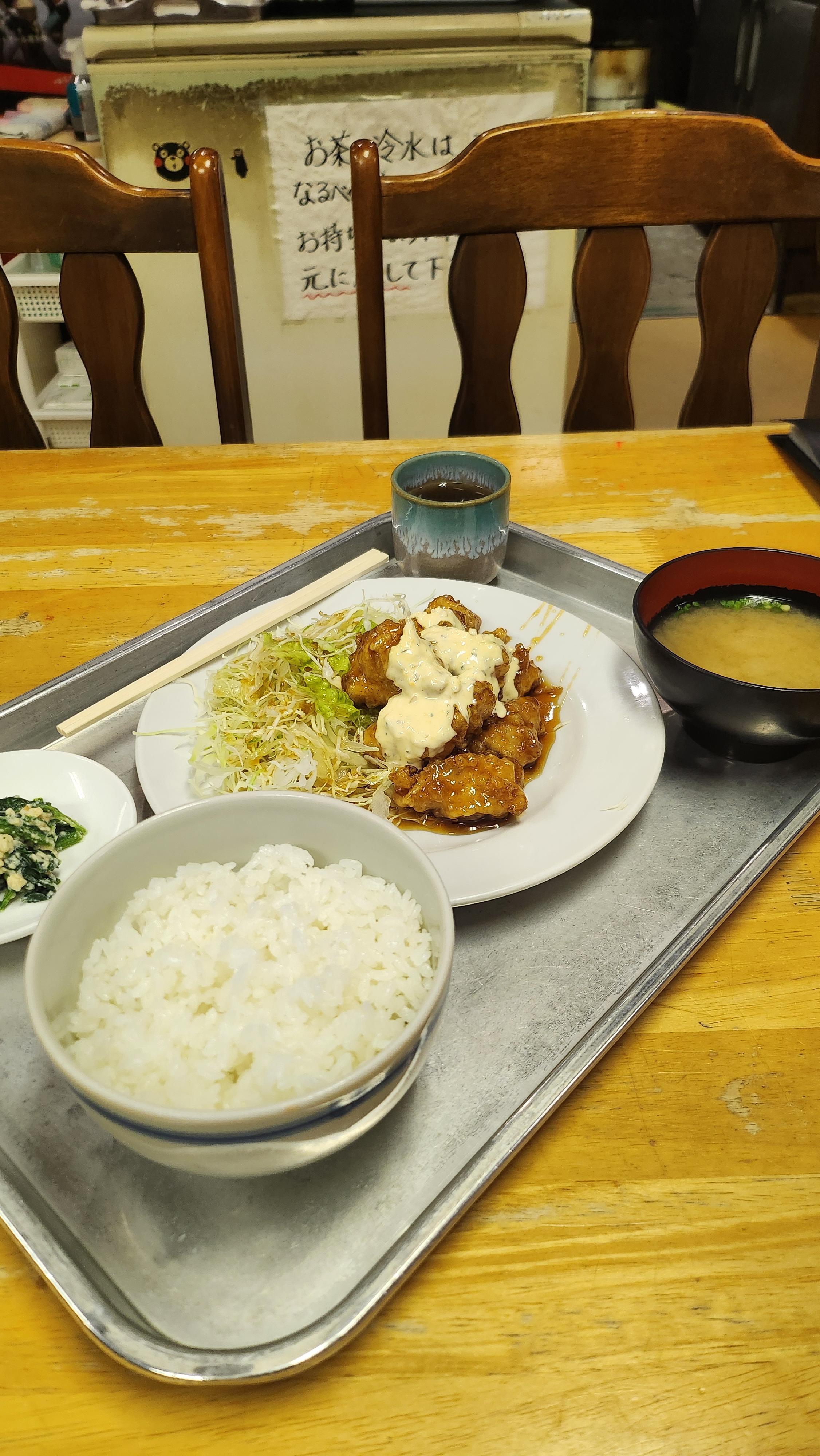 달큰하고 촉촉한 치킨남바 정식을 깔끔하게 다 먹음 인증샷. 비가 추적추적 내리는 크리스마스 당일이라 그런지 가게 내부에는 일본인 가족과 친구로 보이는 일행, 그리고 외국인은 저 밖에 없었는데요. 꼭꼭 씹어 밥을 다 먹고 아직 온기가 남은 차까지 다 마시는 동안 테이블 서랍을 열어봤더니 이 곳을 거쳐간 여행자들의 메모가 수북히 쌓여있더라구요. 낯선 땅에서 가끔 한국어로 적힌 메모를 발견하니 반가운 마음도 들고, 고된 여정으로 지친 여행객들이 서로 온정을 나누는 모습을 의도치 않게 발견해 힘도 조금 나는 순간이었답니다.
