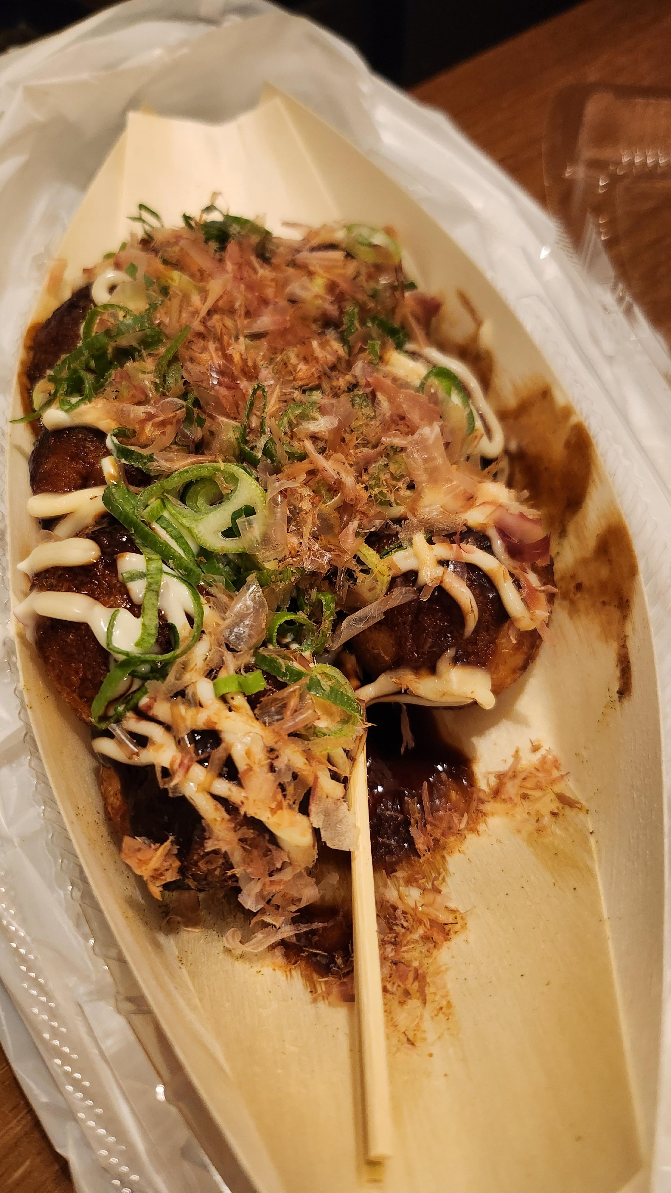 둔둔해진 배를 두들기며 돈키호테에 가서 부탁받은 여러 품목을 구입한 후(진심 결제 끝내고 나오는데까지 4시간 걸림, 나랑 안맞아) 자정이 지나 현란해진 유흥가를 지나며 조금 출출해 야식으로 타코야키를 사먹었습니다. 하카타 킨타코(中洲名物 博多金蛸) 라는 곳인데, 호텔로 돌아오는 길이 조금 으슥했지만 알사탕처럼 타코야키 하나씩 질겅질겅 씹으면서 돌아오는 맛이 좋았습니다. 치안 좋다는 일본인데, 뭔 일이야 있겠냐하는 담대함으로 뚜벅뚜벅 걸어 1일차 일정을 마무리합니다.
