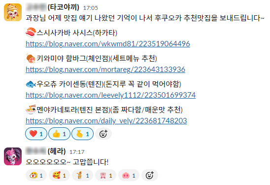 역시나 설거지가 필요없을만큼 싹 다 먹음 인증샷을 남기고 다시 거리로 나가봅니다. 아, 그리고 이쯤에서 동선이 맞지 않아 아쉽게도 가보지 못했던(하지만 동료의 강추를 받을만큼 모두에게 알리고 싶은) 후쿠오카 맛집을 소개해드리겠습니다.