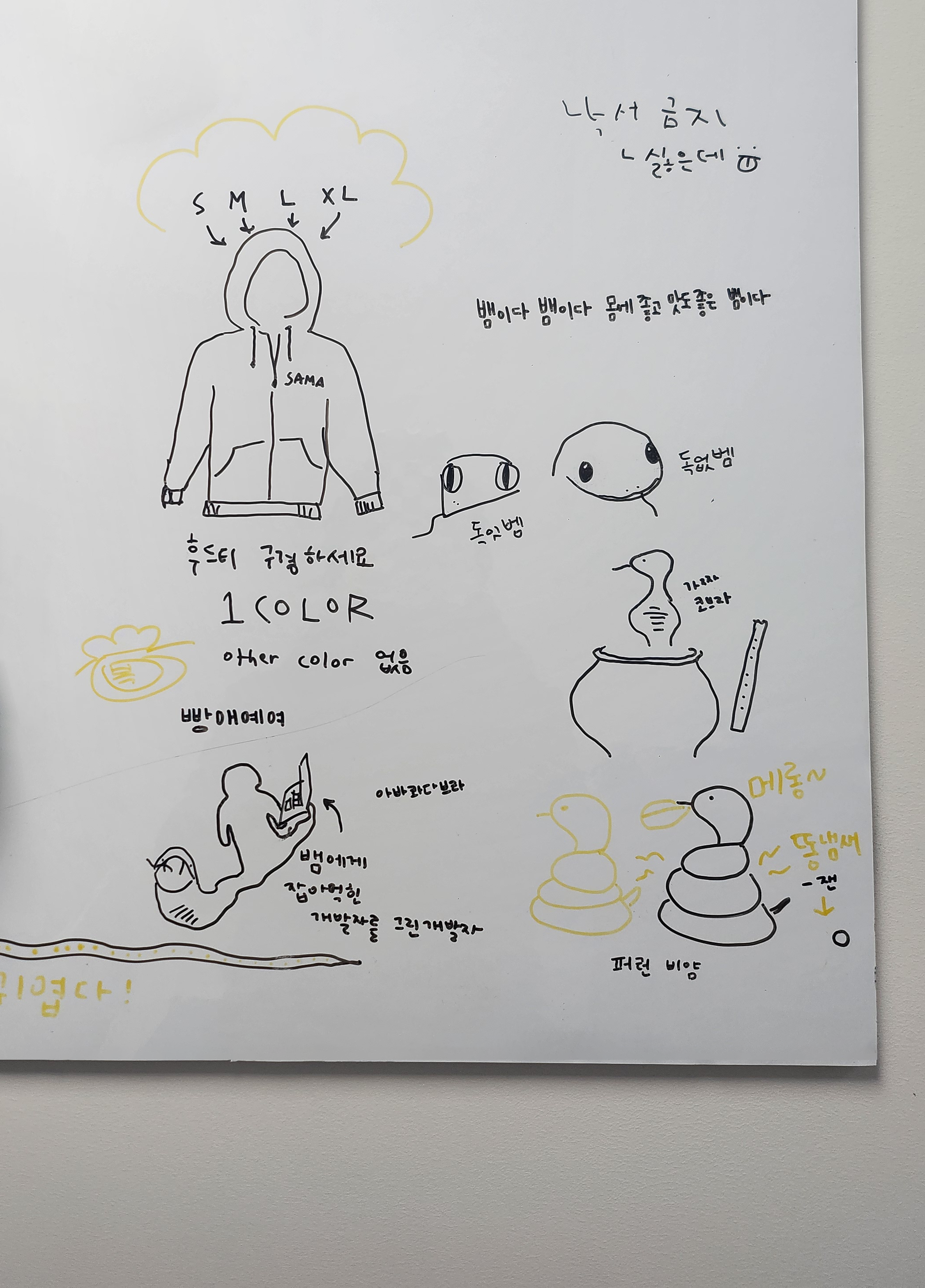 네, 그렇습니다. 아무리 회사에서 쓰는 비용이지만 그마저도 요긴하게 쓰고 싶은 게 삼아인들의 공통된 마음이었나 봅니다. 이번만큼은 바쁜데 일 더 주신다고 궁시렁 거리지 않고 단체복 하나 정도는 갖고 있는 게 좋지 않을까 싶어 디자인팀도 마음을 굳혔습니다.